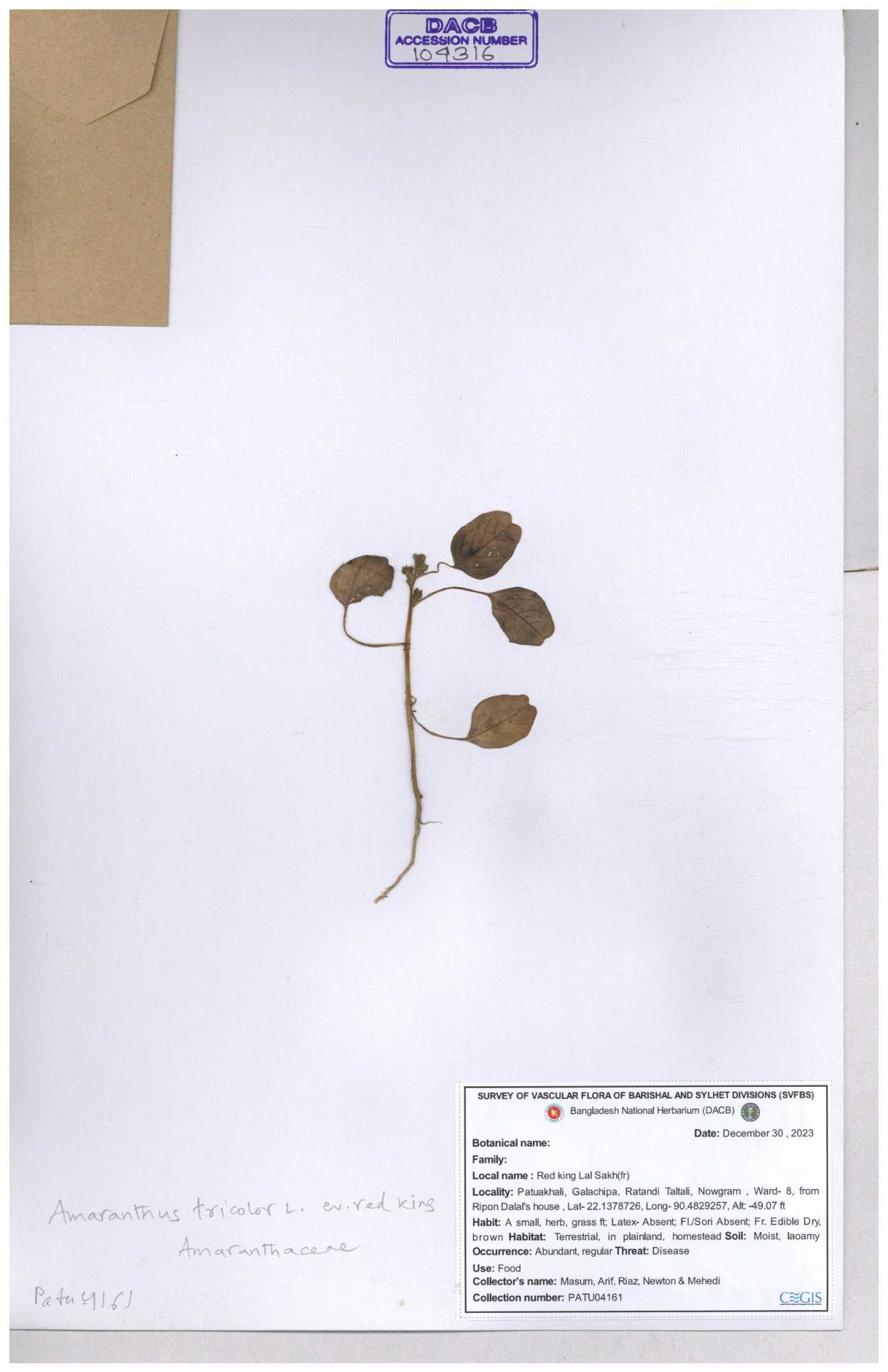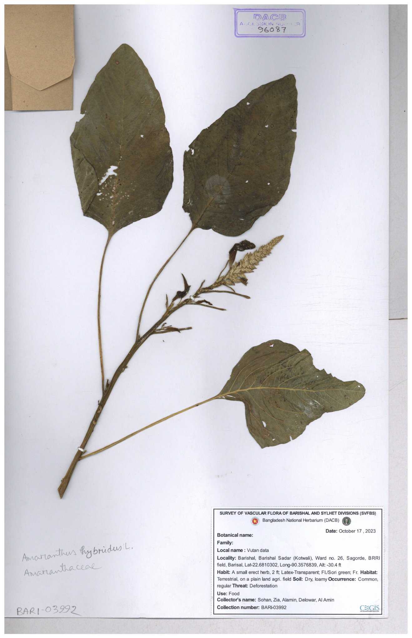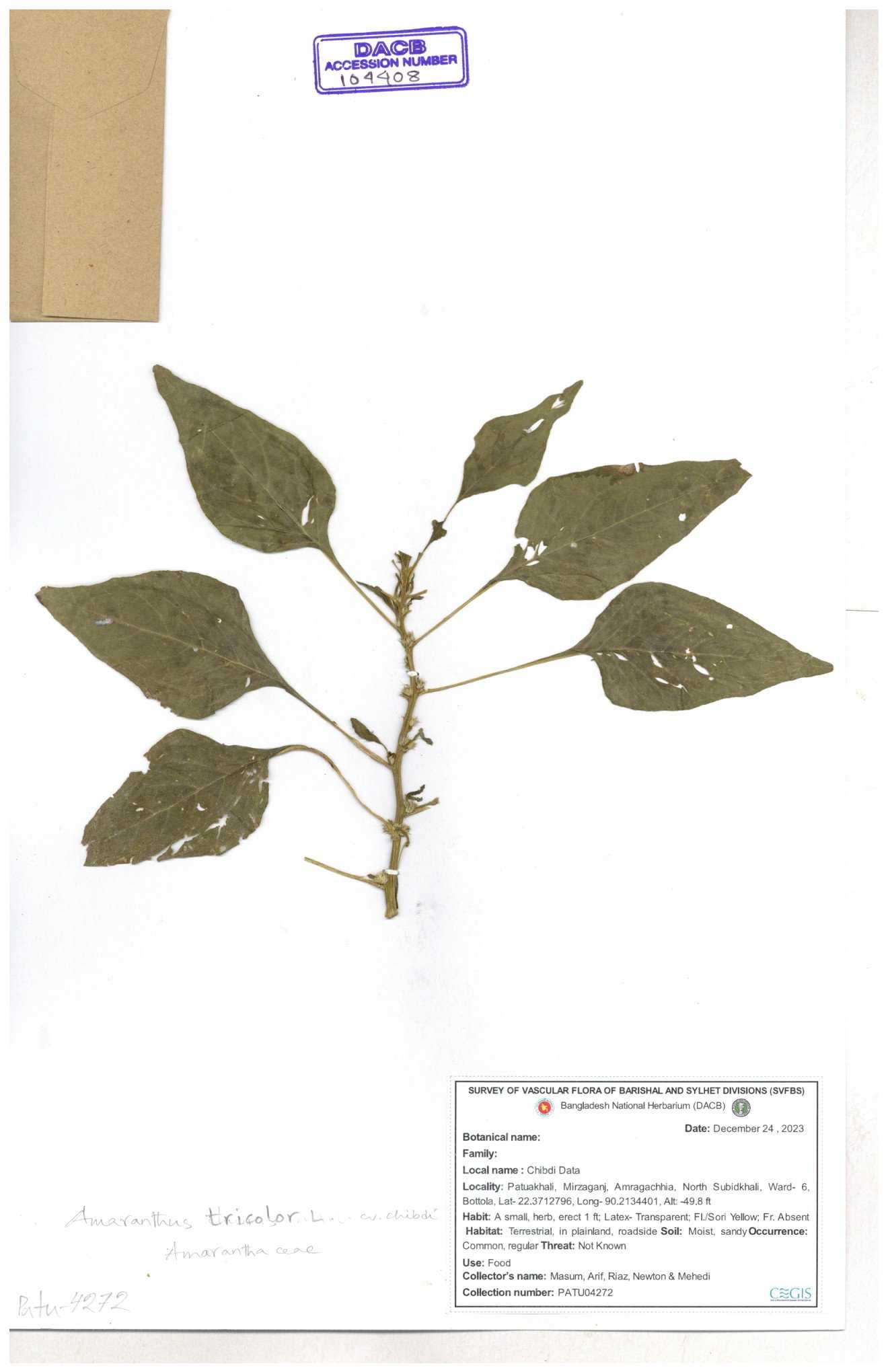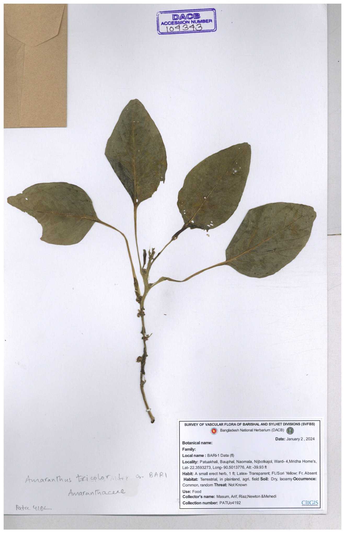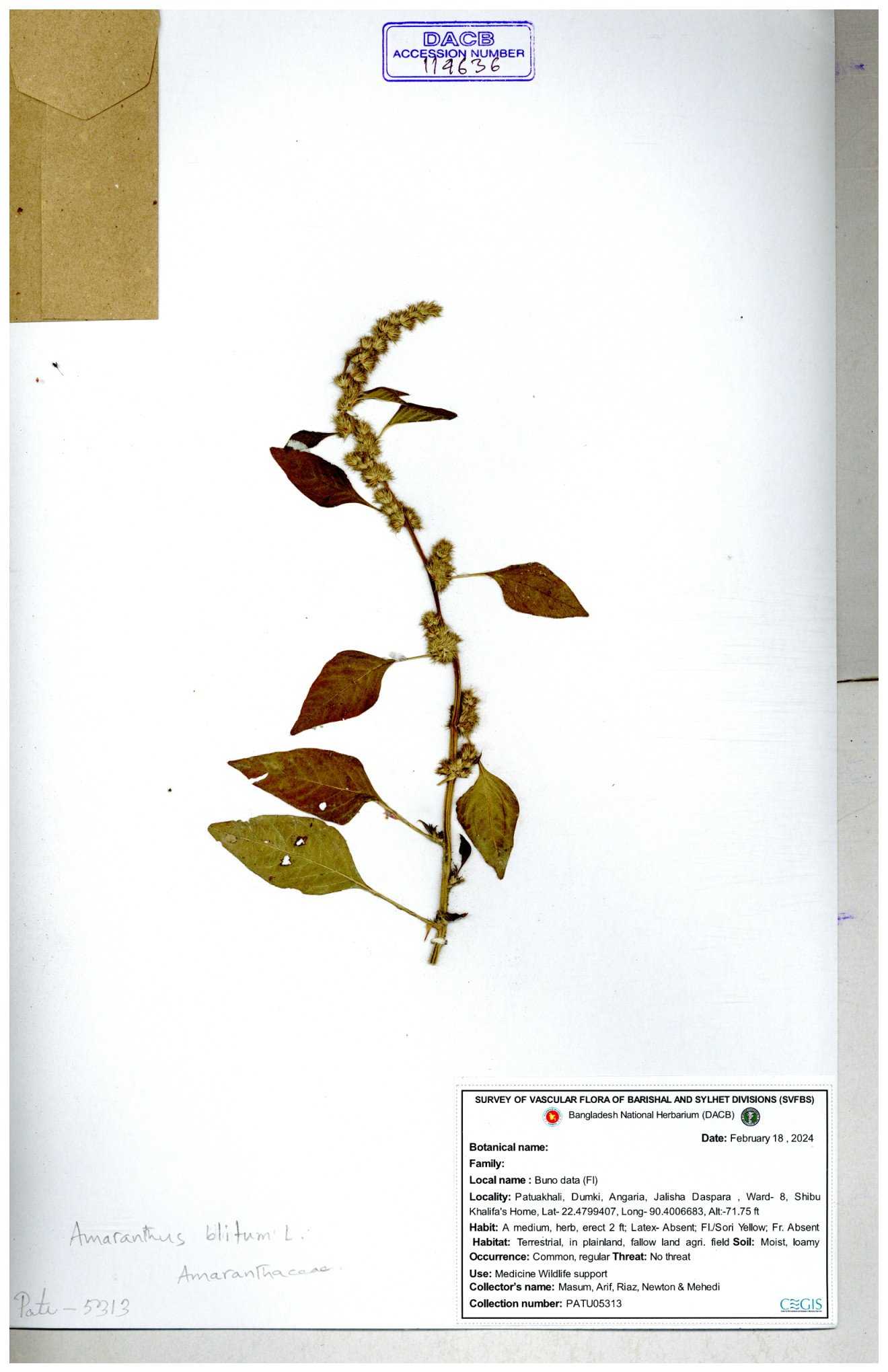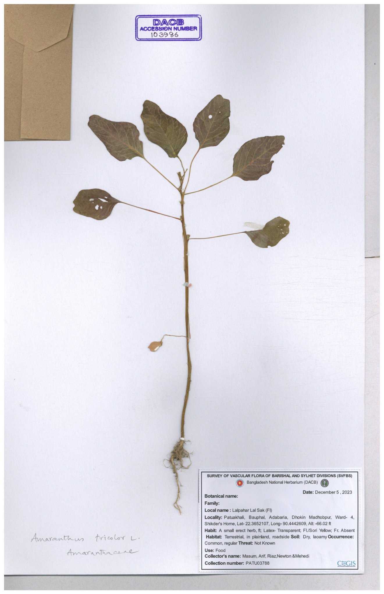 | 65981 | Amaranthaceae | Amaranthus viridis L. | Khandakar Kamrul Islam | KKI-4064 12-03-2020 |
