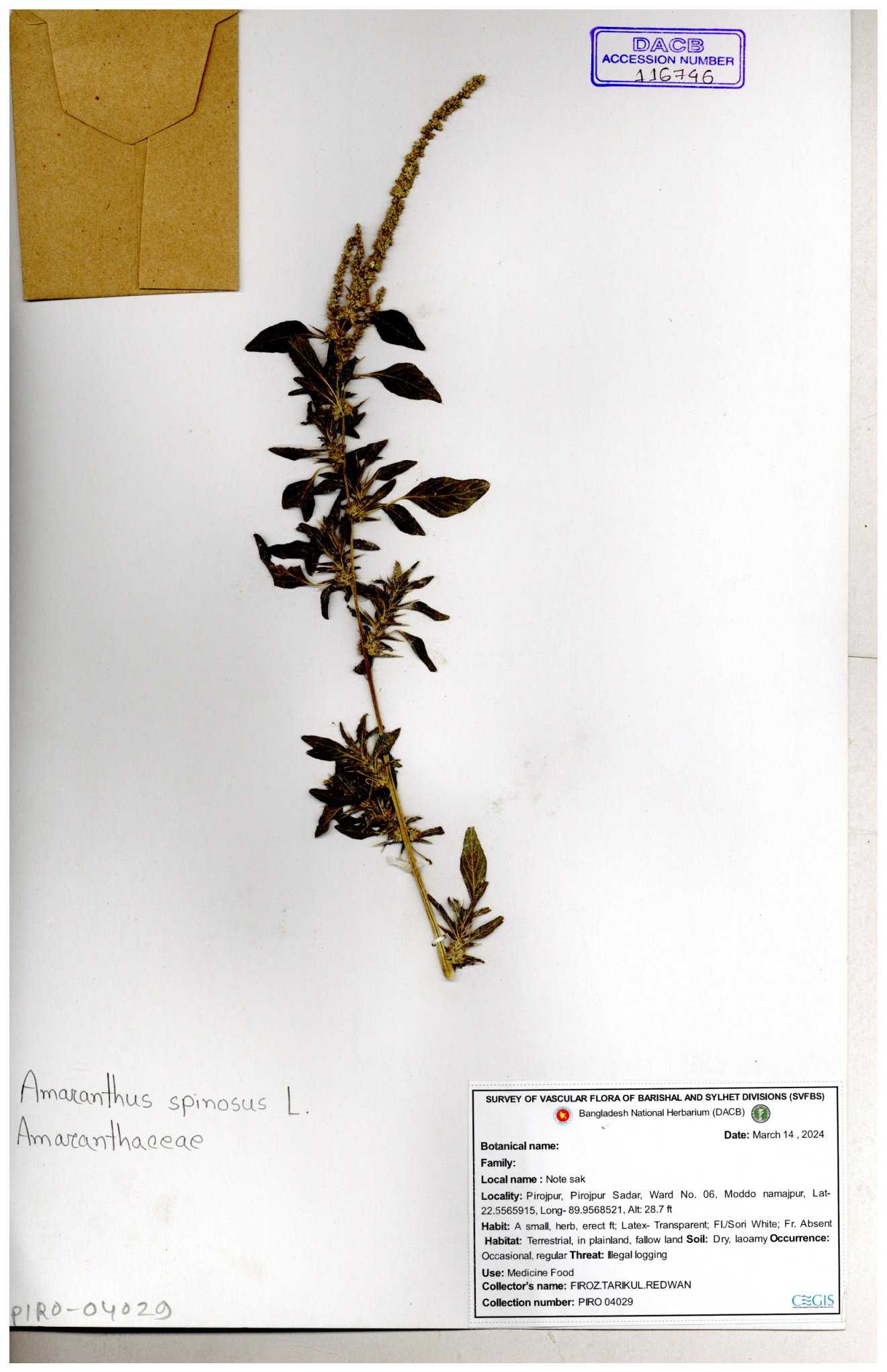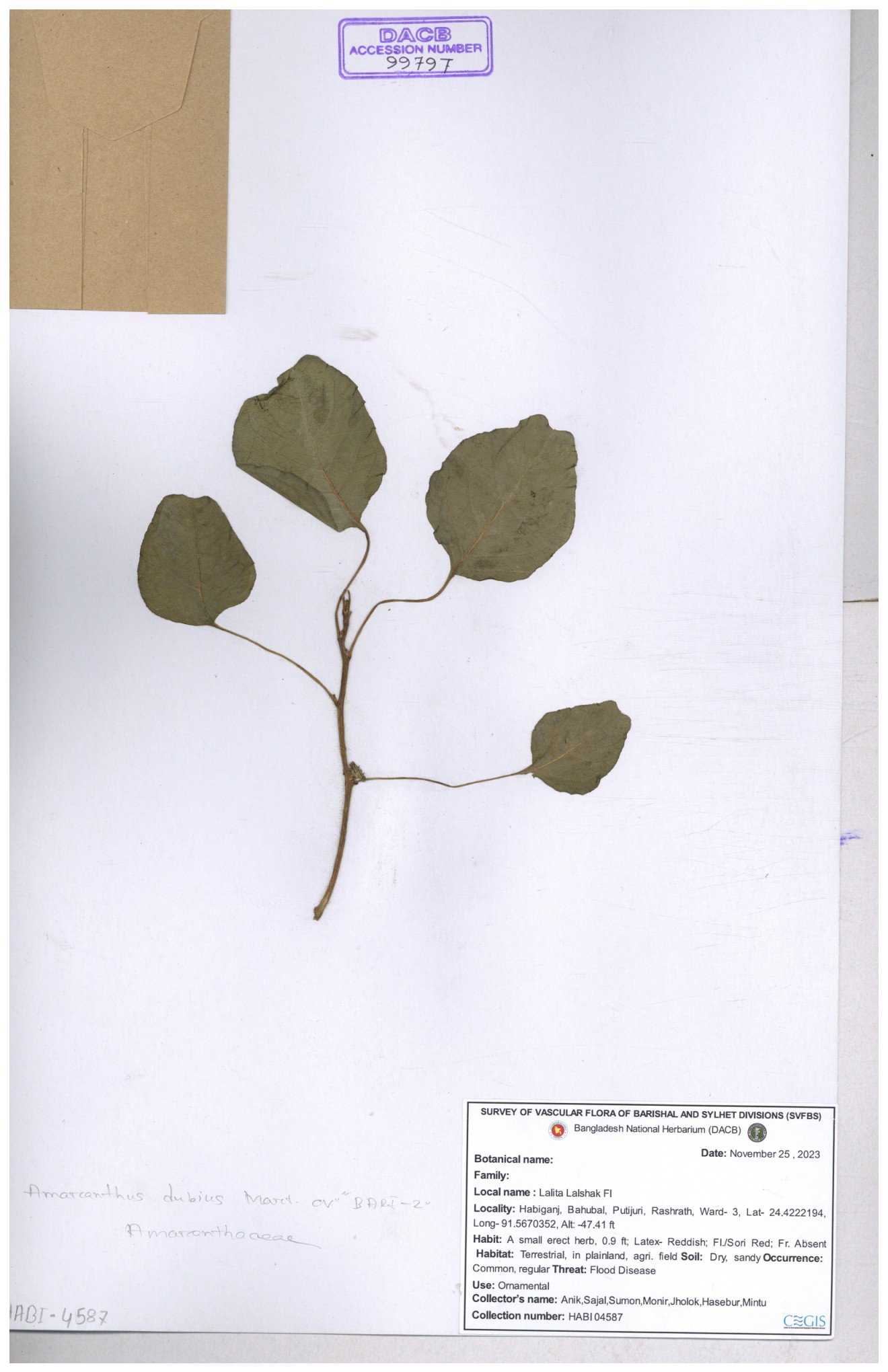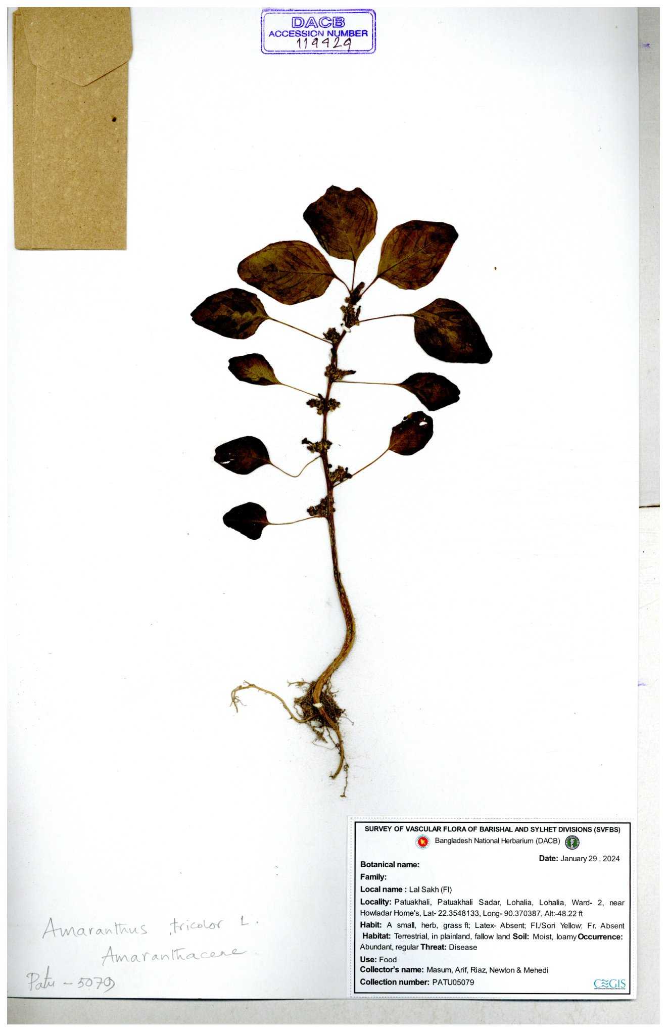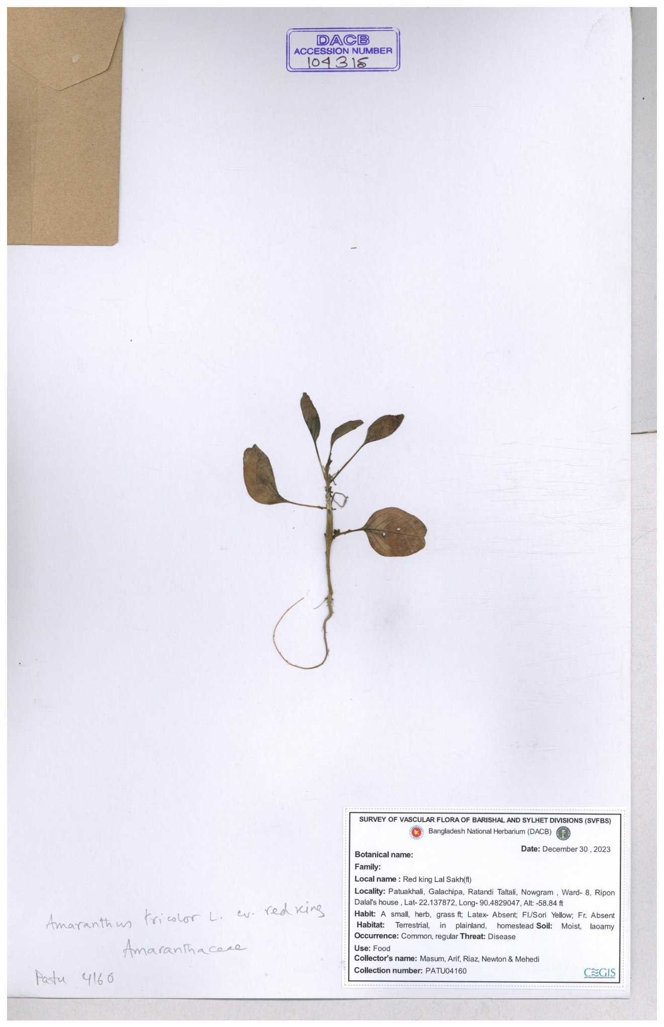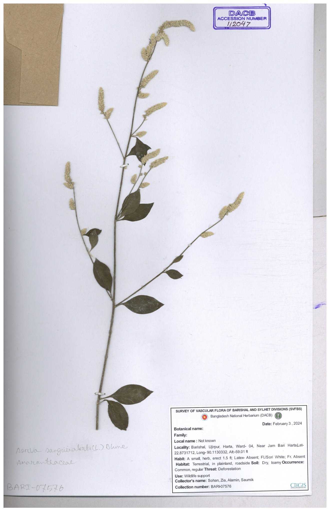 | 65981 | Amaranthaceae | Amaranthus viridis L. | Khandakar Kamrul Islam | KKI-4064 12-03-2020 |
