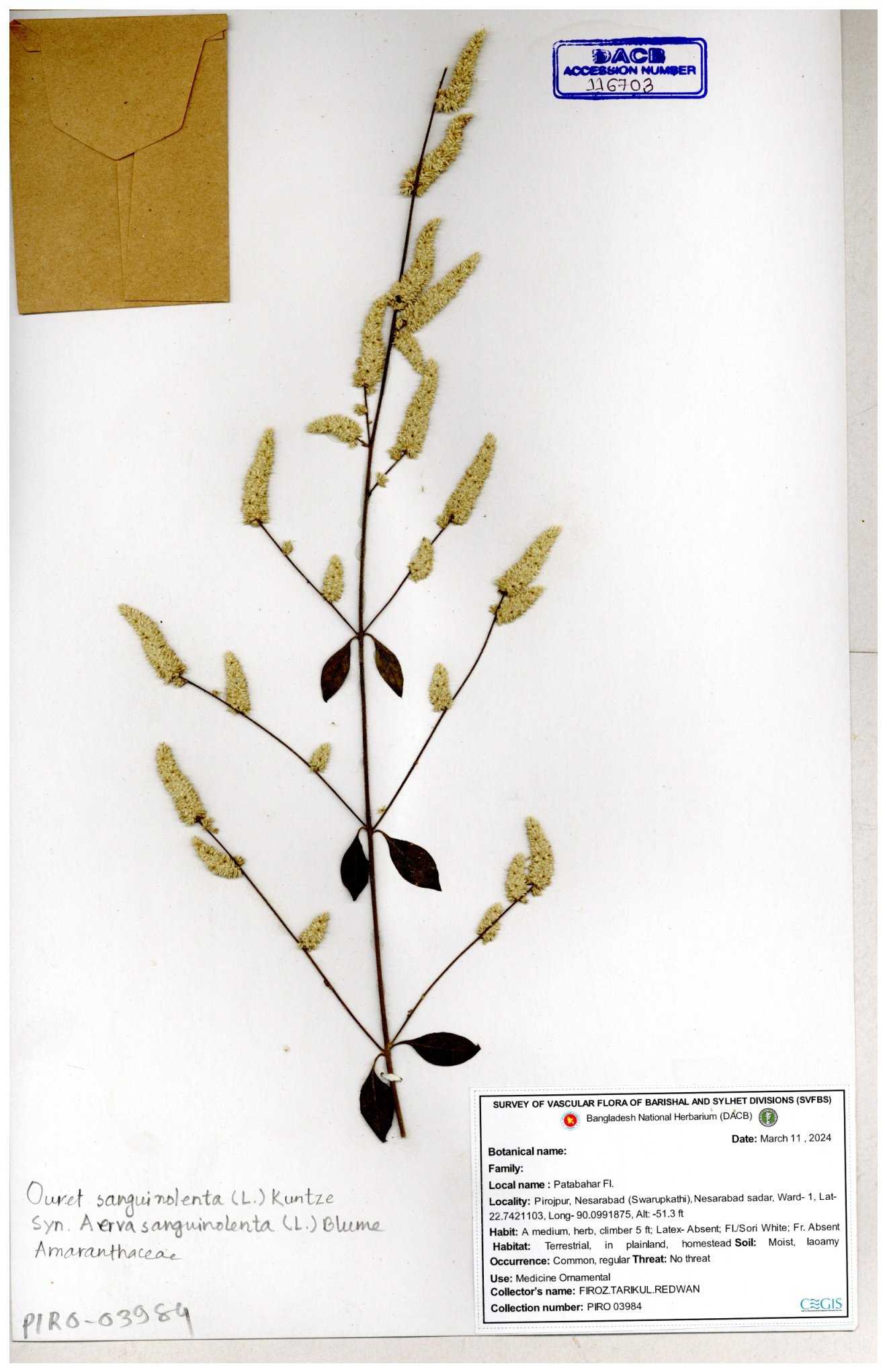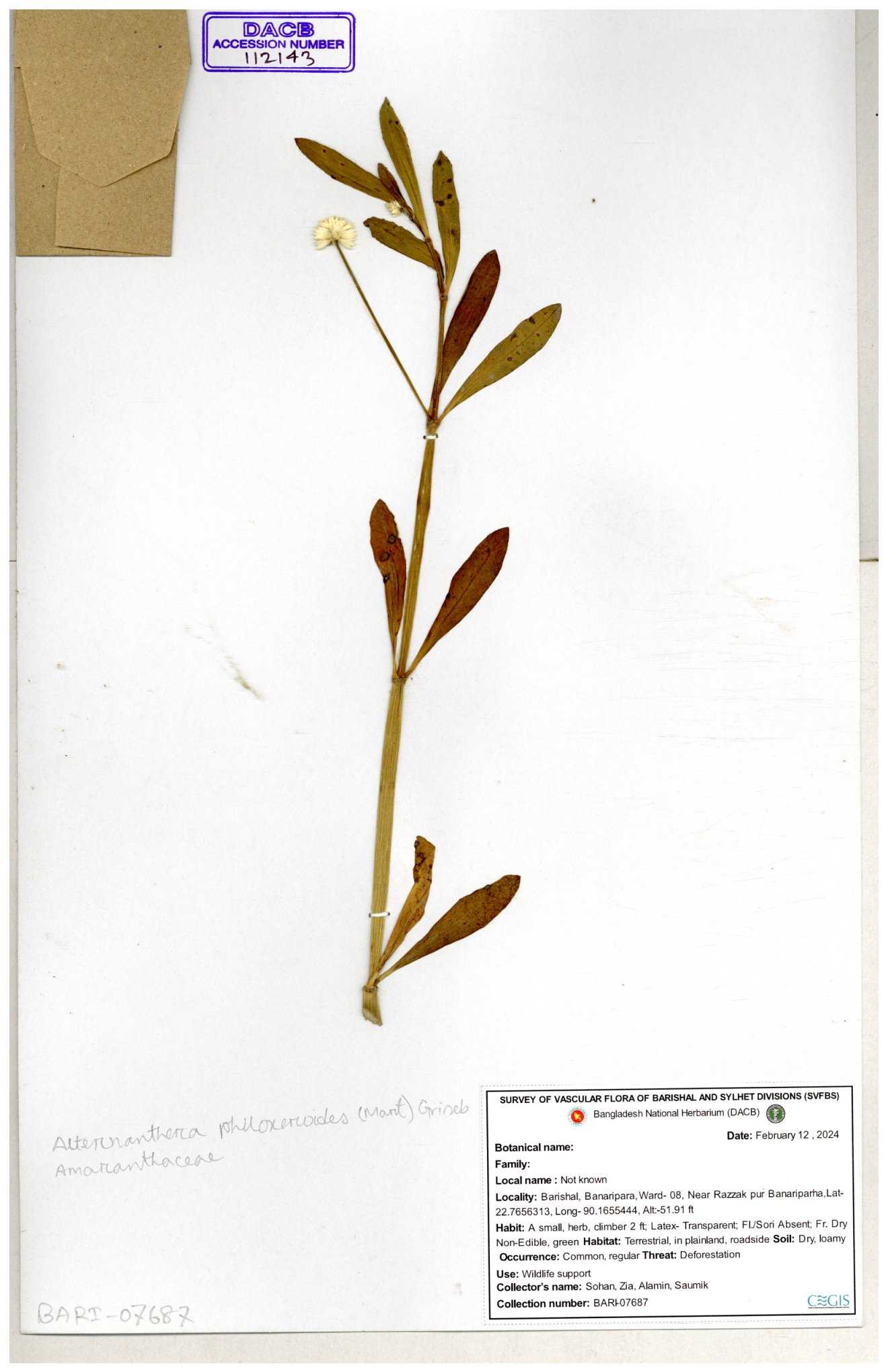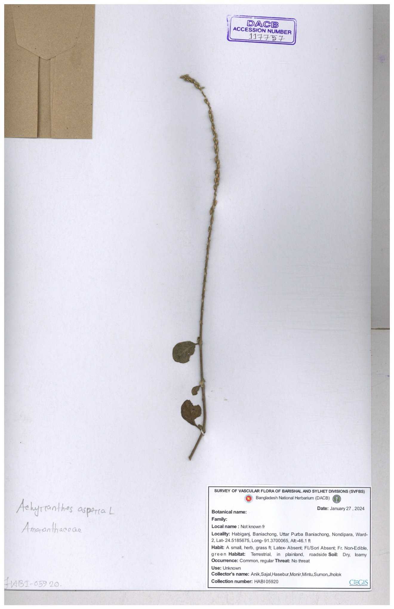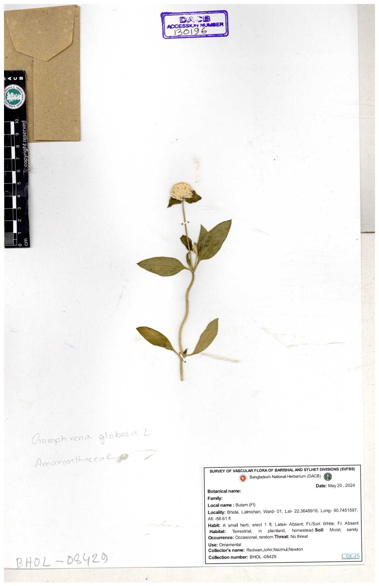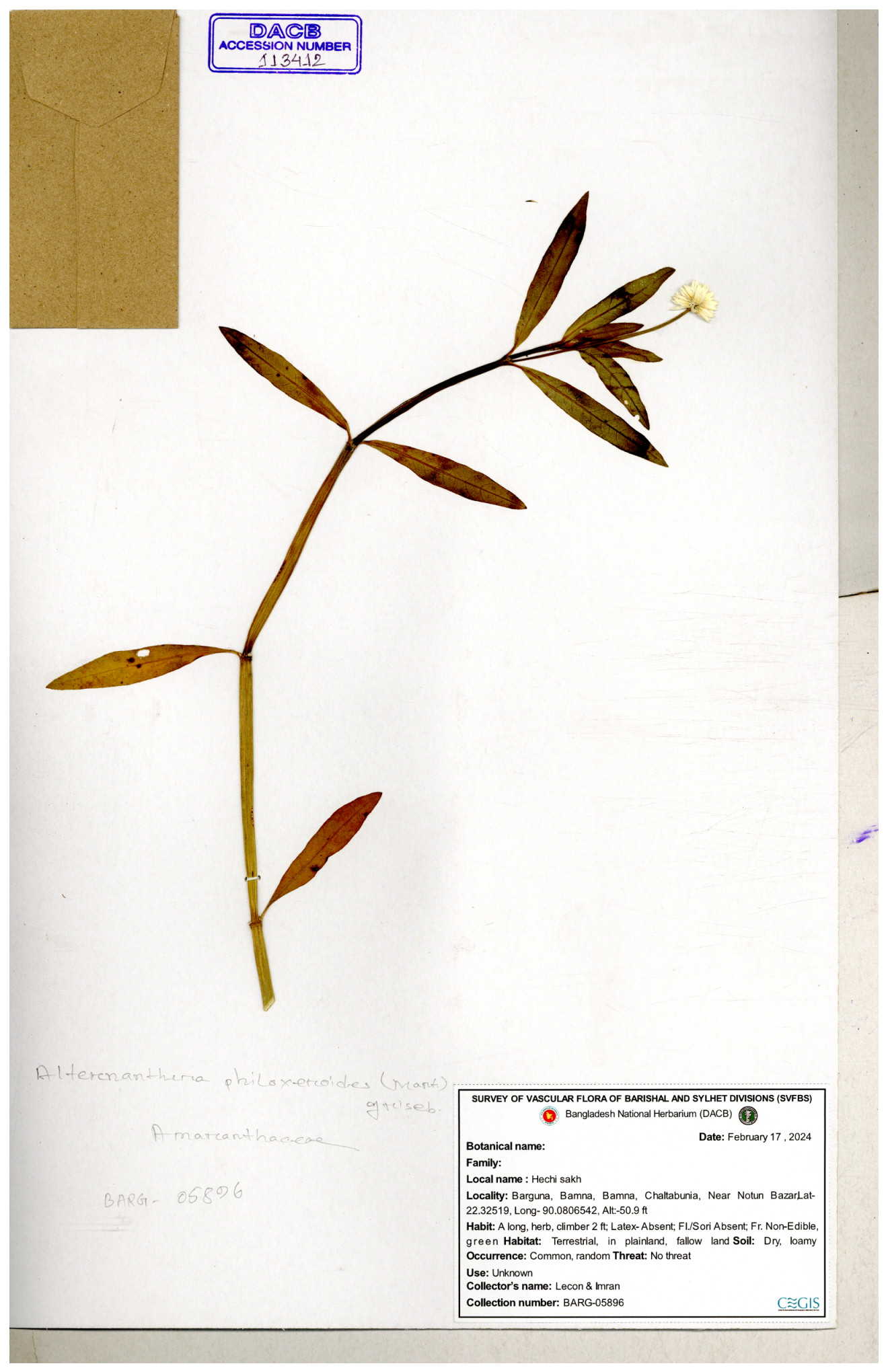 | 65981 | Amaranthaceae | Amaranthus viridis L. | Khandakar Kamrul Islam | KKI-4064 12-03-2020 |