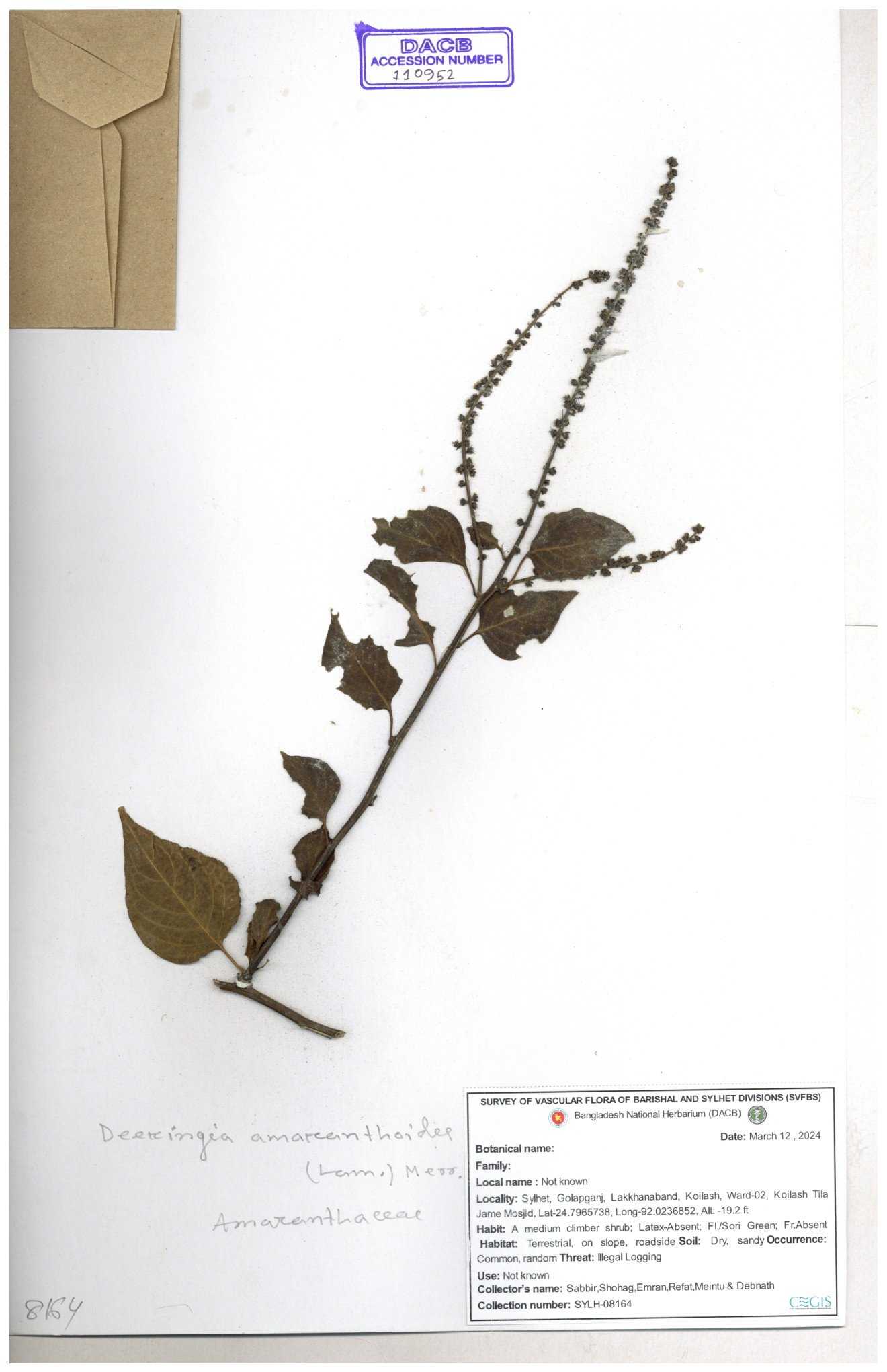 | 65975 | Amaranthaceae | Deeringia amaranthoides (Lam.) Merr. | Khandakar Kamrul Islam | KKI-4055 12-03-2020 |