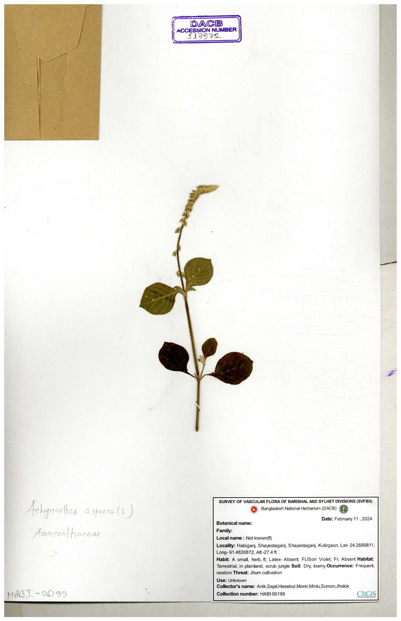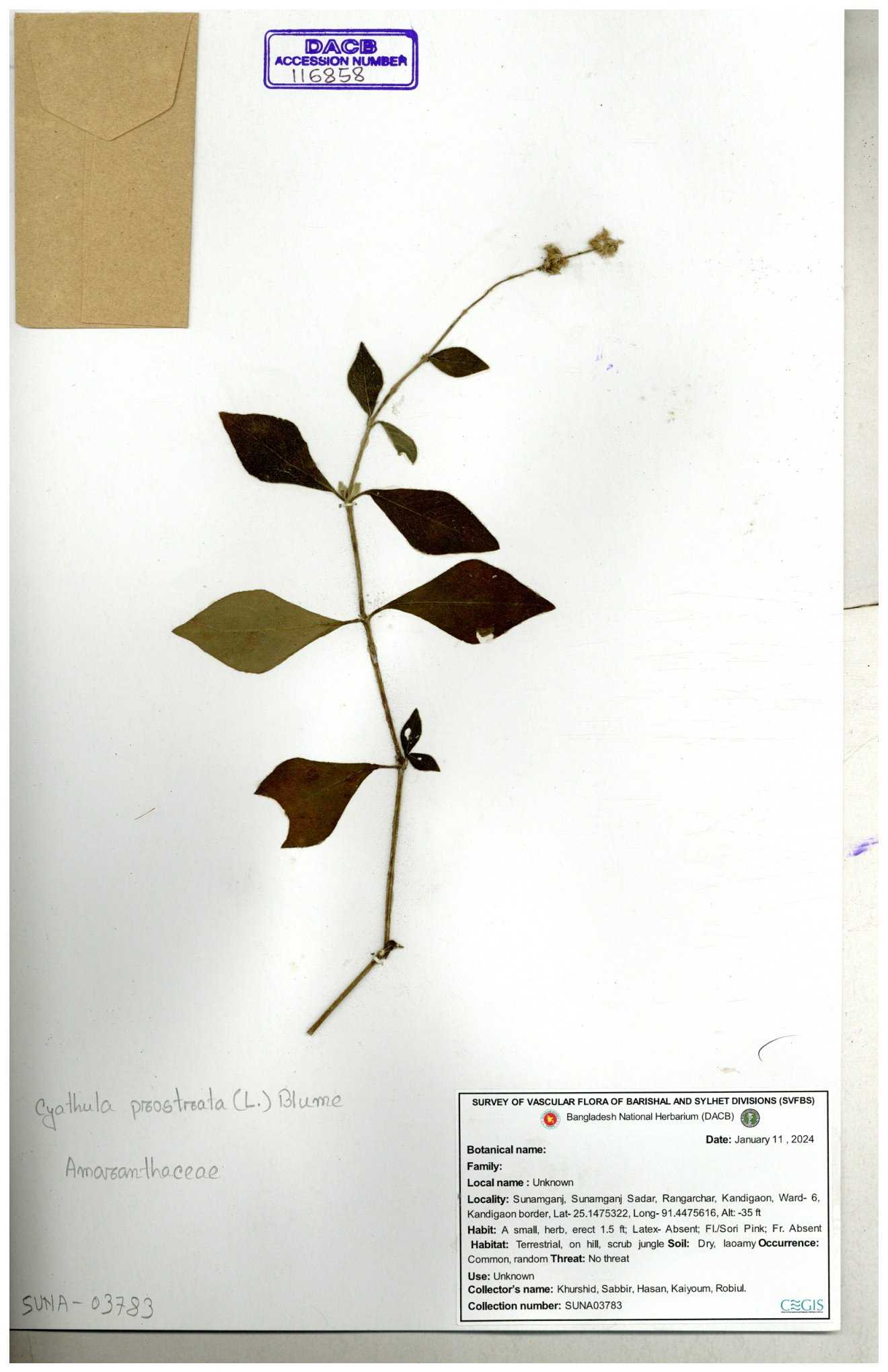 | 64342 | Amaranthaceae | Amaranthus viridis L. | Joyanta Chandra Roy, Kamrul Isalm & Suborno Chakma | JCR-527 30-11--0001 |