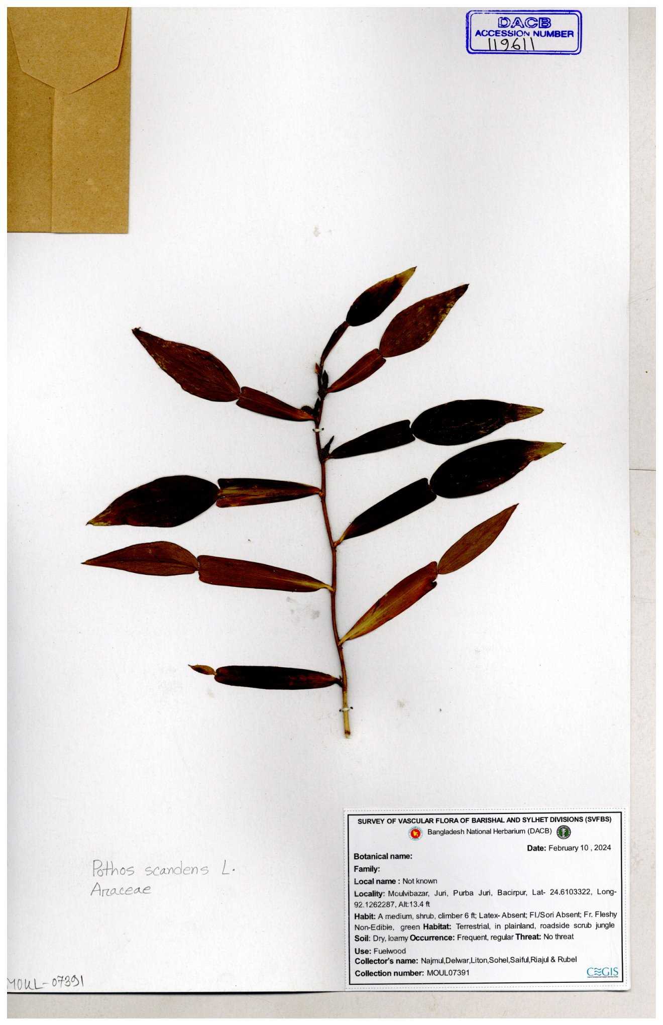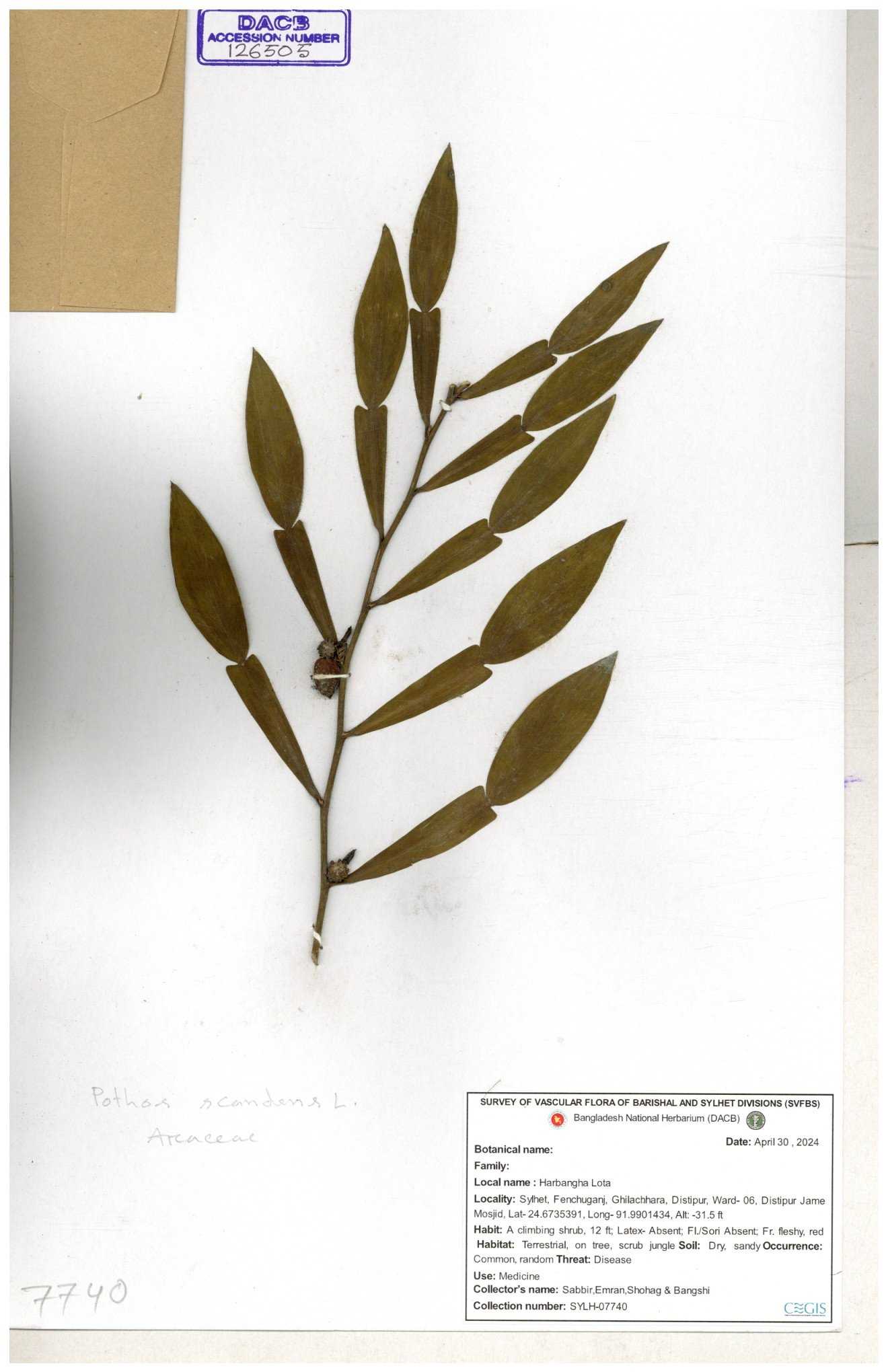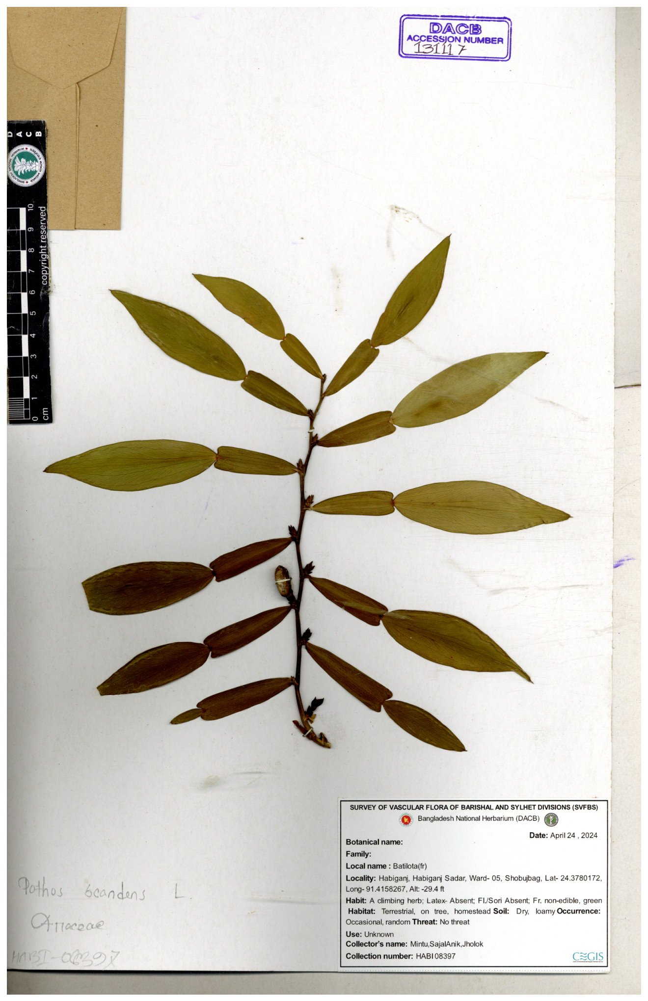 | 4375 | Araceae | Lasia spinosa (L.) Thwaites | Huq, Rahman & Mia | H. 1997 06-01-1976 |