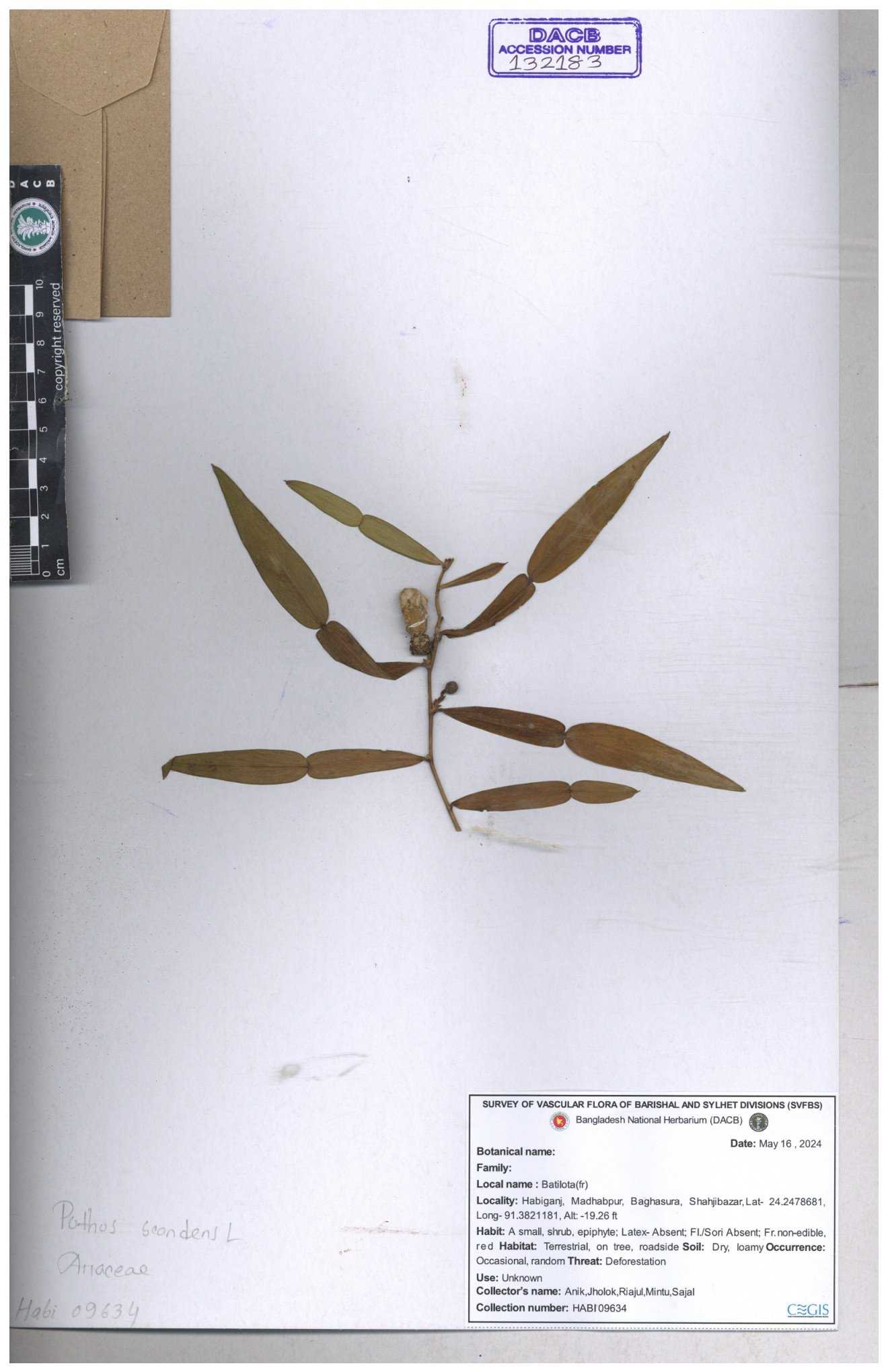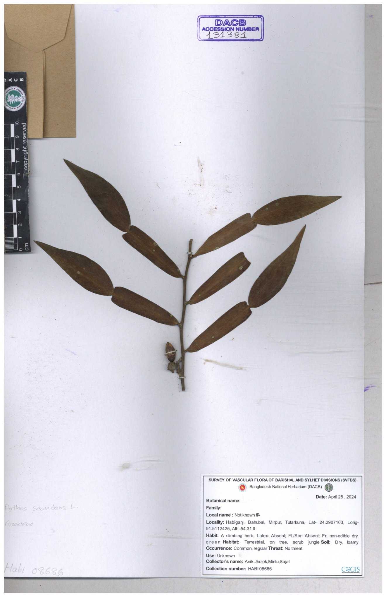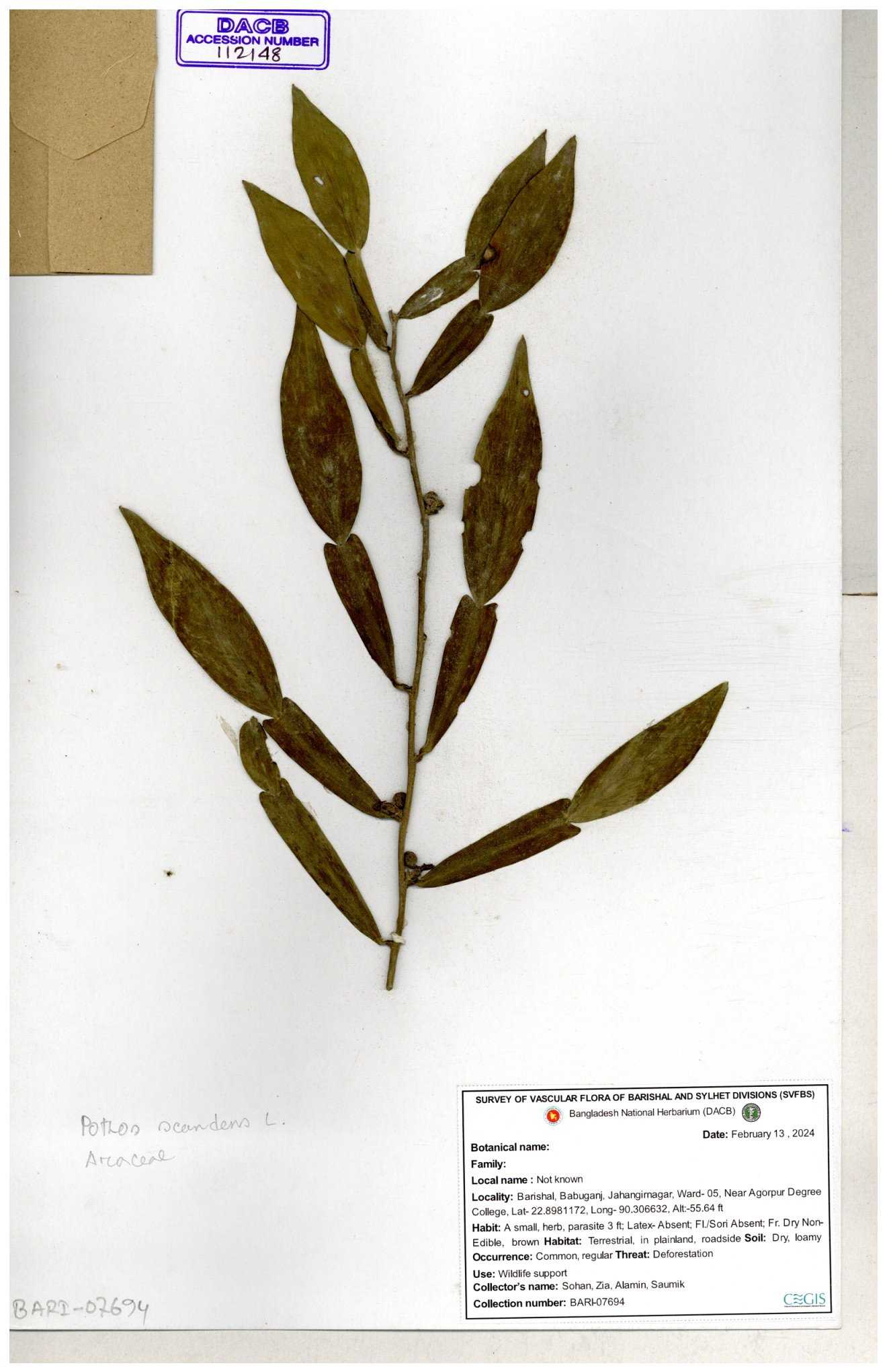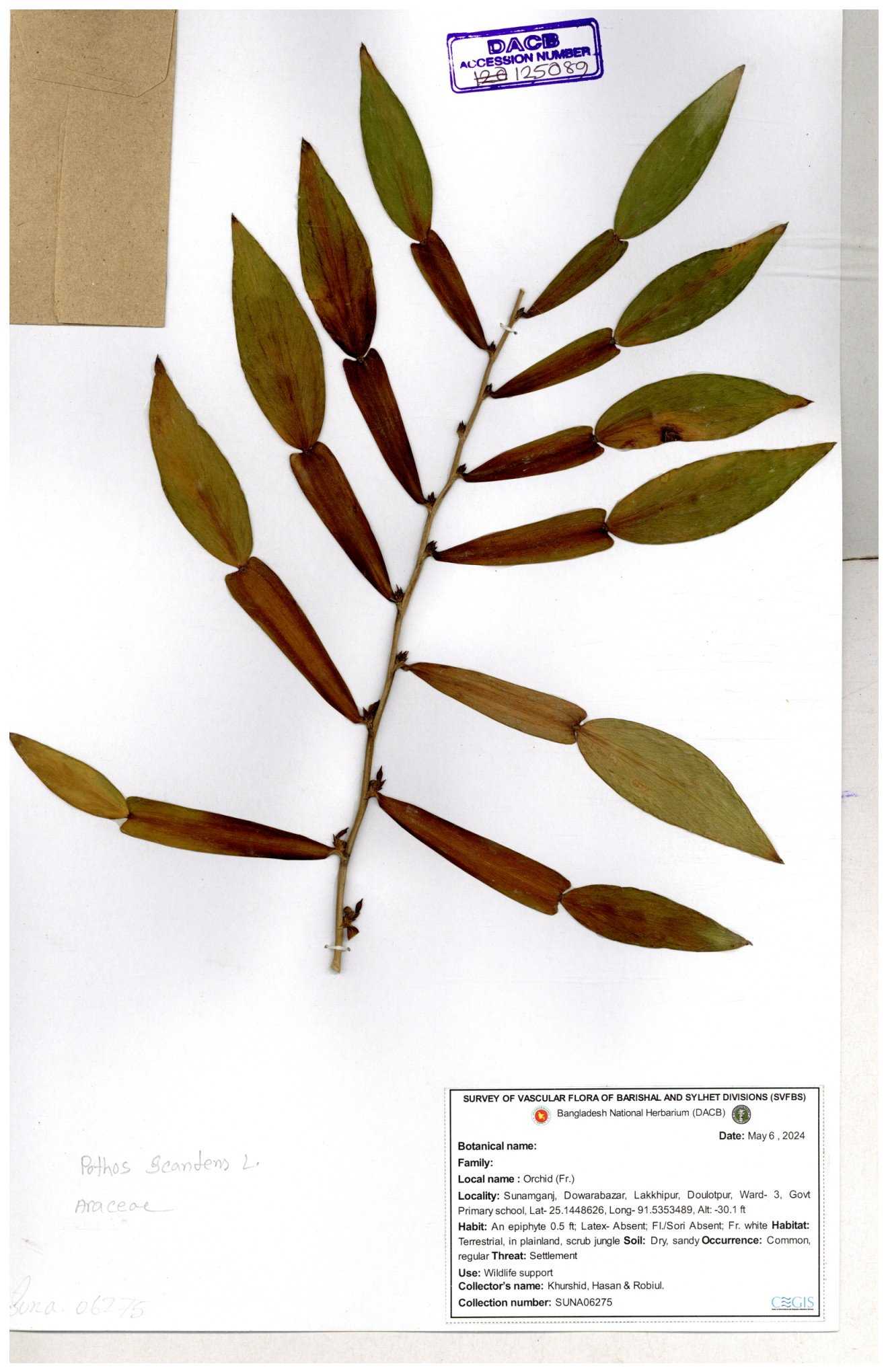 | 4328 | Araceae | Alocasia acuminata Schott | Huq & Rahman | H. 3752 17-01-1978 |