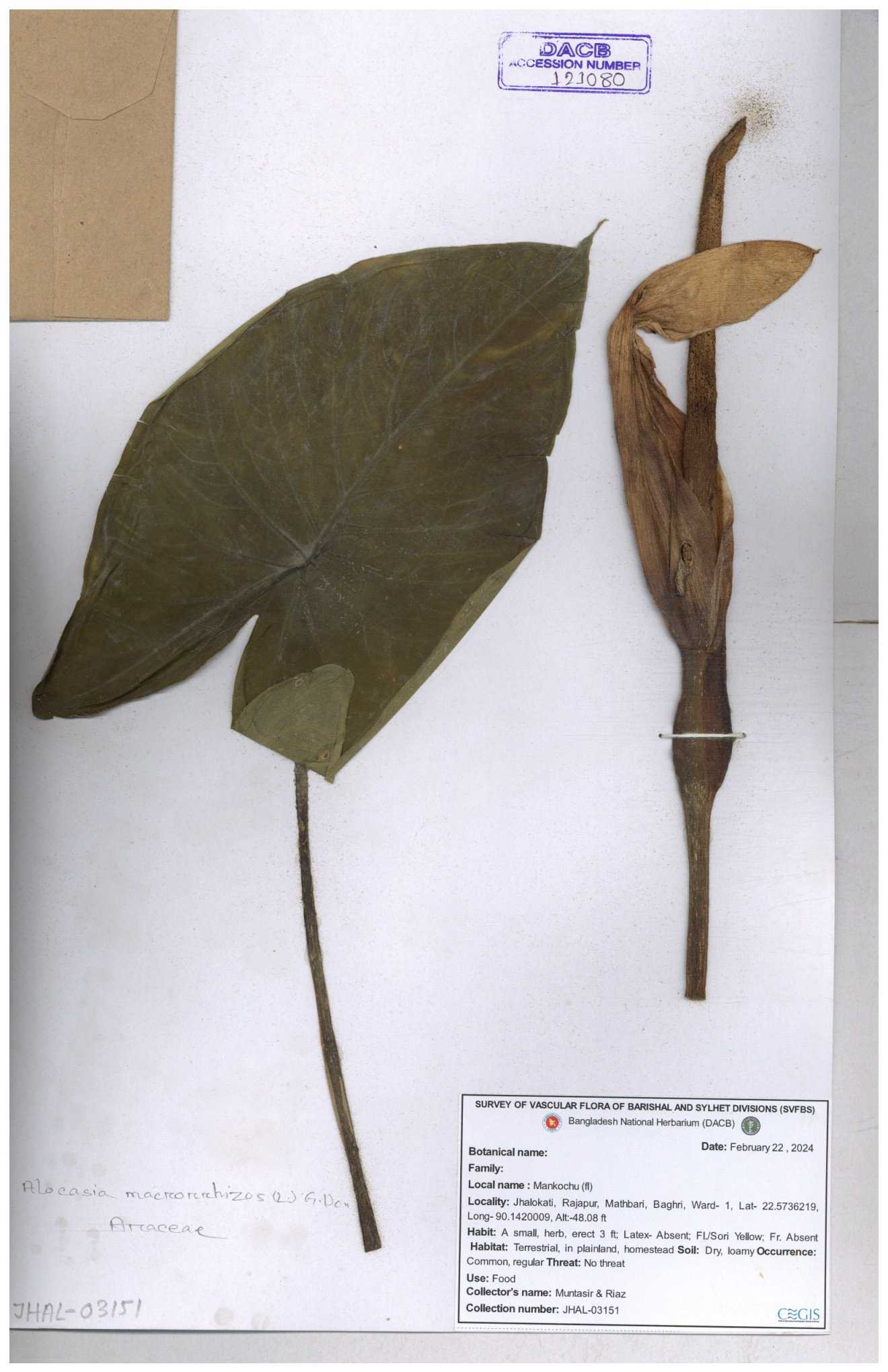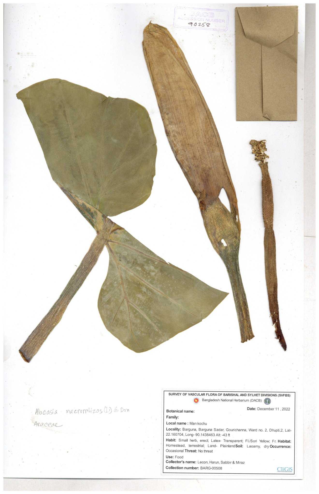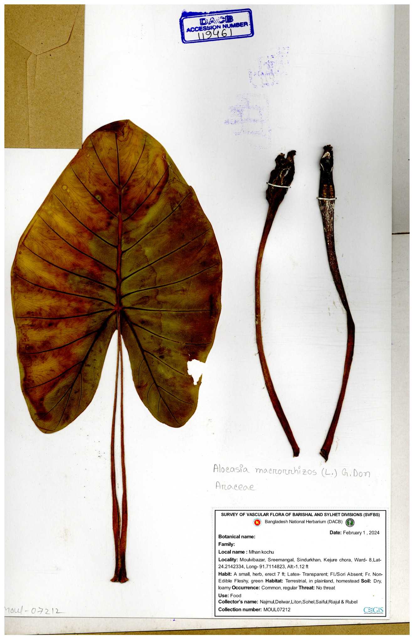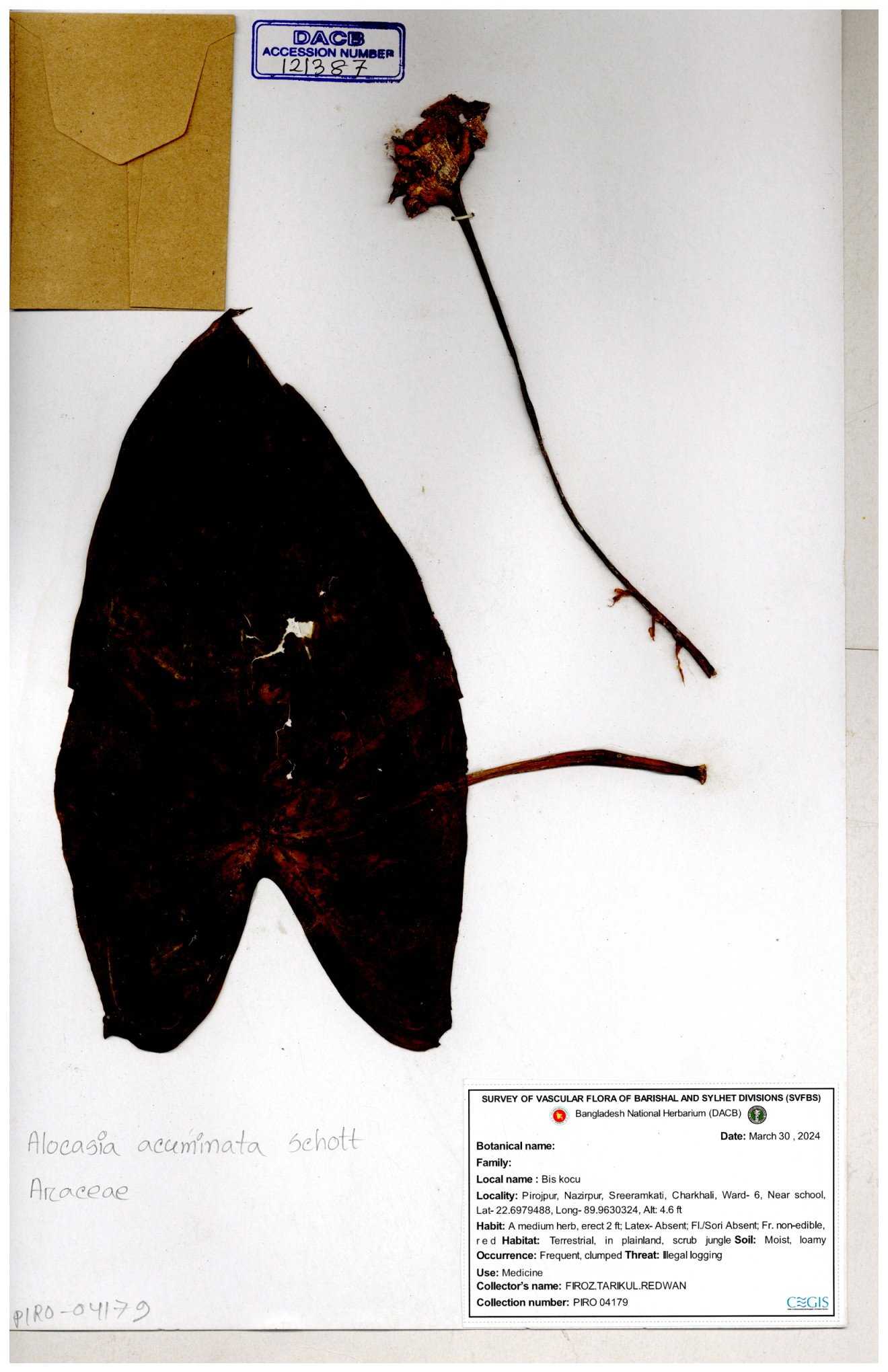 | 62441 | Araceae | Alocasia acuminata Schott | Niyamul Kabir, Zahid Hasan, Mehedi Hasan | NK-4871 30-11--0001 |