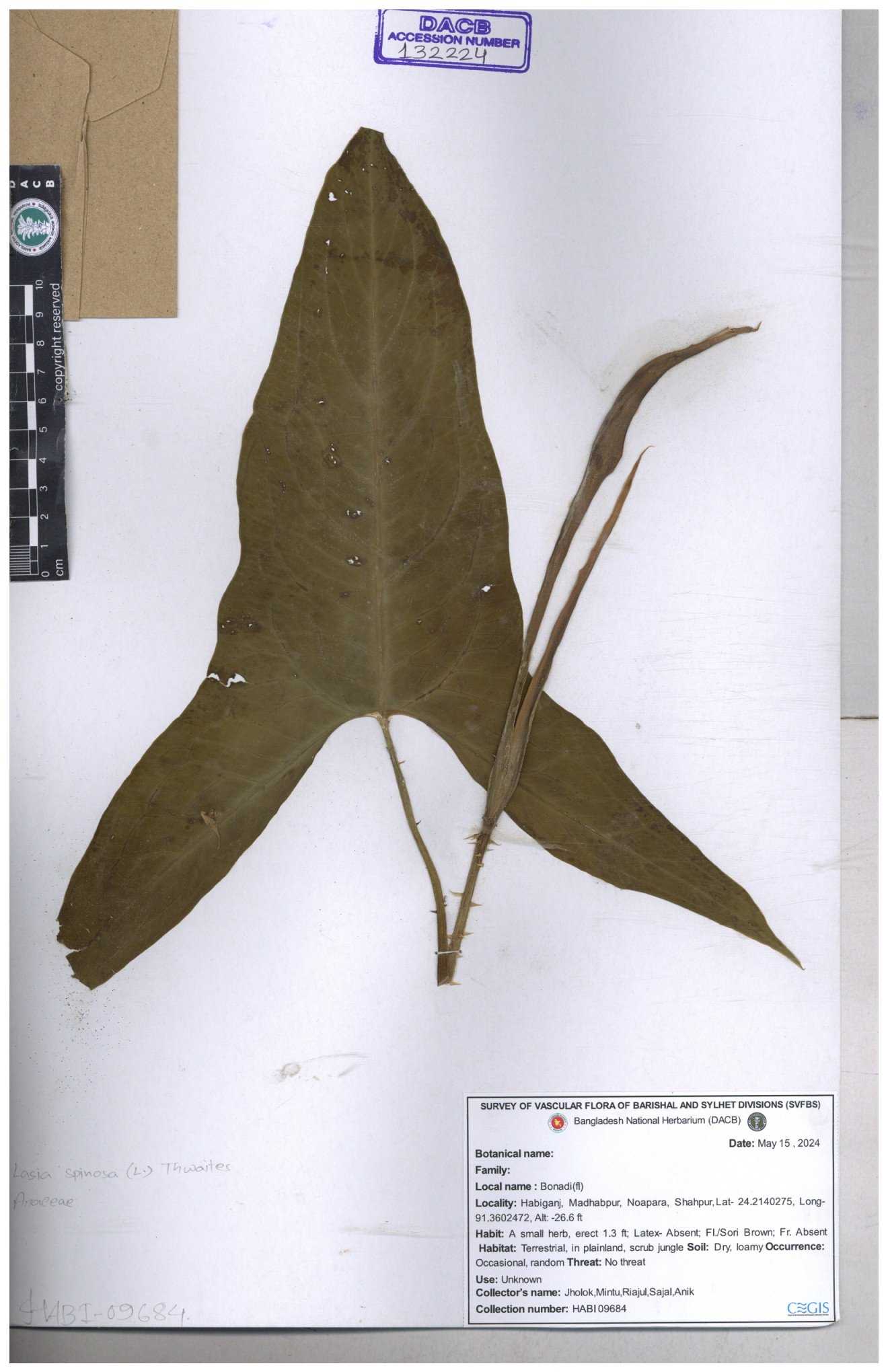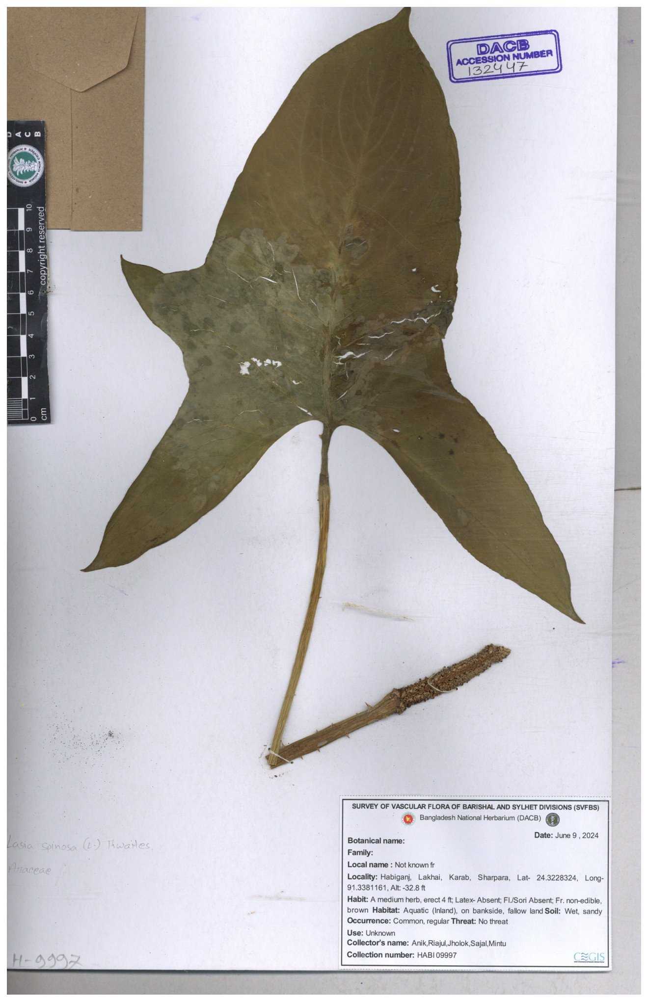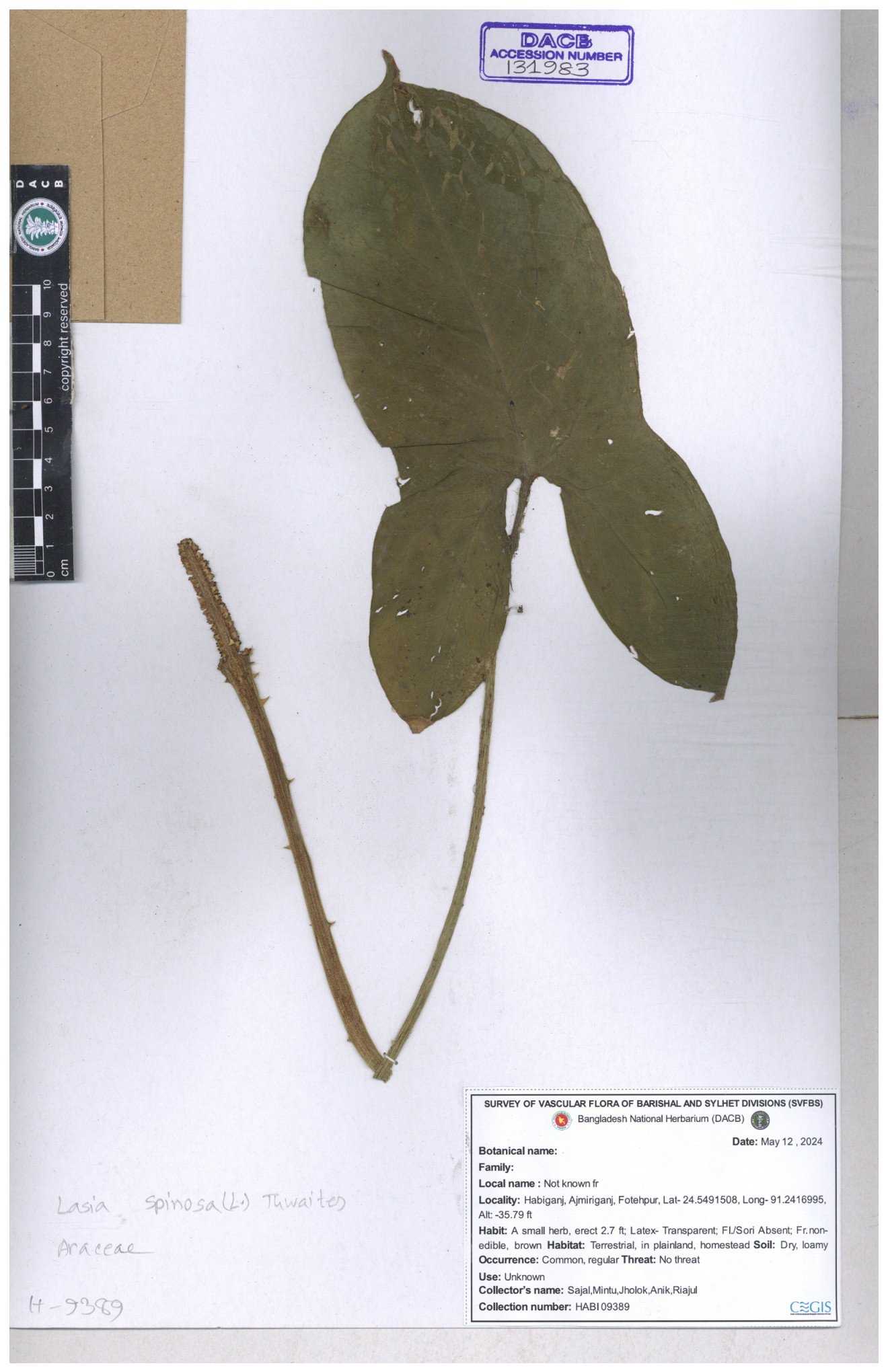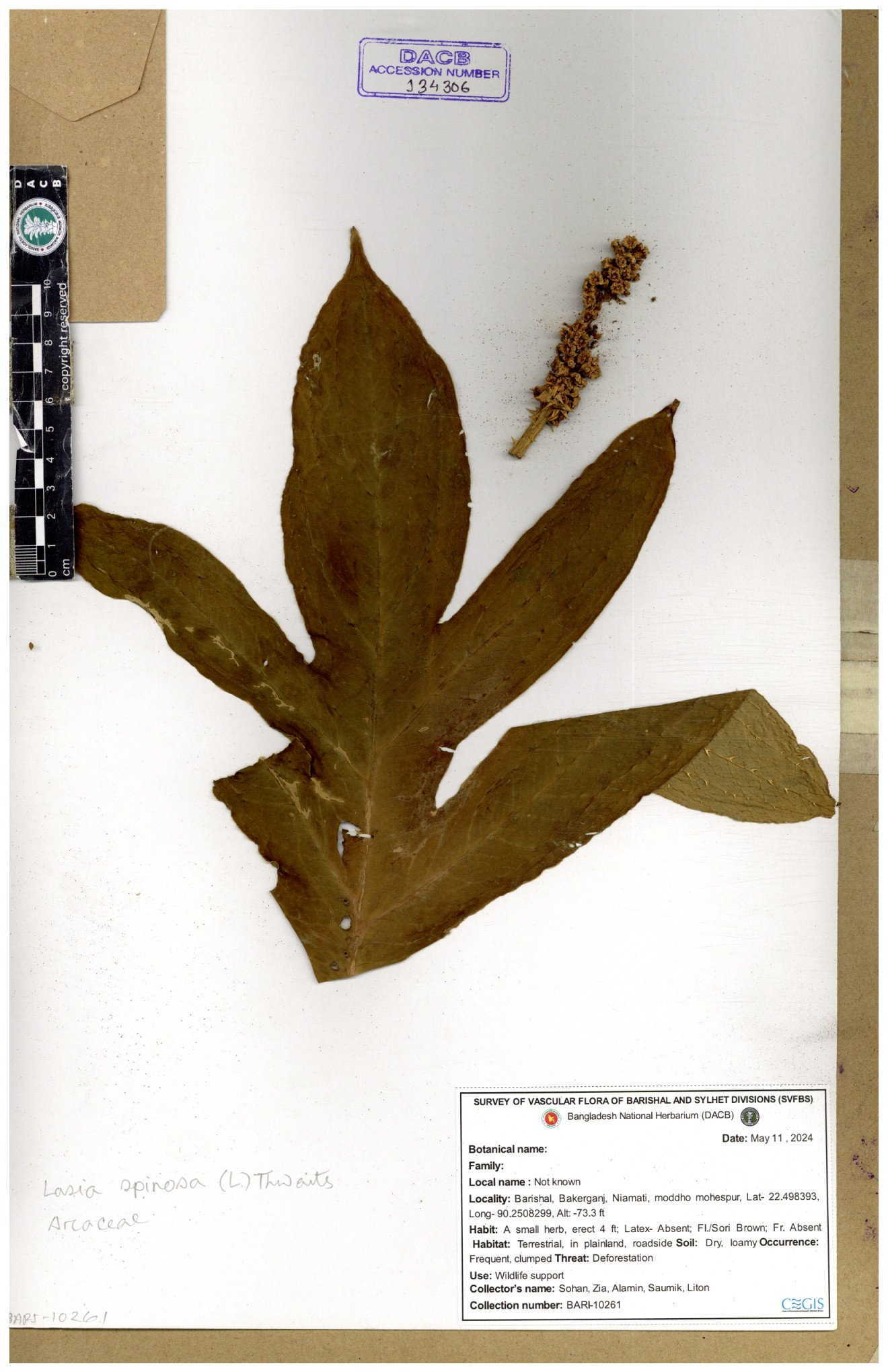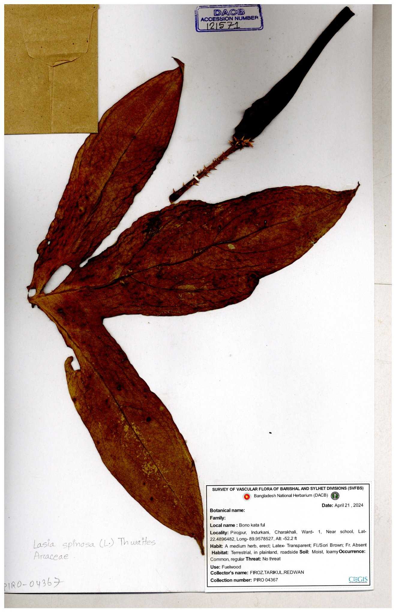 | 4374 | Araceae | Lasia spinosa (L.) Thwaites | Mahbuba Halim | 346 13-01-1979 |