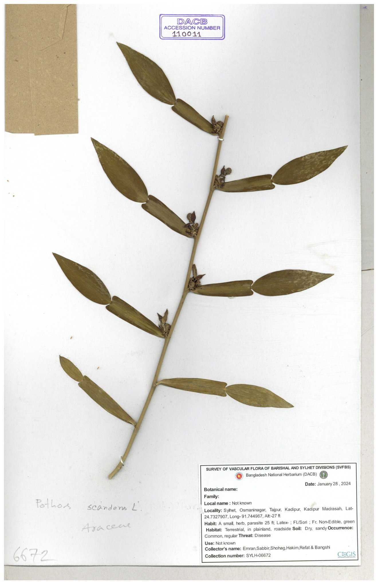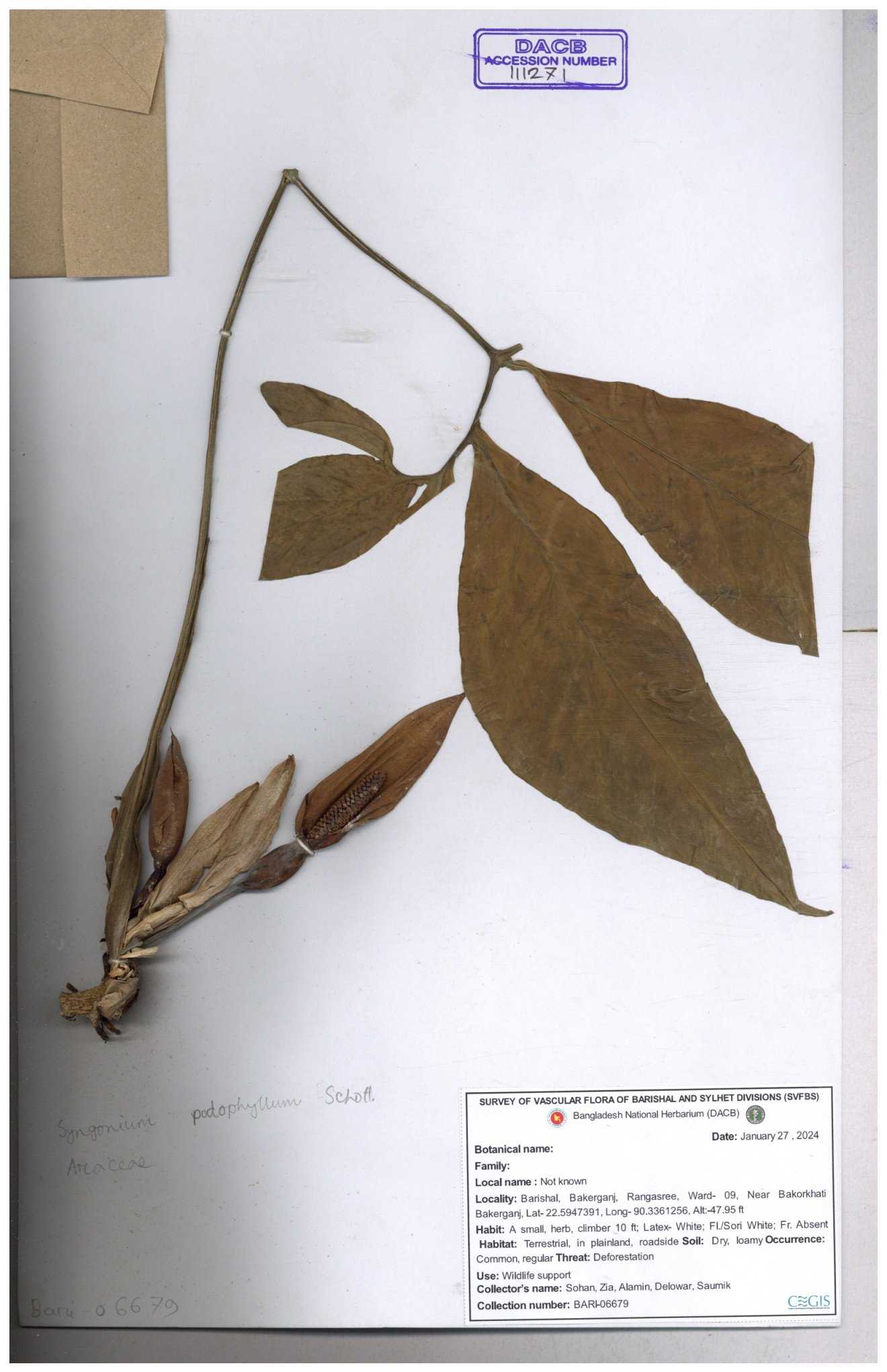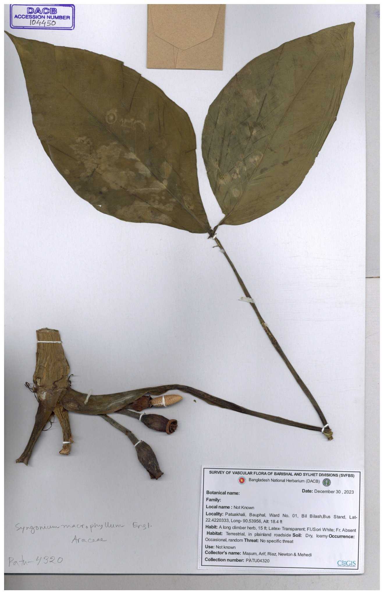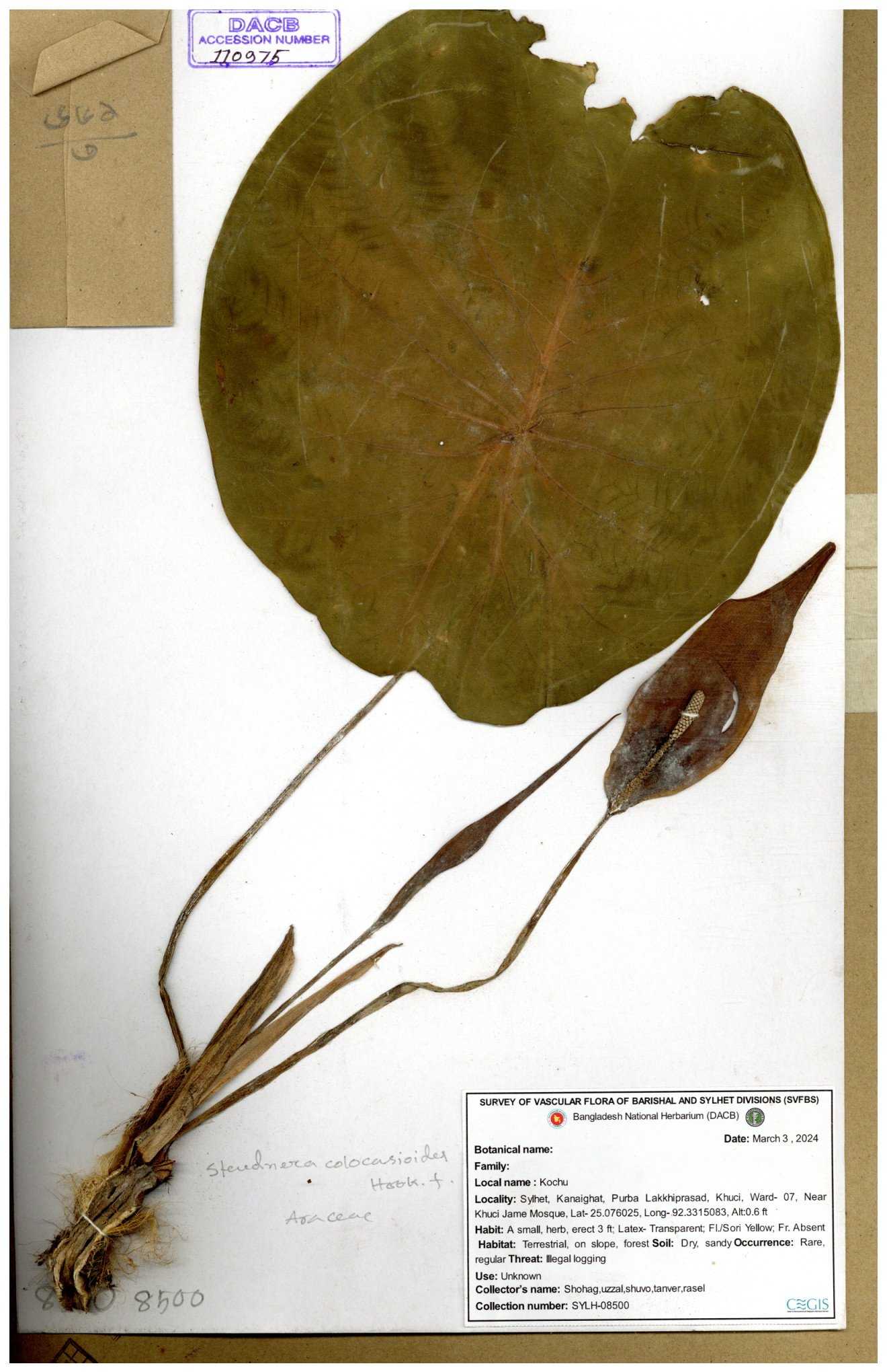 | 62428 | Araceae | Homalomena aromatica (Spreng.) Schott | Niyamul Kabir, Jahid Hasan, Mehedi Hasan | NK-3669 30-11--0001 |