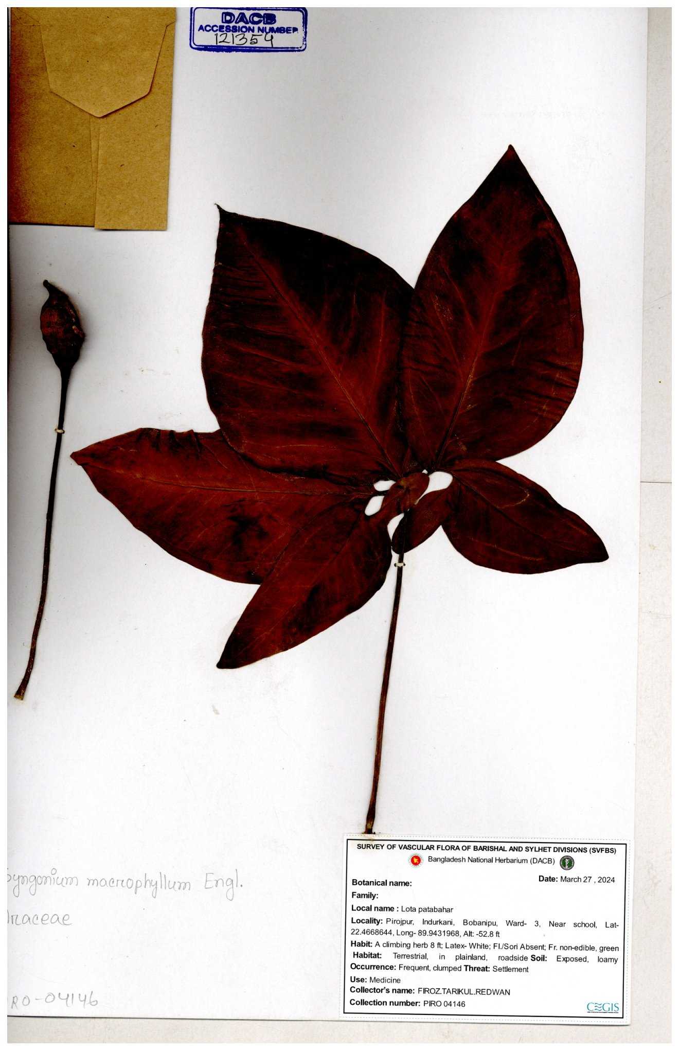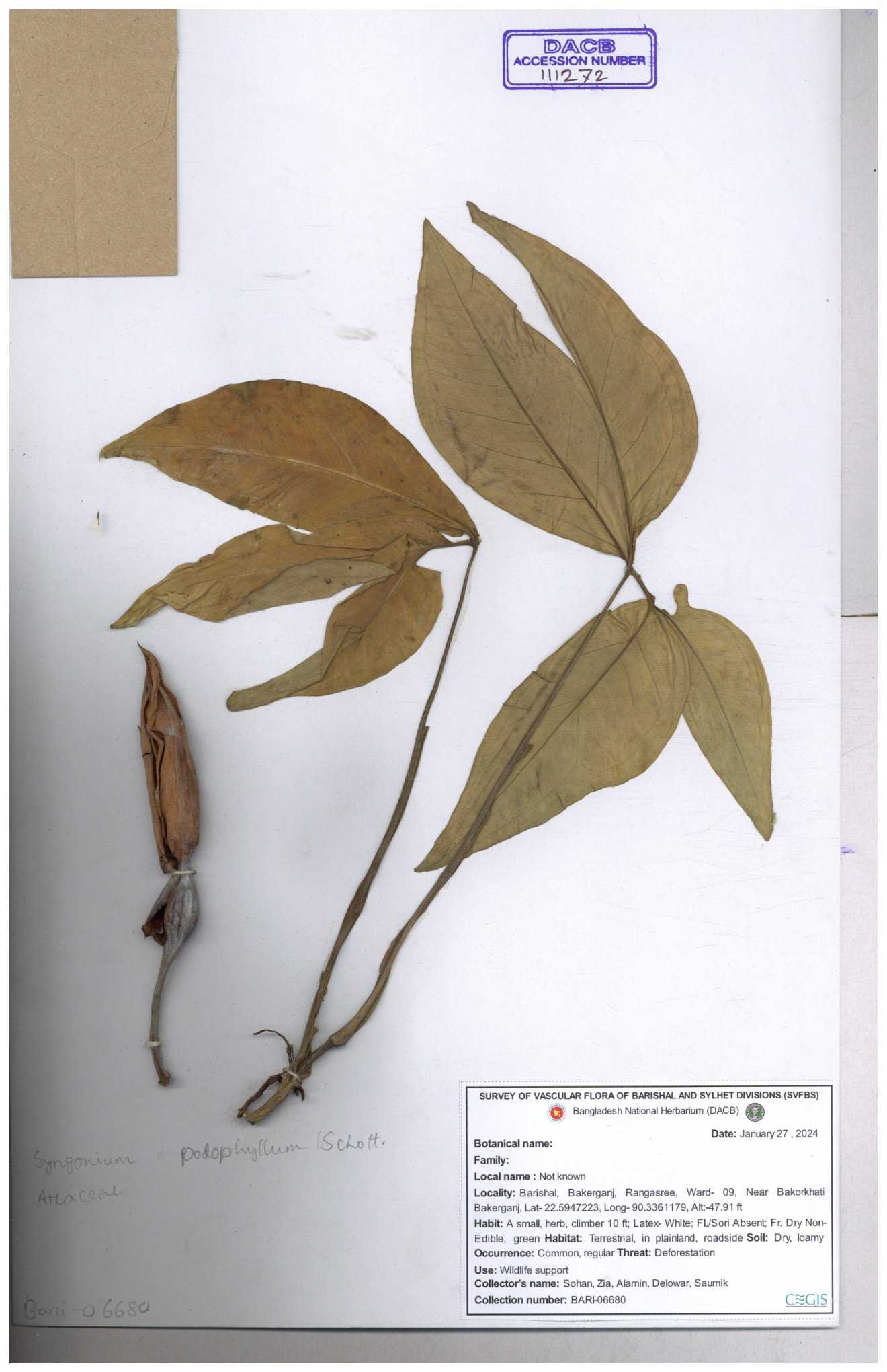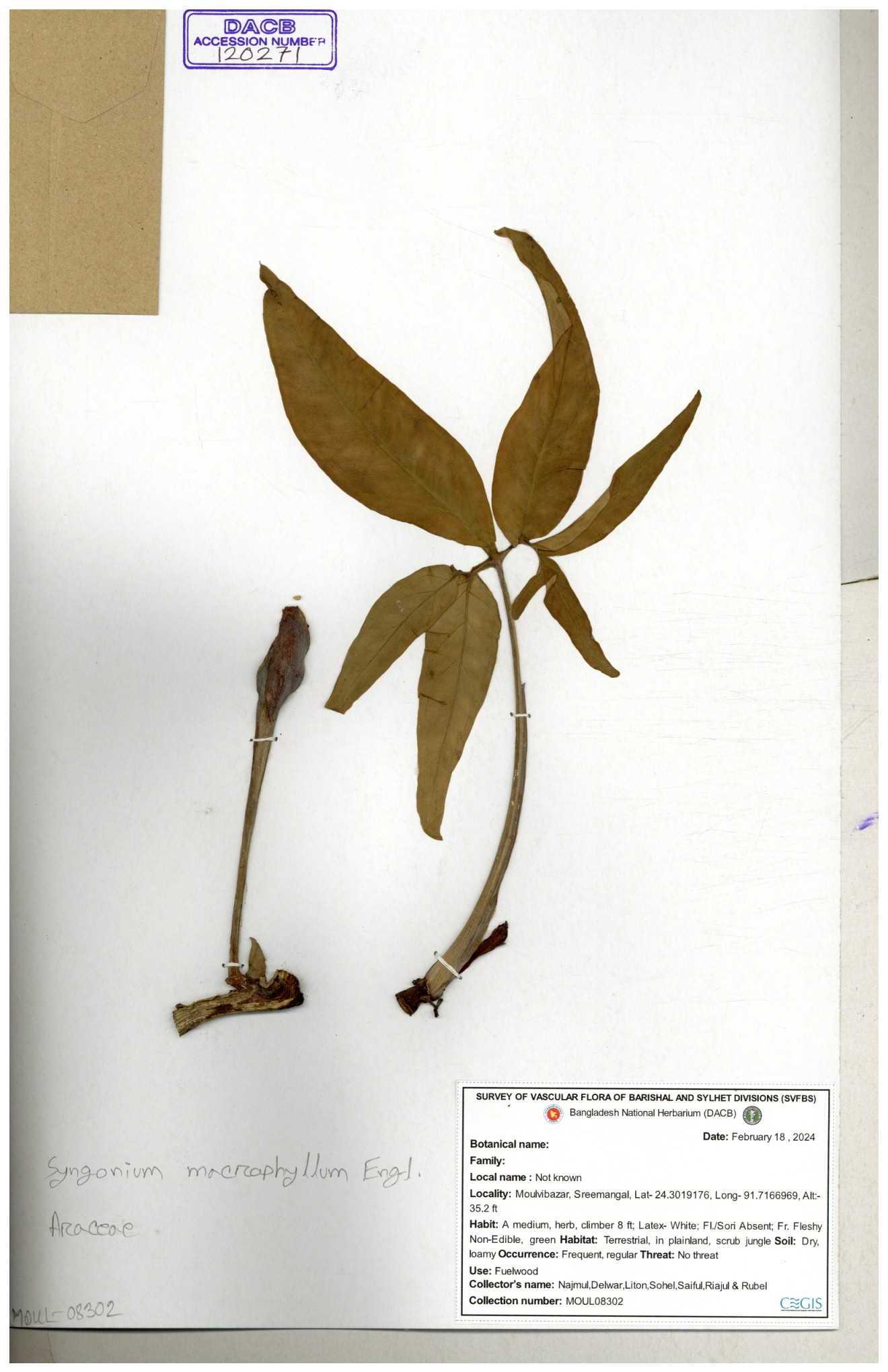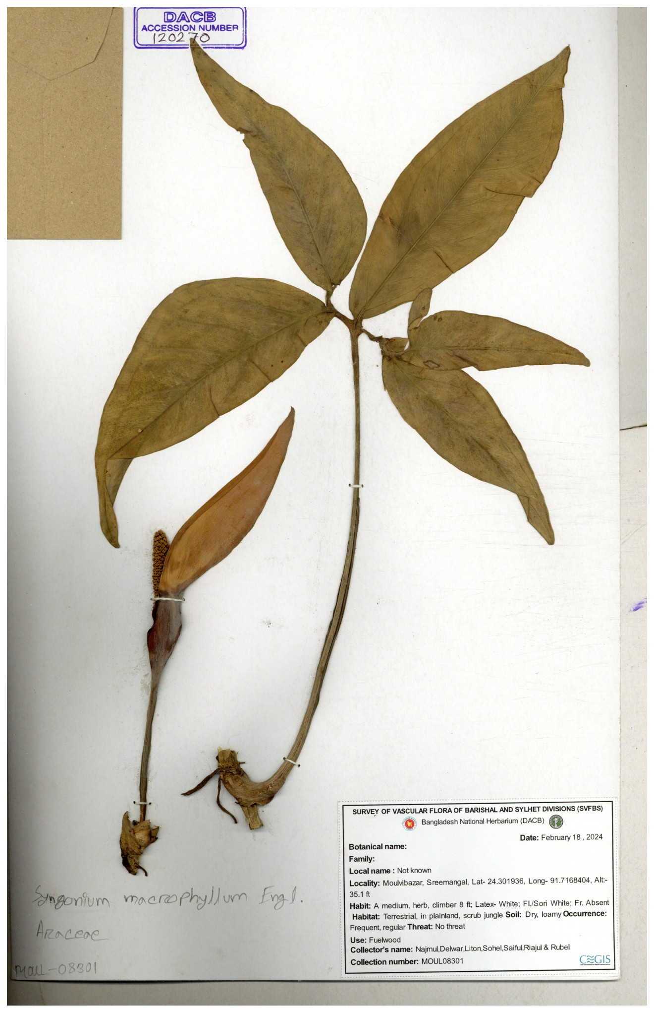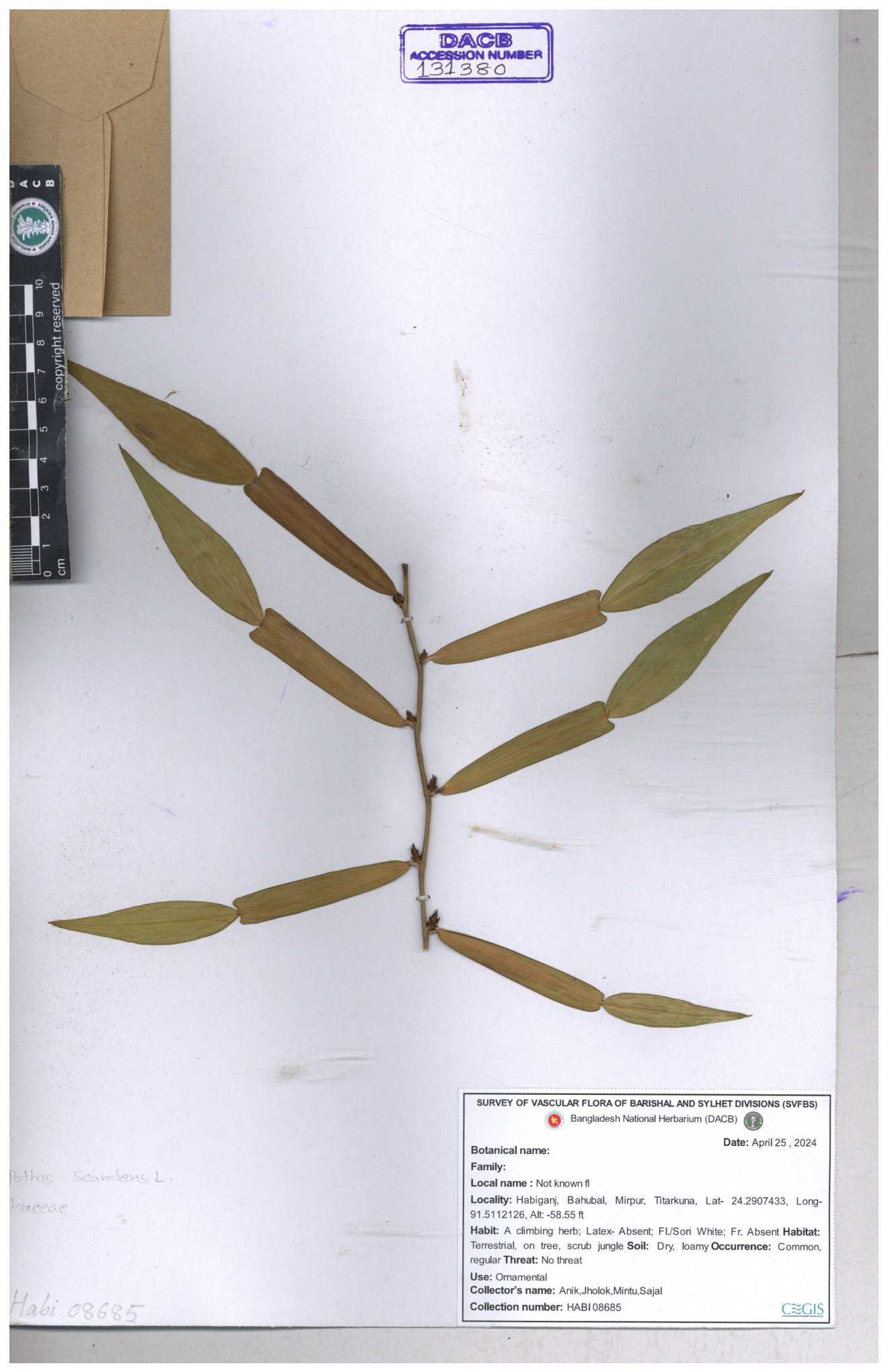 | 62428 | Araceae | Homalomena aromatica (Spreng.) Schott | Niyamul Kabir, Jahid Hasan, Mehedi Hasan | NK-3669 30-11--0001 |