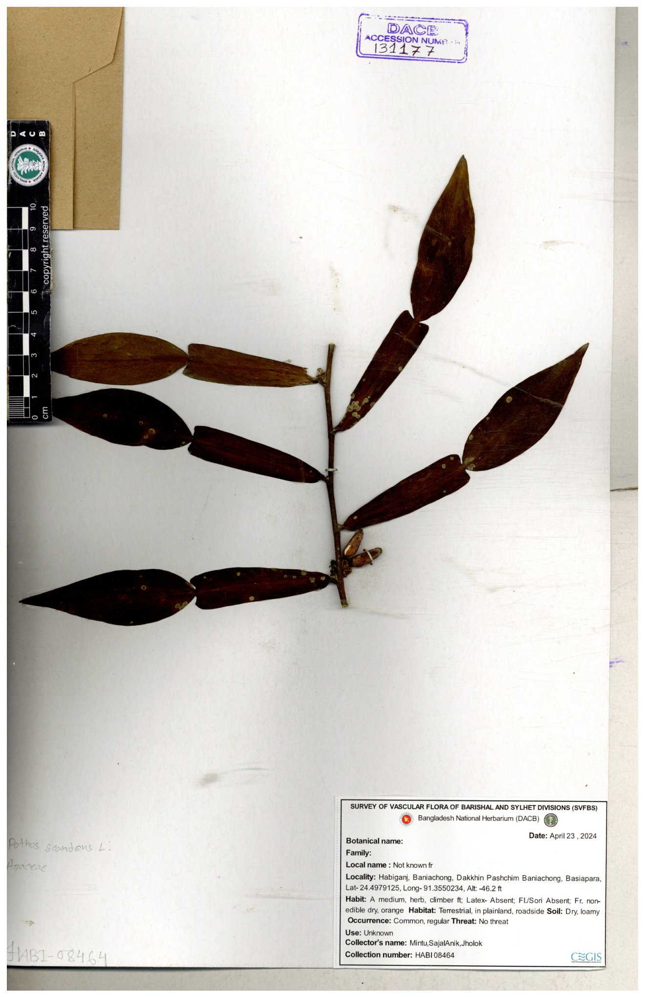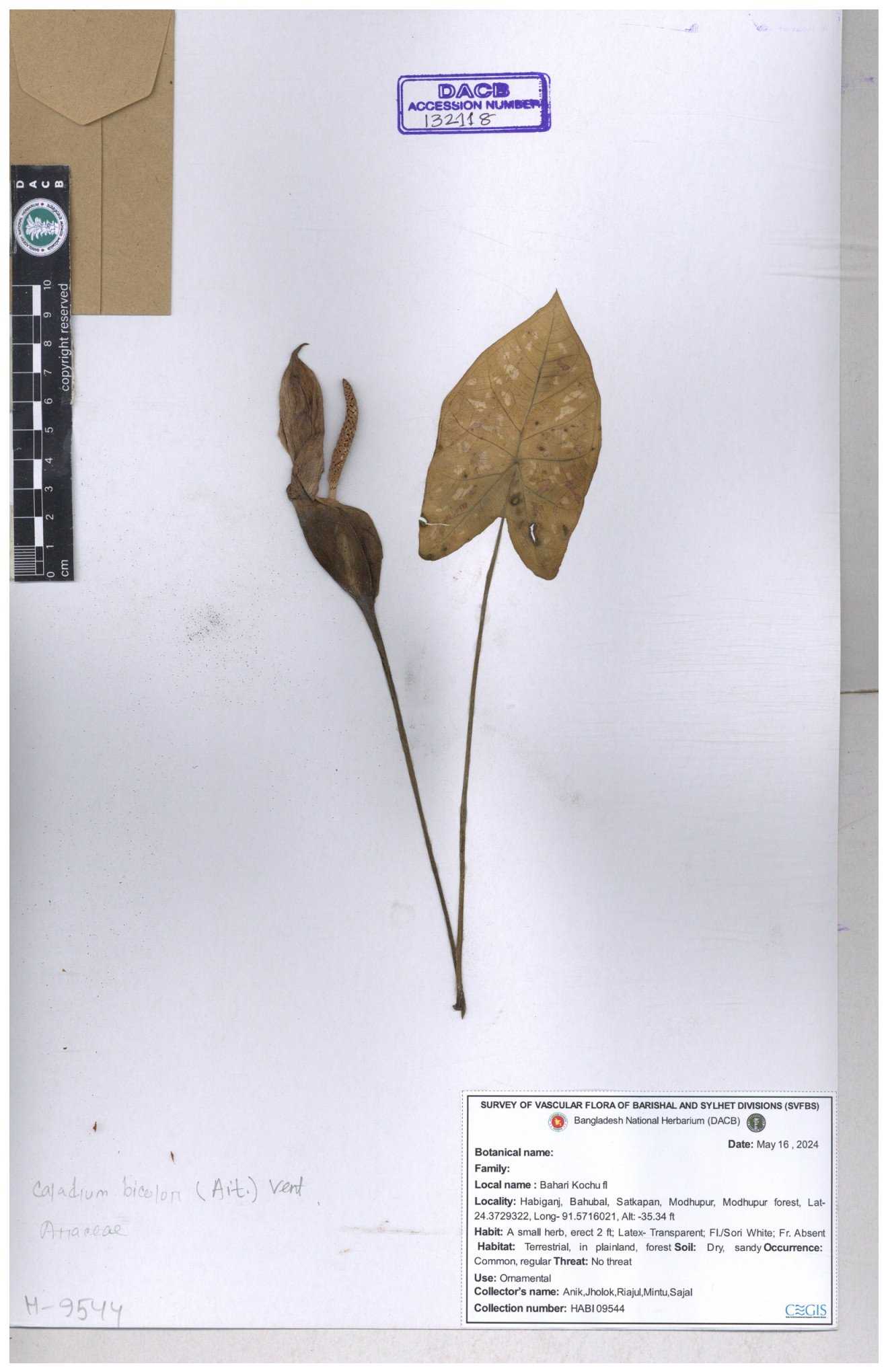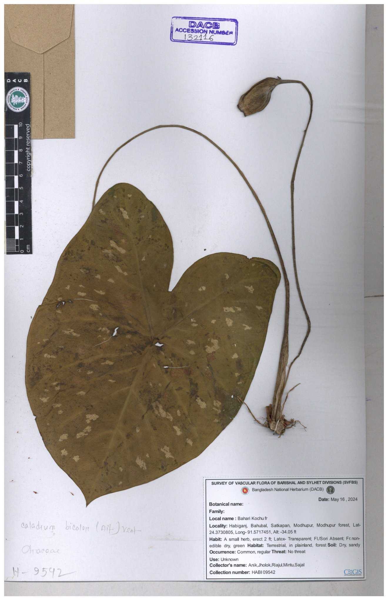 | 4343 | Araceae | Alocasia acuminata Schott | Huq, Rahman, Halim & Begum | H. 5264 18-11-1981 |