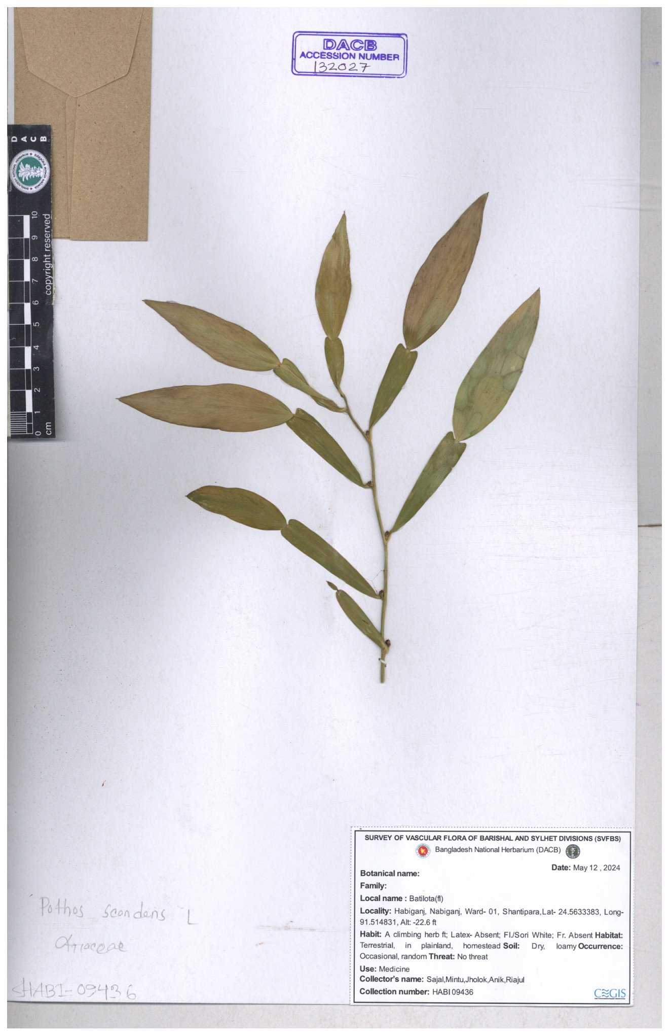| 4437 | Araceae | Typhonium trilobatum (L.) Schott | Mia, Huq, Halim & Begum | H. 526 16-06-1981 |