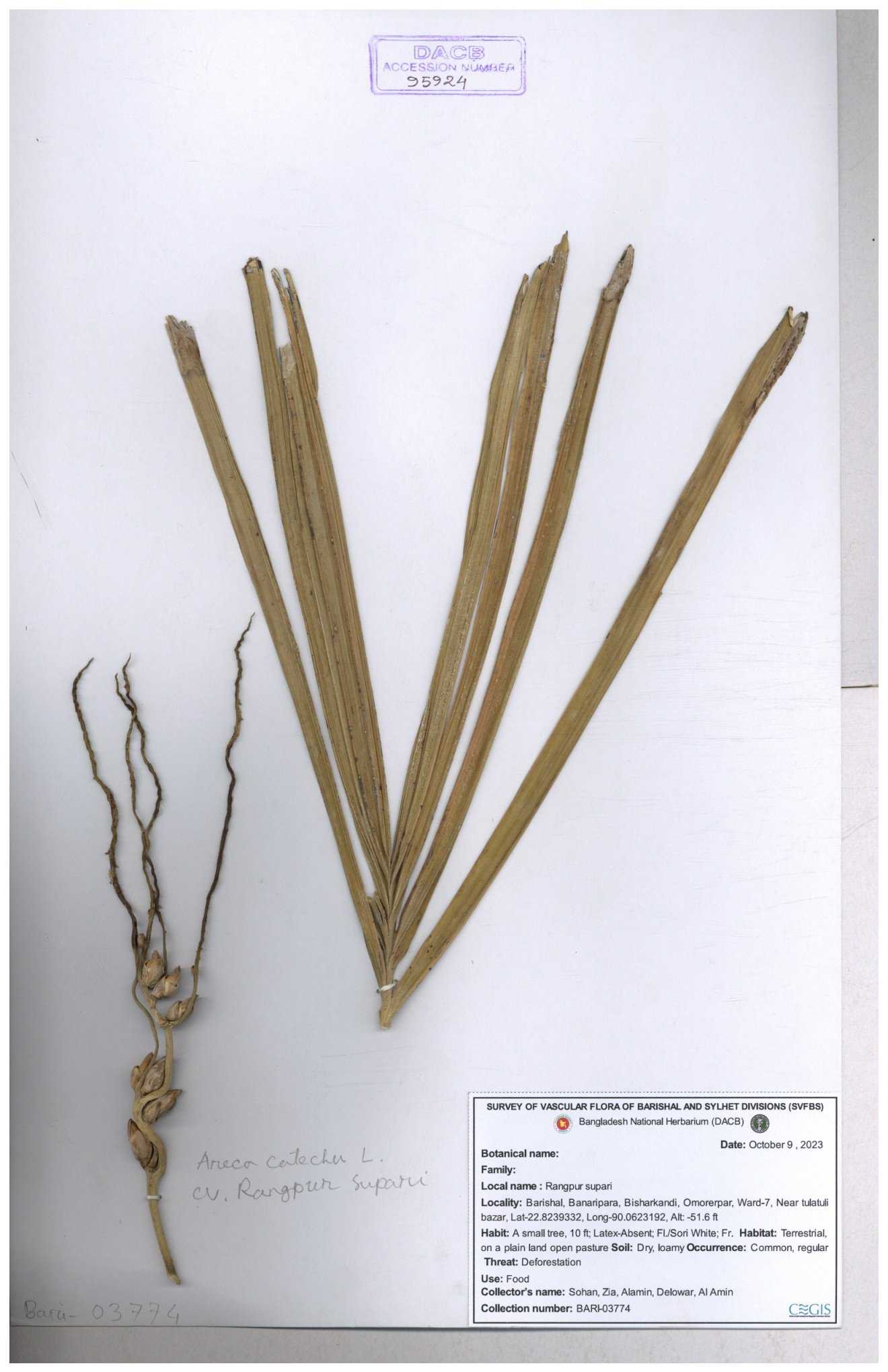 | 64895 | Araceae | Wallichia densiflora Mart. | Joyanta, Mominur, Kamrul & Suborno | JCR-4140 30-11--0001 |