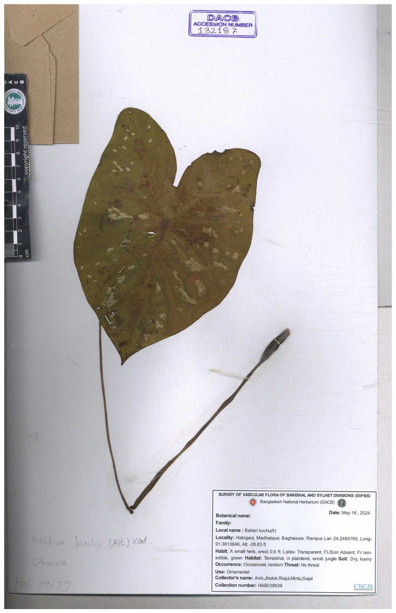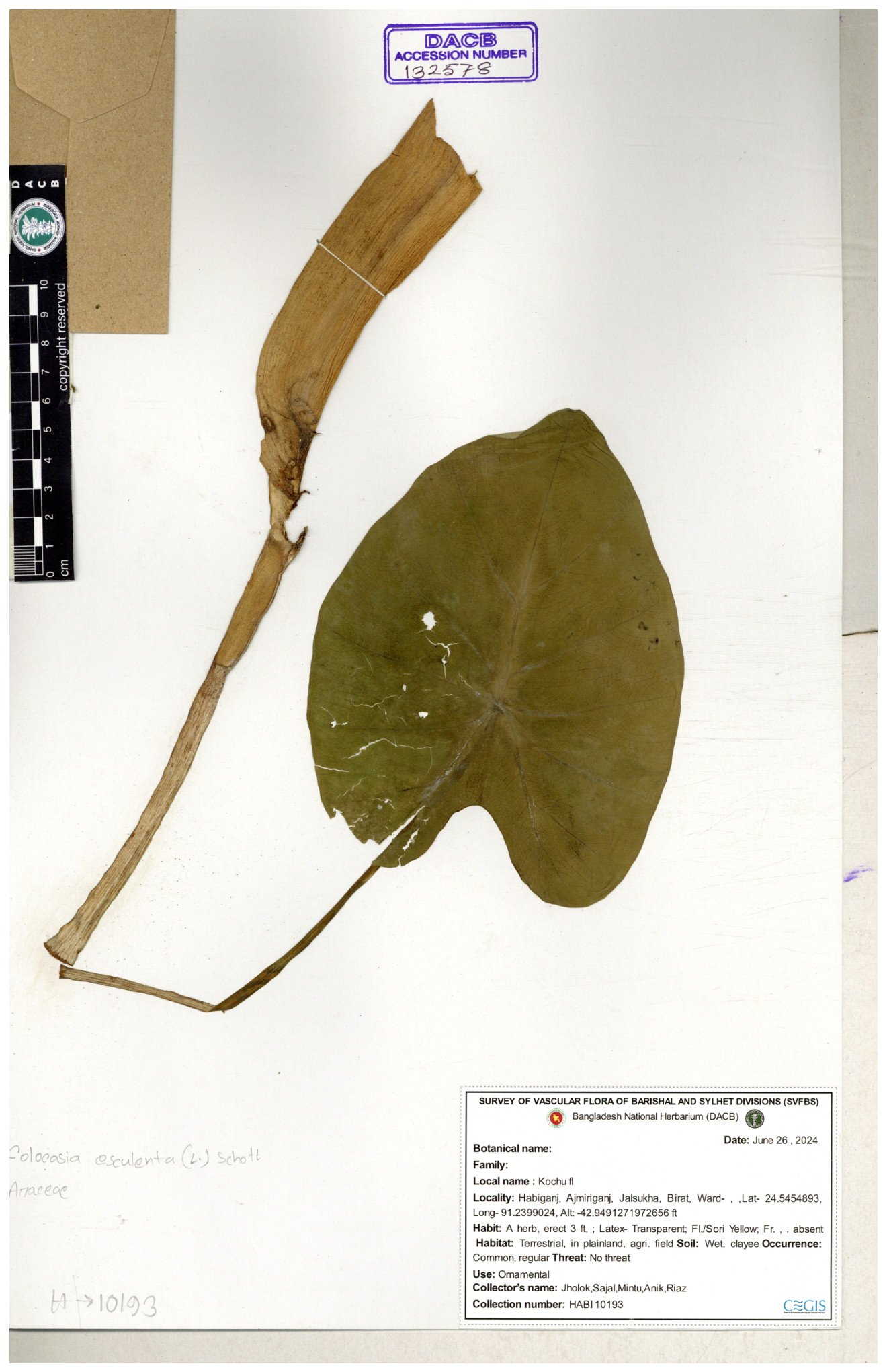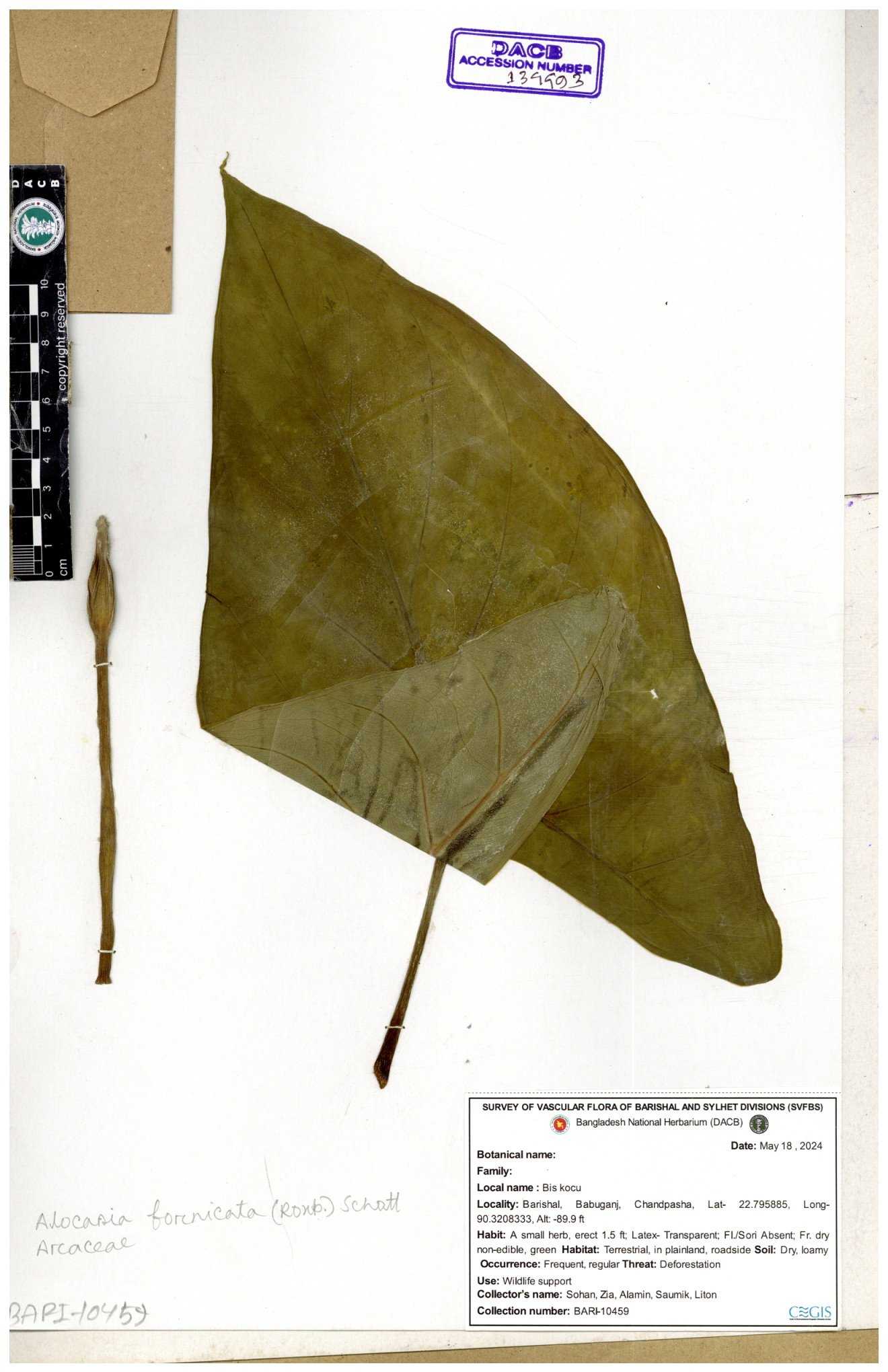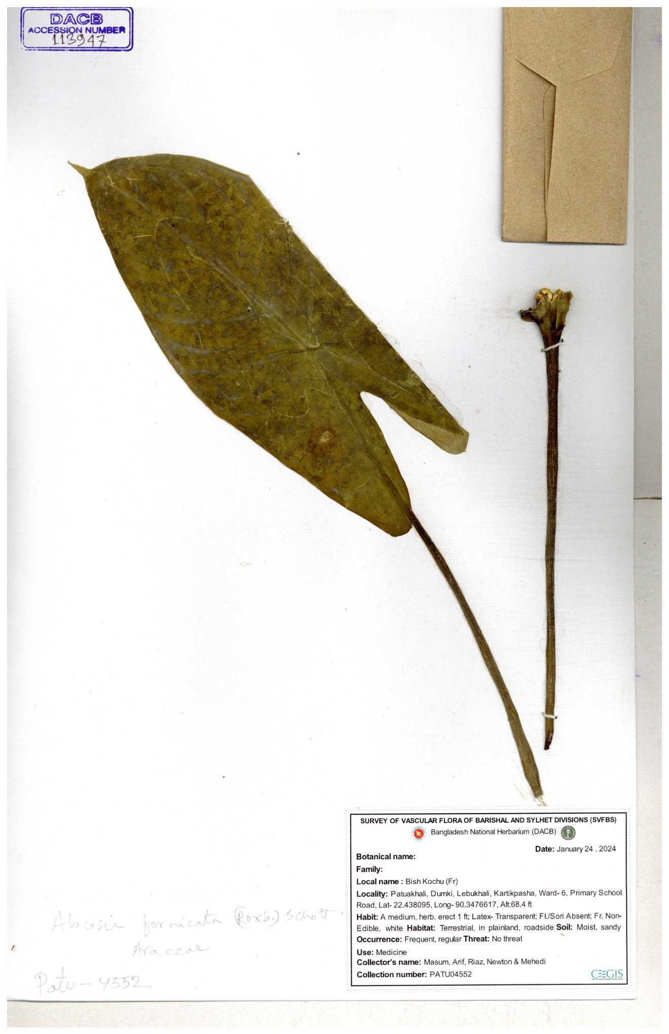 | 4331 | Araceae | Alocasia acuminata Schott | Huq, Rahman & Mia | H. 2119 08-01-1976 |