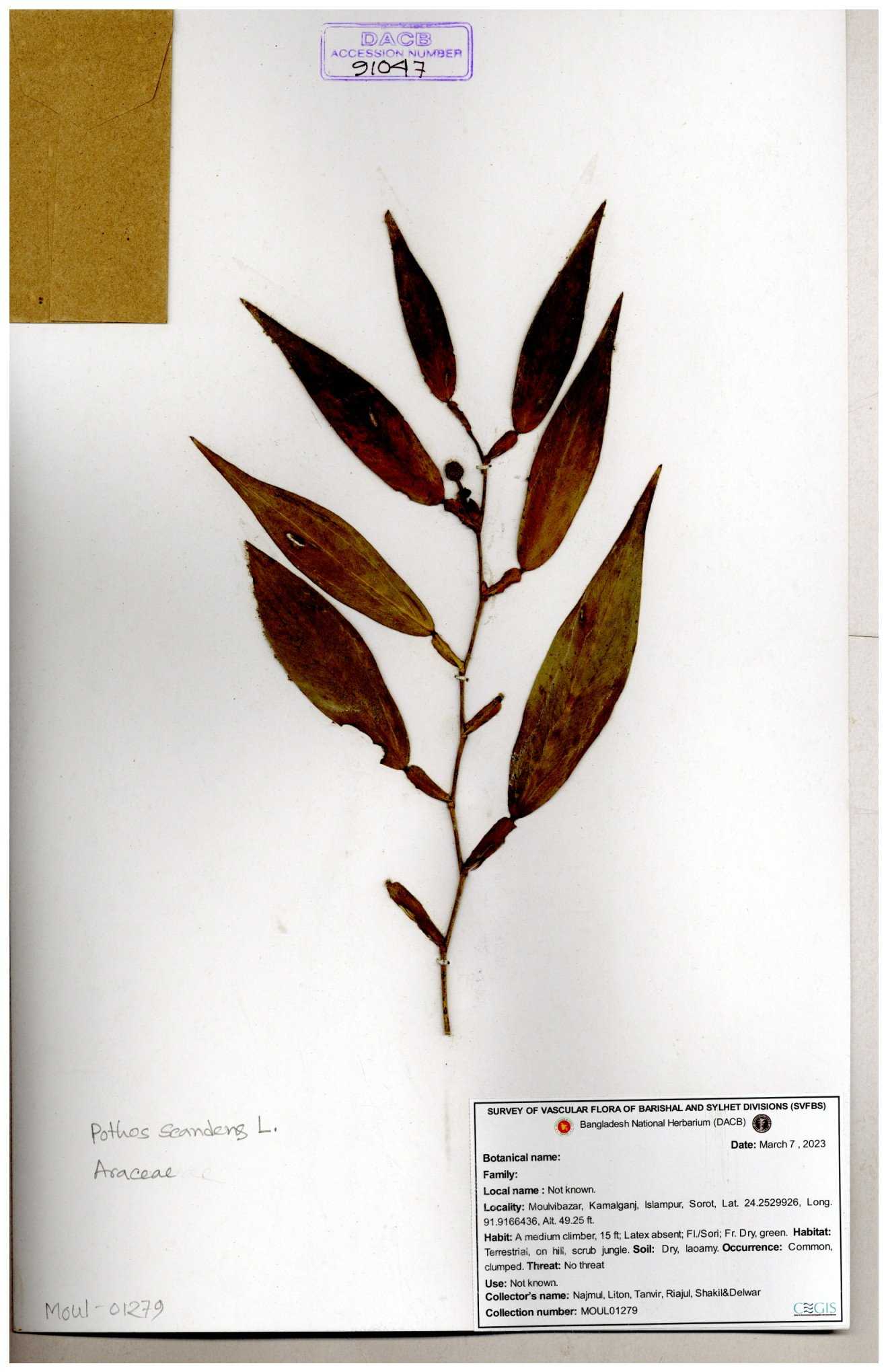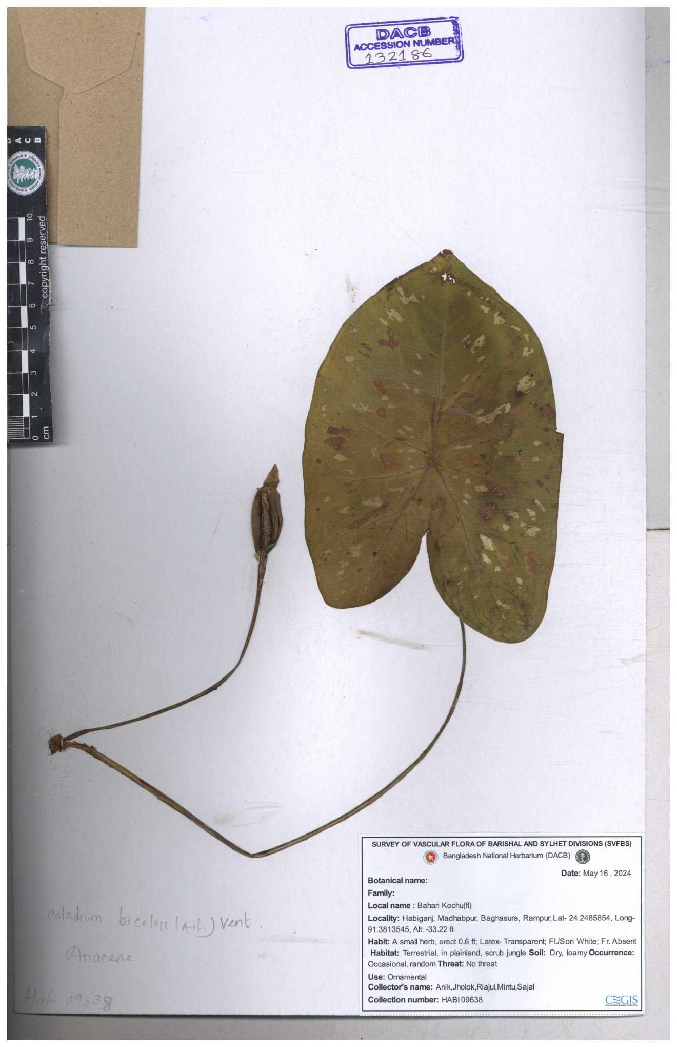 | 62669 | Araceae | Homalomena aromatica (Spreng.) Schott | Dr. M Sultana | DMS-2276 30-11--0001 |
