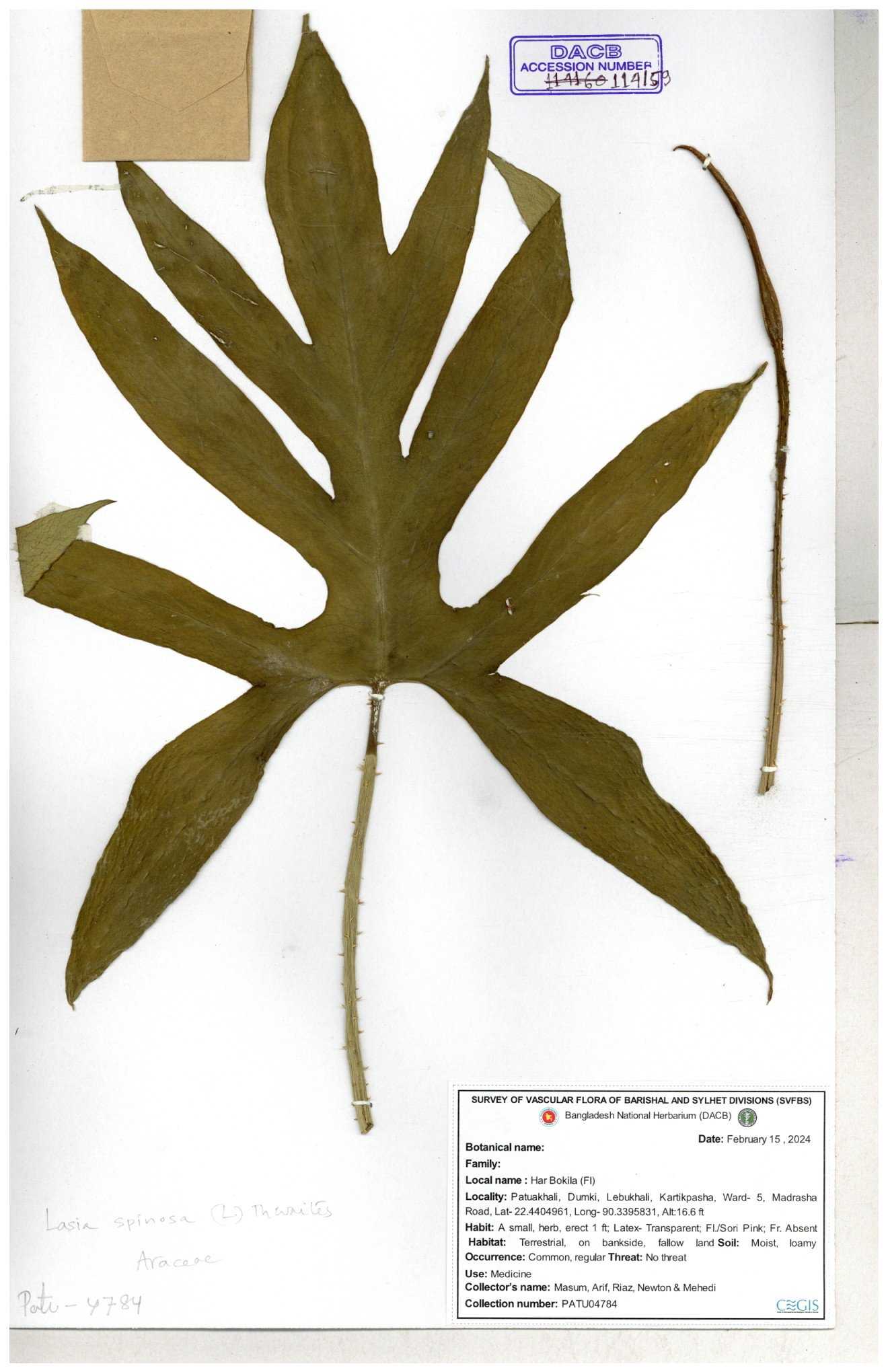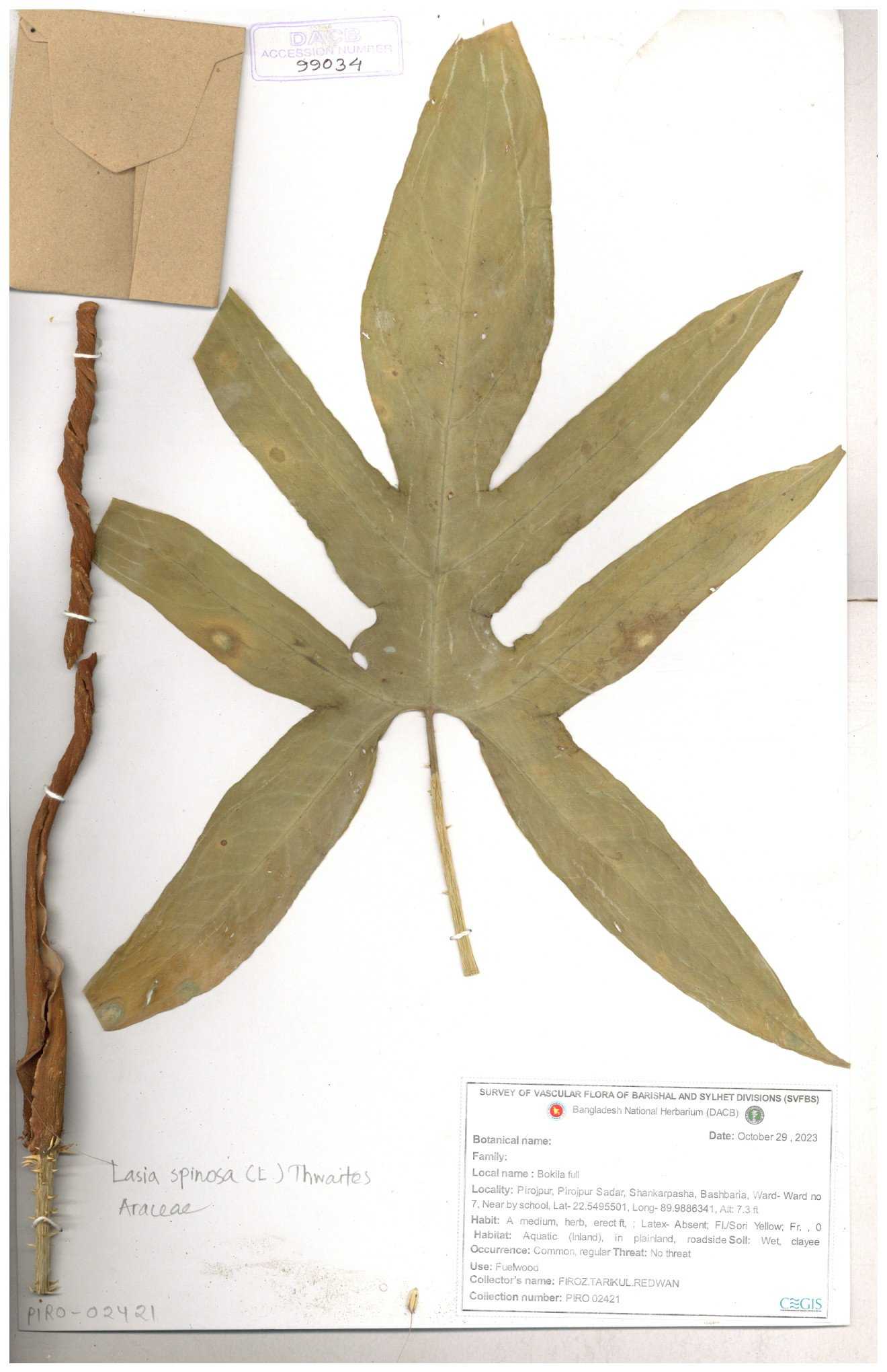 | 132447 | Araceae | Lasia spinosa | 30-11--0001 |