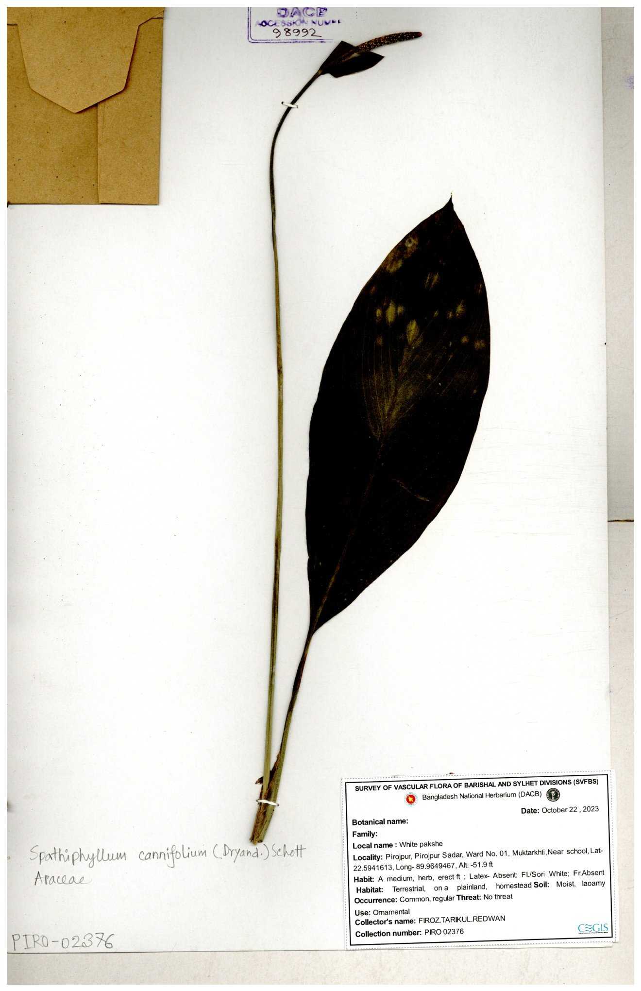 | 80613 | Araceae | Spathiphyllum wallisii | Shuvo chakma | KH-5482 25-04-2017 |