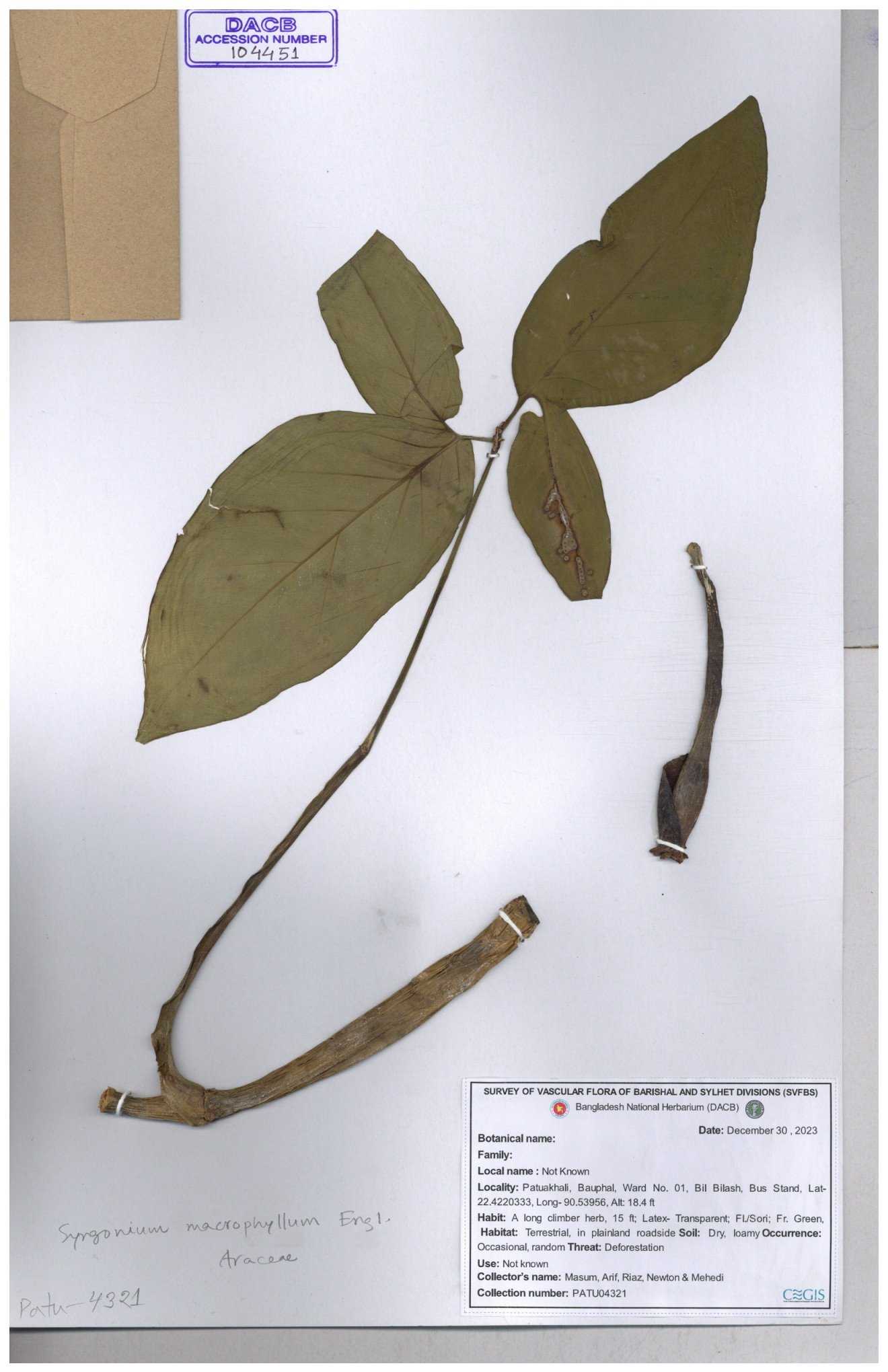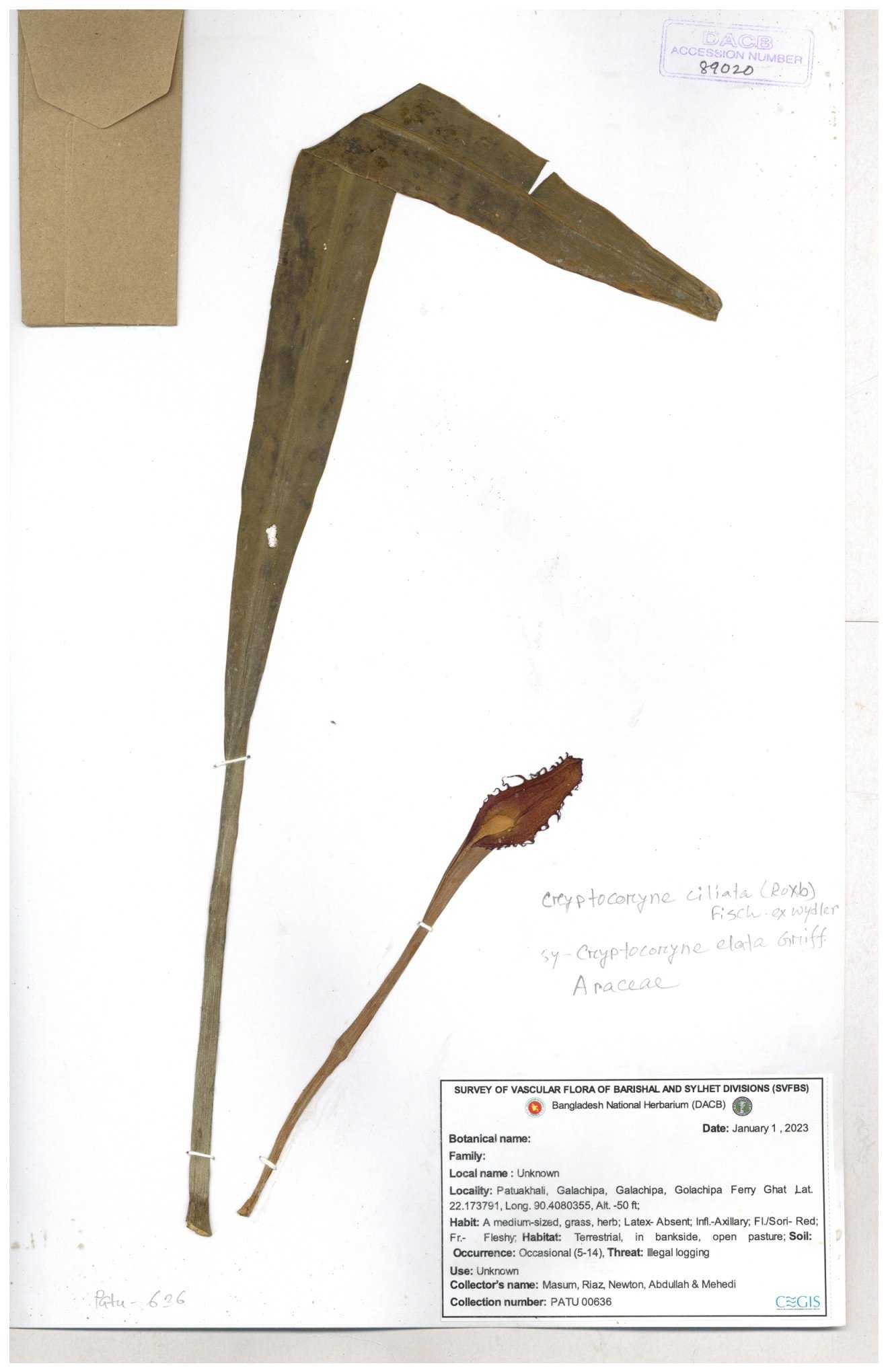 | 62426 | Araceae | Homalomena aromatica (Spreng.) Schott | Niyamul Kabir, Zahid Hasan, Moniruzzaman, Mehedi Hasan | NK-2320 30-11--0001 |