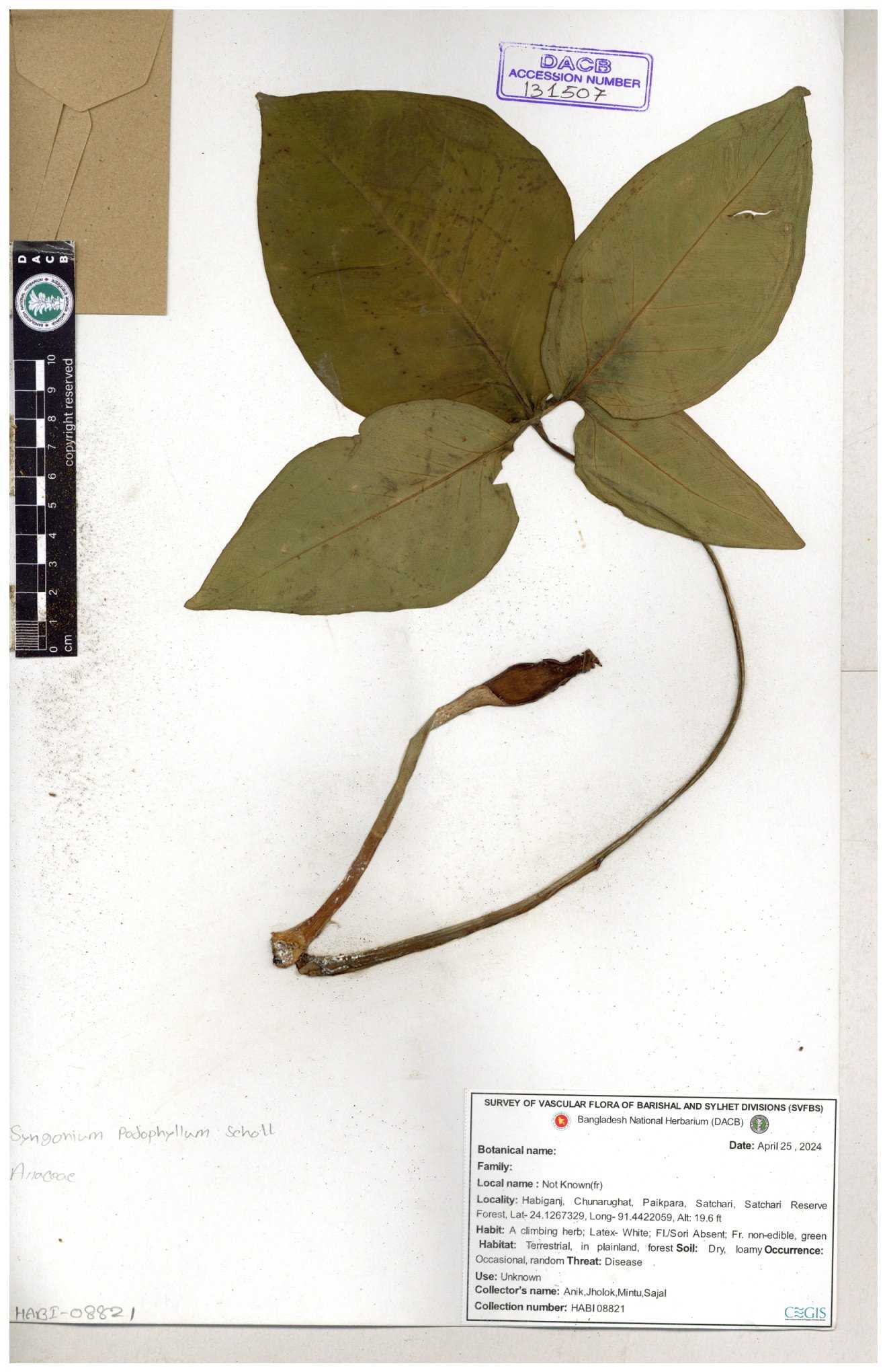 | 4427 | Araceae | Typhonium trilobatum (L.) Schott | A.M. Huq | 3353 03-05-1977 |