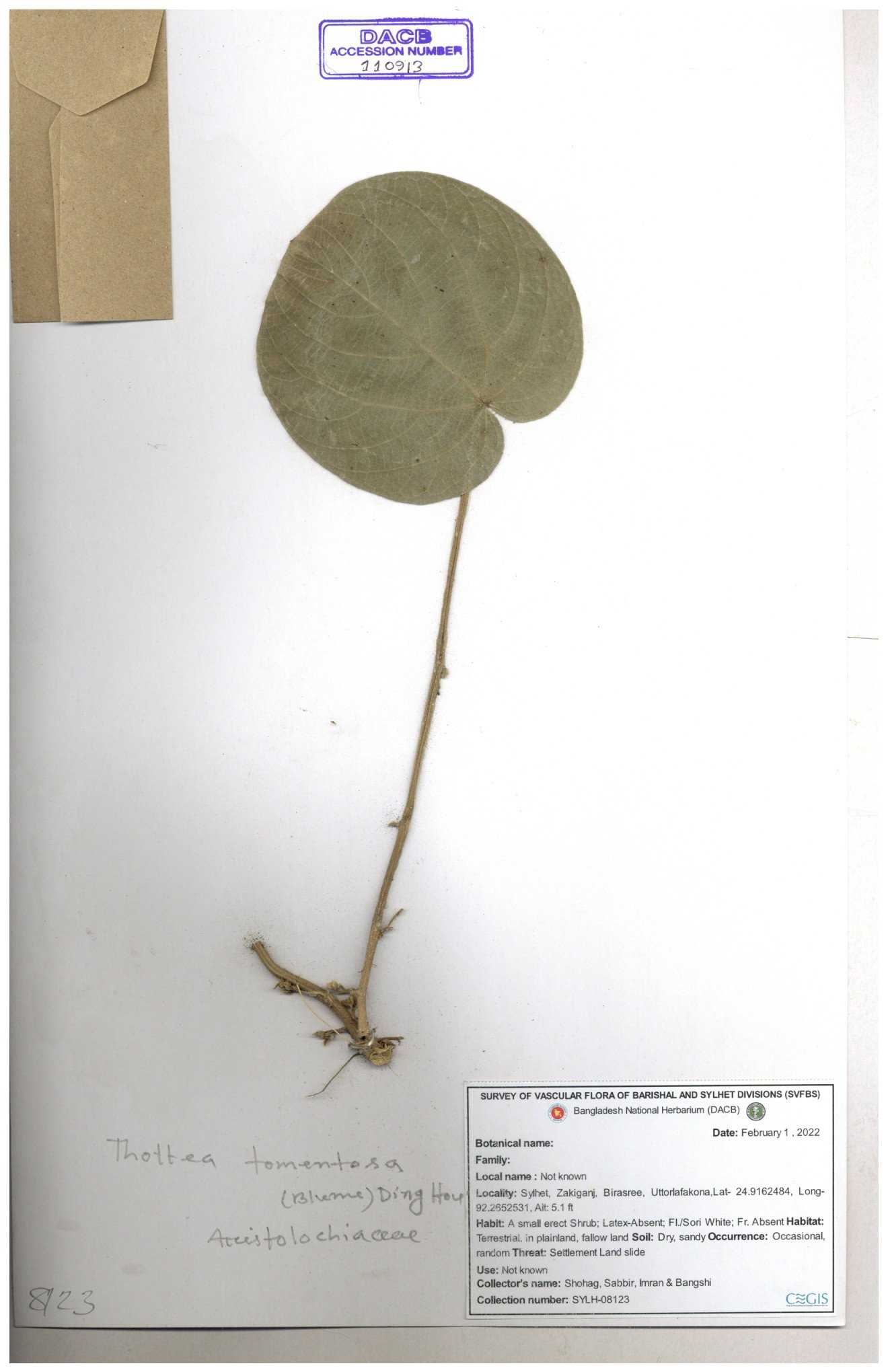 | 60513 | Aristolochiaceae | Thottea tomentosa (Blume) Ding Hou | Khandakar Kamrul Islam | KKI-3338 30-11--0001 |