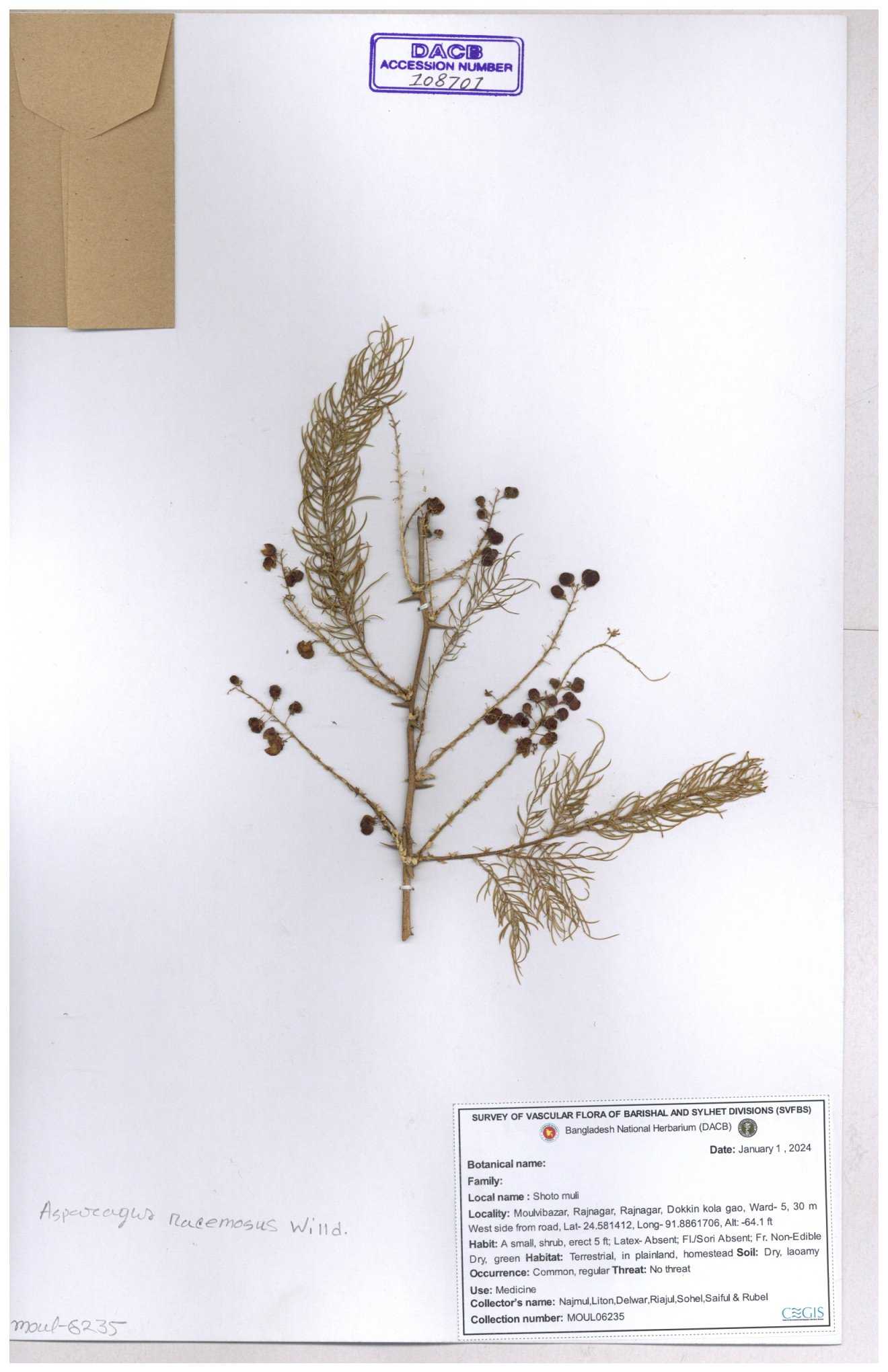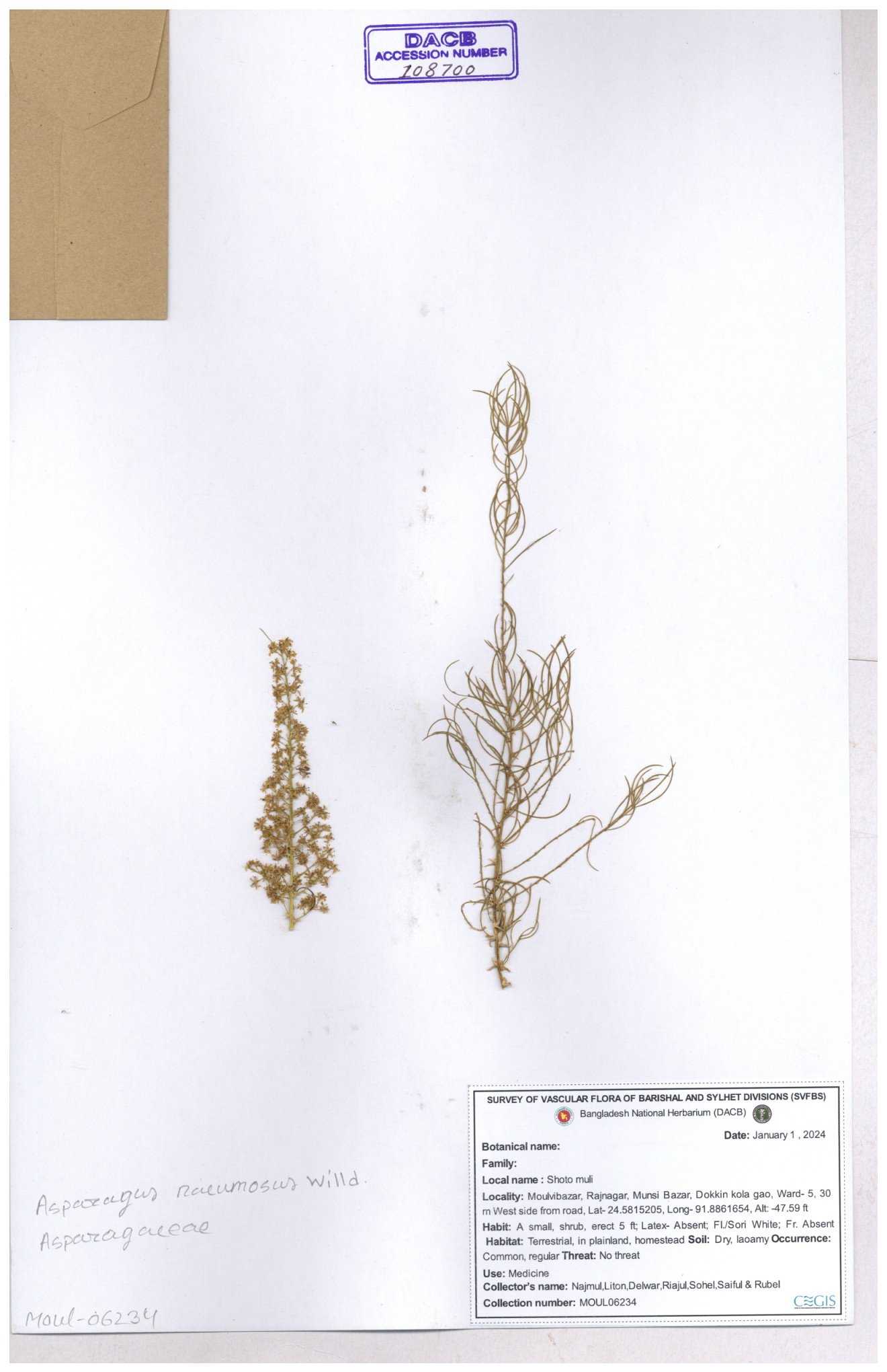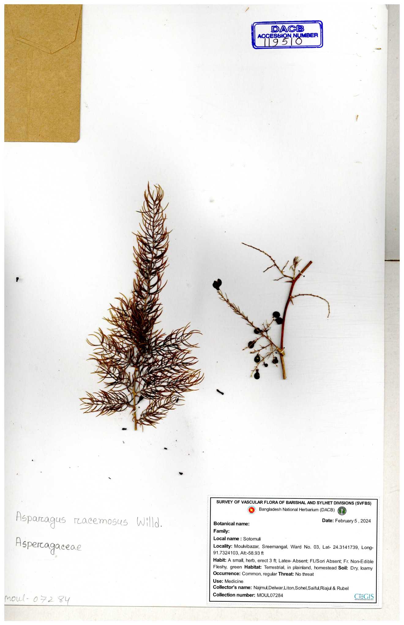 | 119510 | Asparagaceae | Asparagus racemosus | 30-11--0001 |