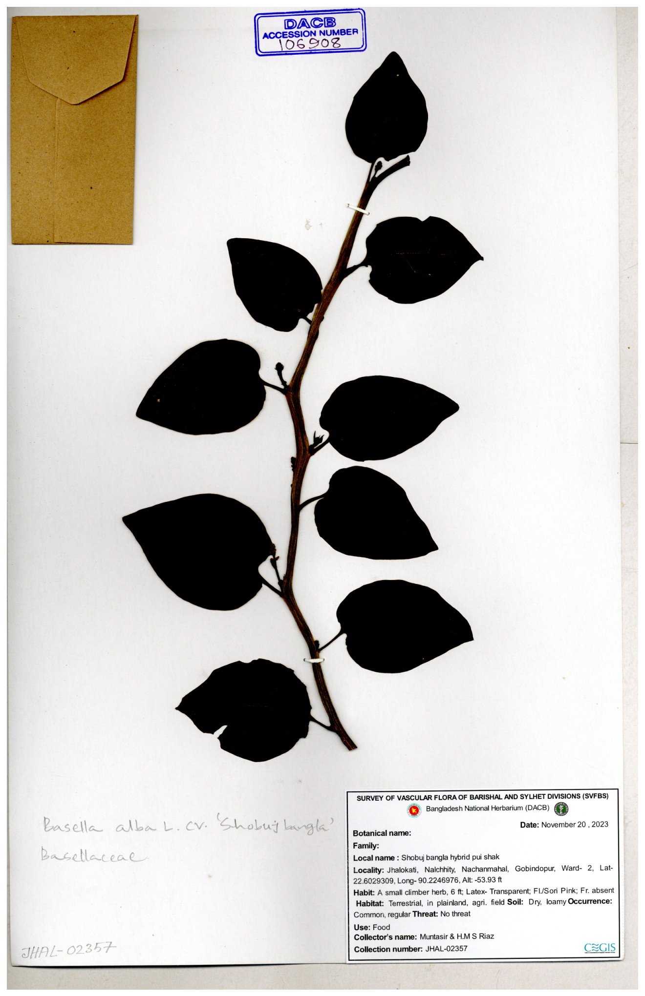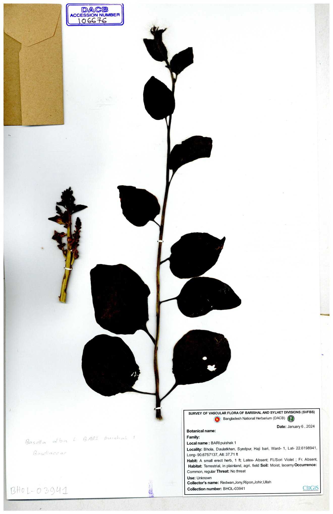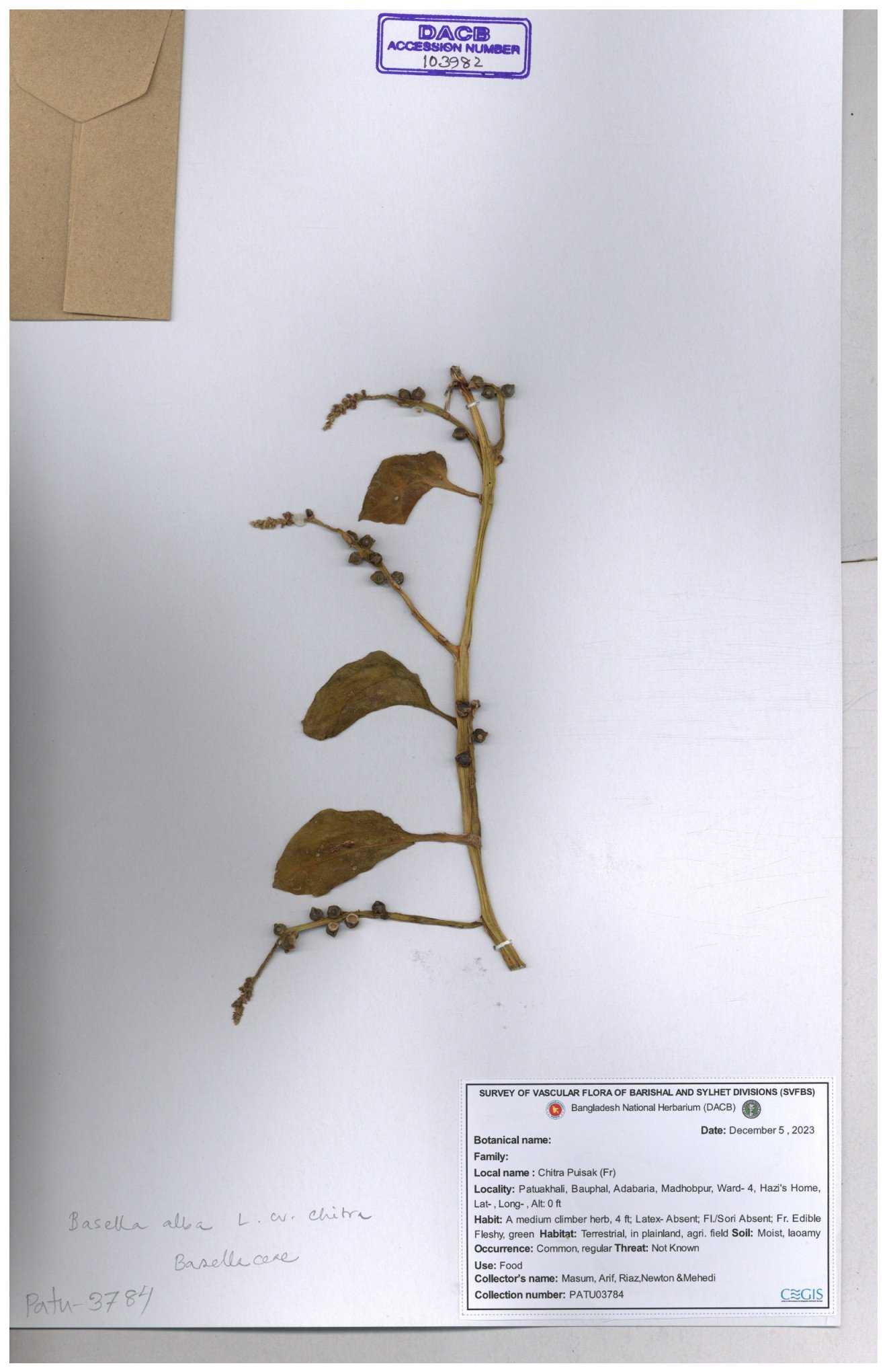 | 65923 | Basellaceae | Basella alba L. | Dr. Md. Sheninul Haque Khan | SHK- 10-10-2021 |