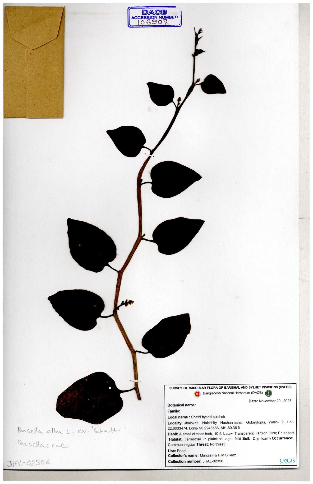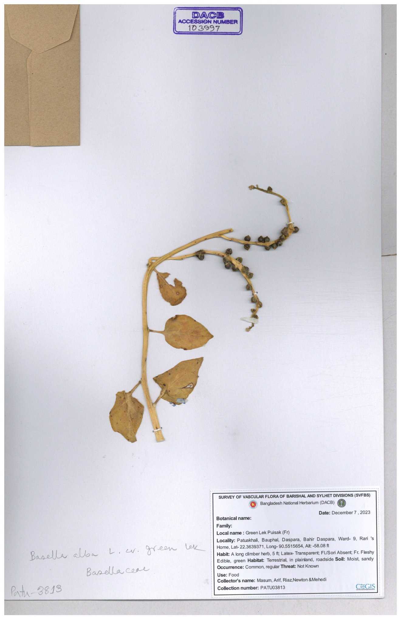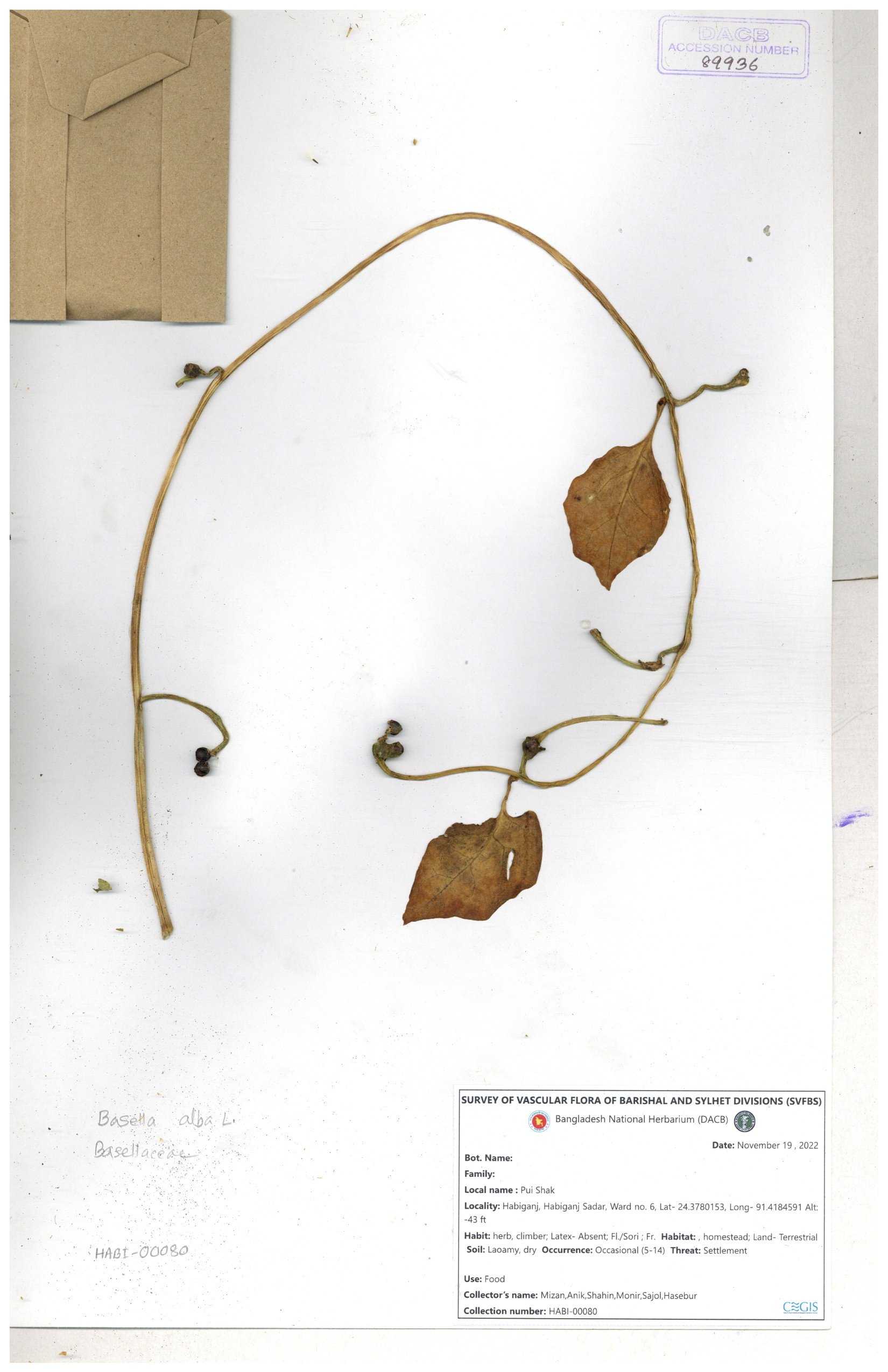 | 65923 | Basellaceae | Basella alba L. | Dr. Md. Sheninul Haque Khan | SHK- 10-10-2021 |