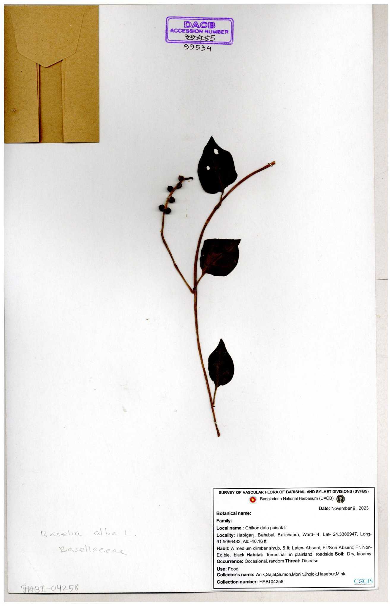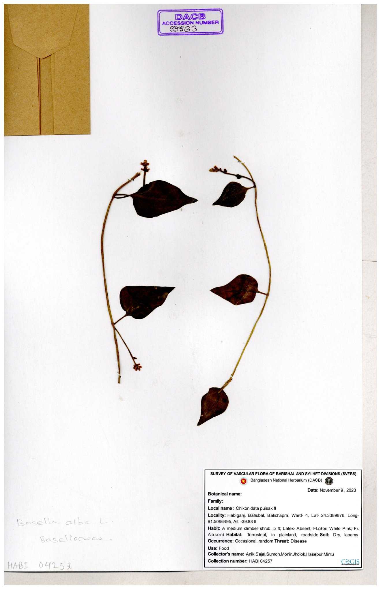 | 99534 | Basellaceae | Basella alba | 30-11--0001 |