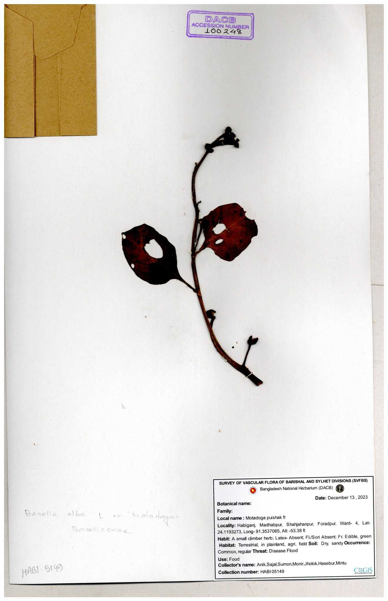 | 104198 | Basellaceae | Basella sp | 30-11--0001 |
