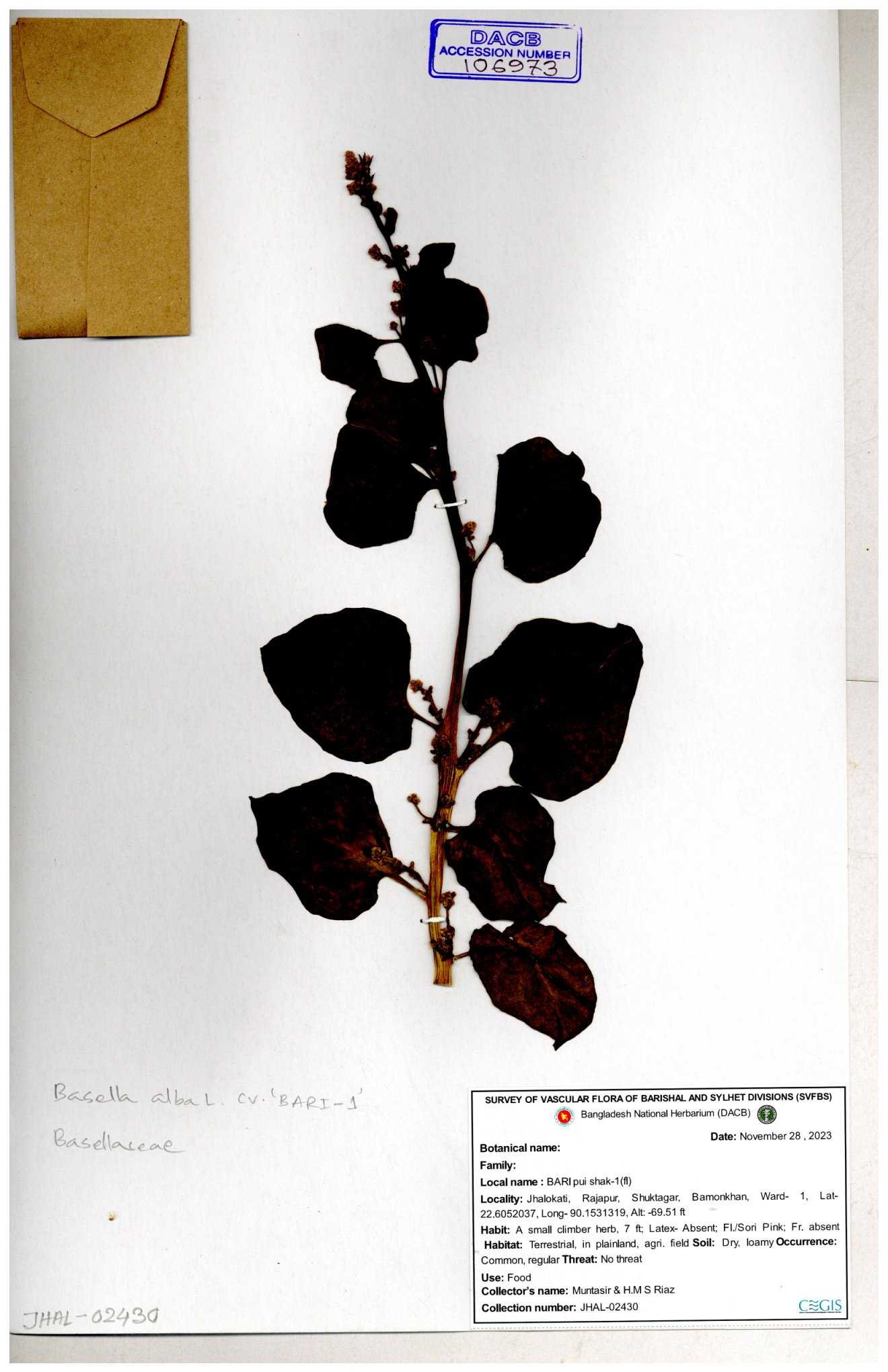 | 102987 | Basellaceae | Basella alba | 30-11--0001 |