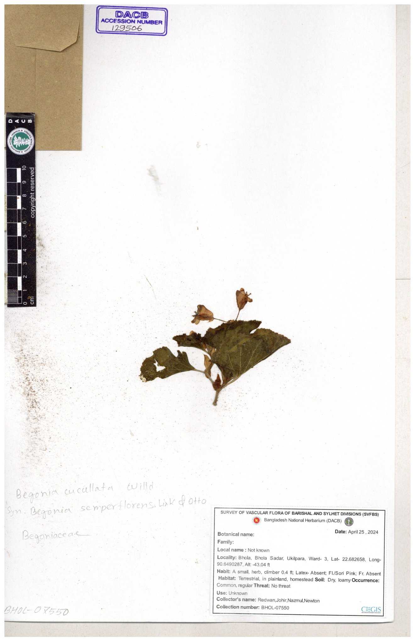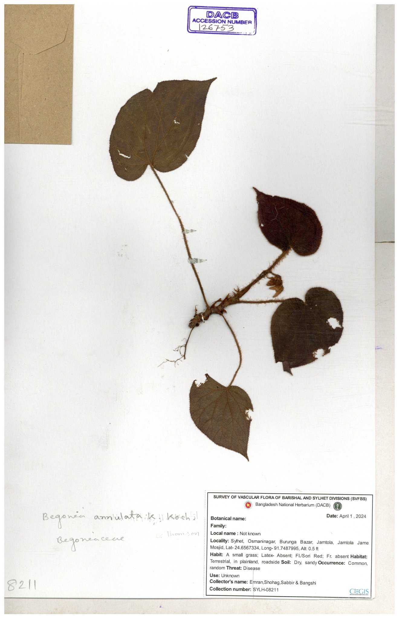 | 67551 | Begoniaceae | Begonia barbata Wall. | I Hossen et al | IH-3539 24-01-2017 |