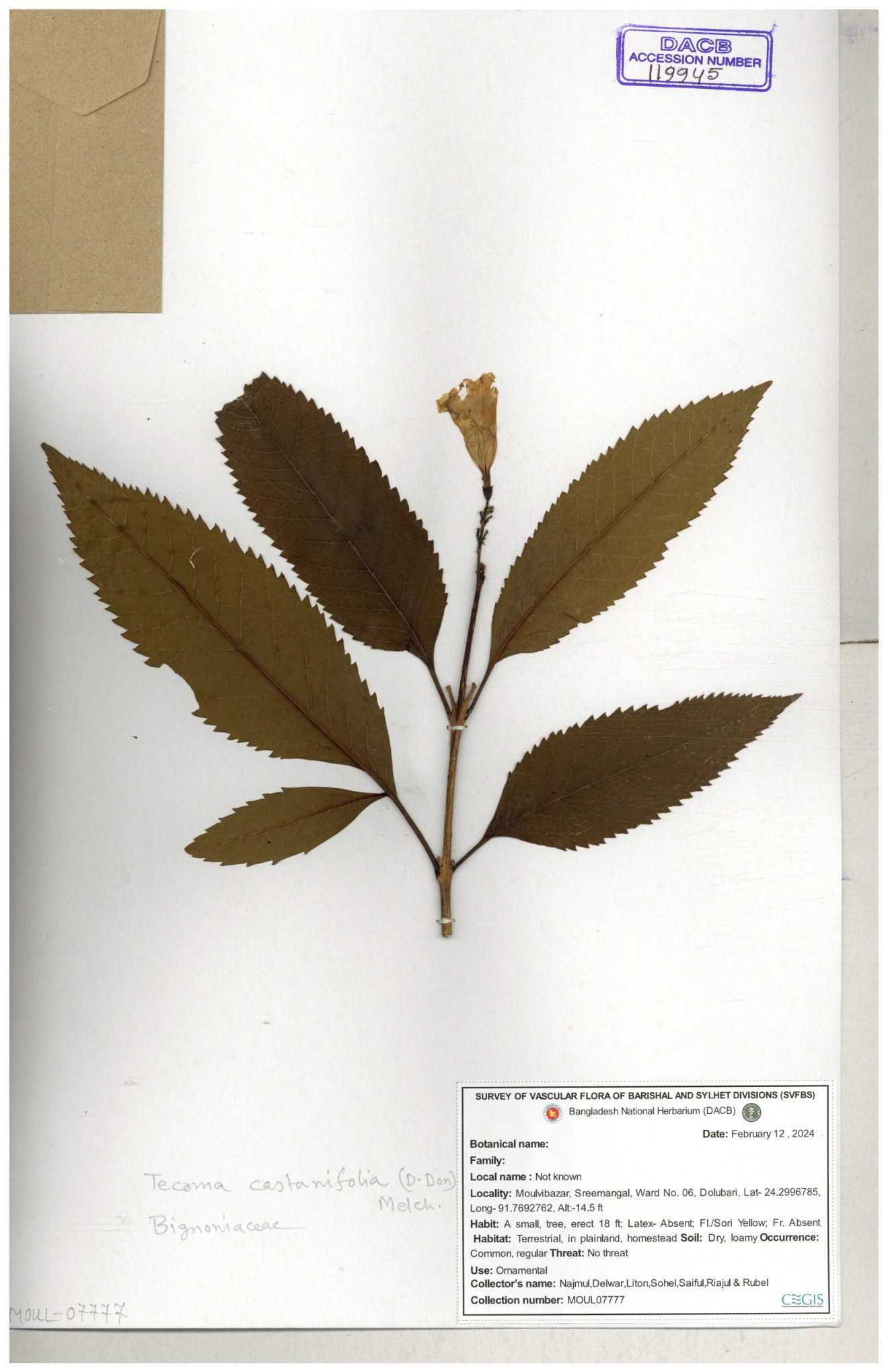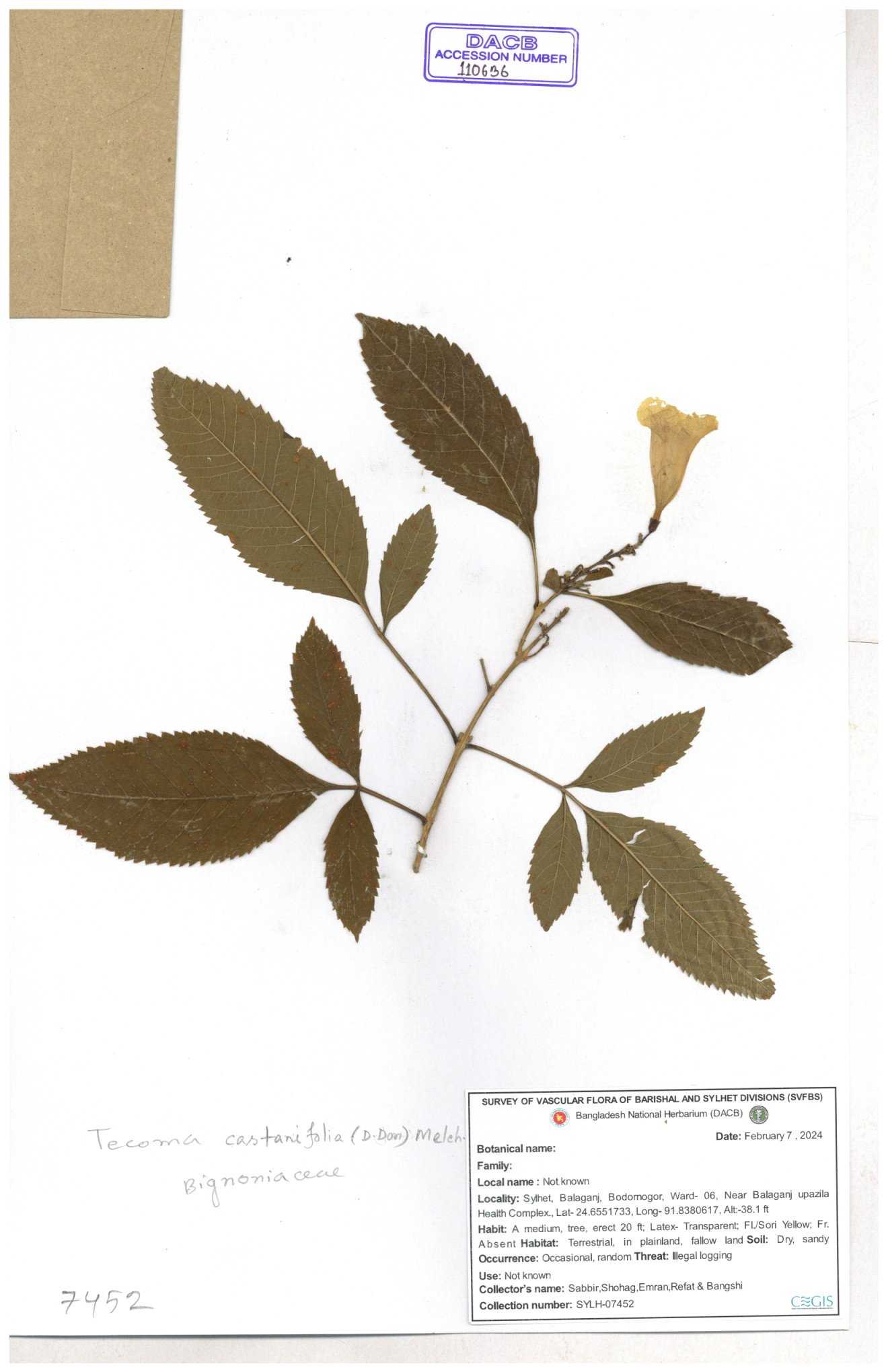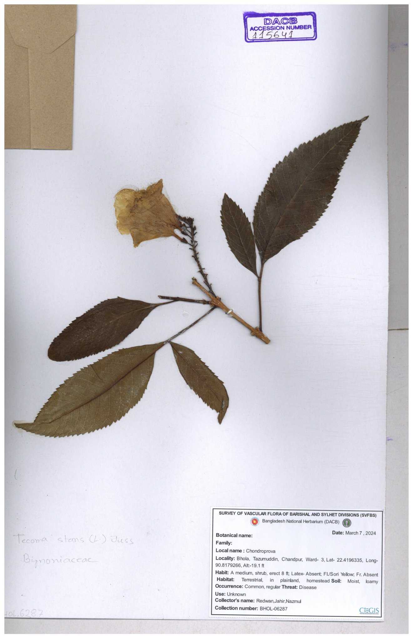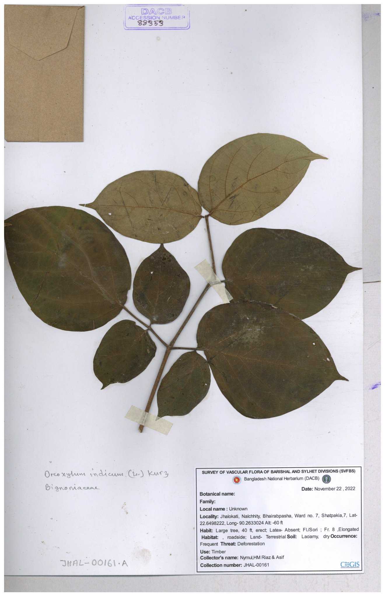 | 65924 | Bignoniaceae | Tecona tans L. | Khandakar Kamrul Islam | KKI-4092 12-03-2020 |