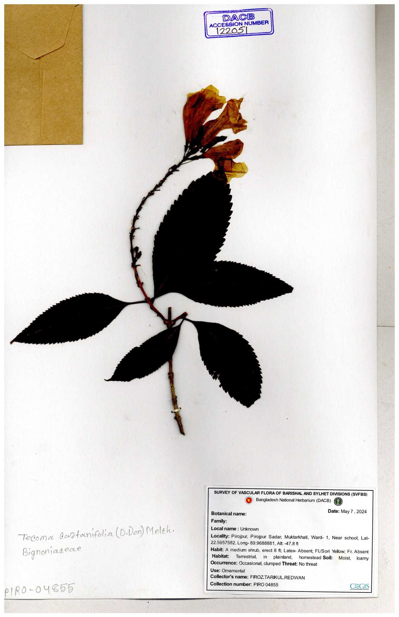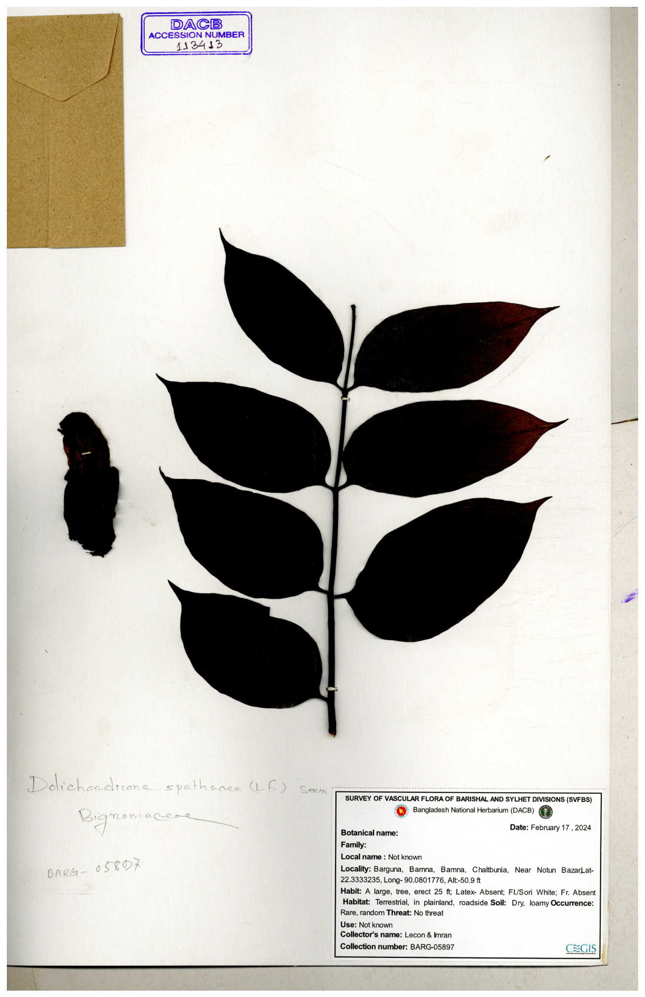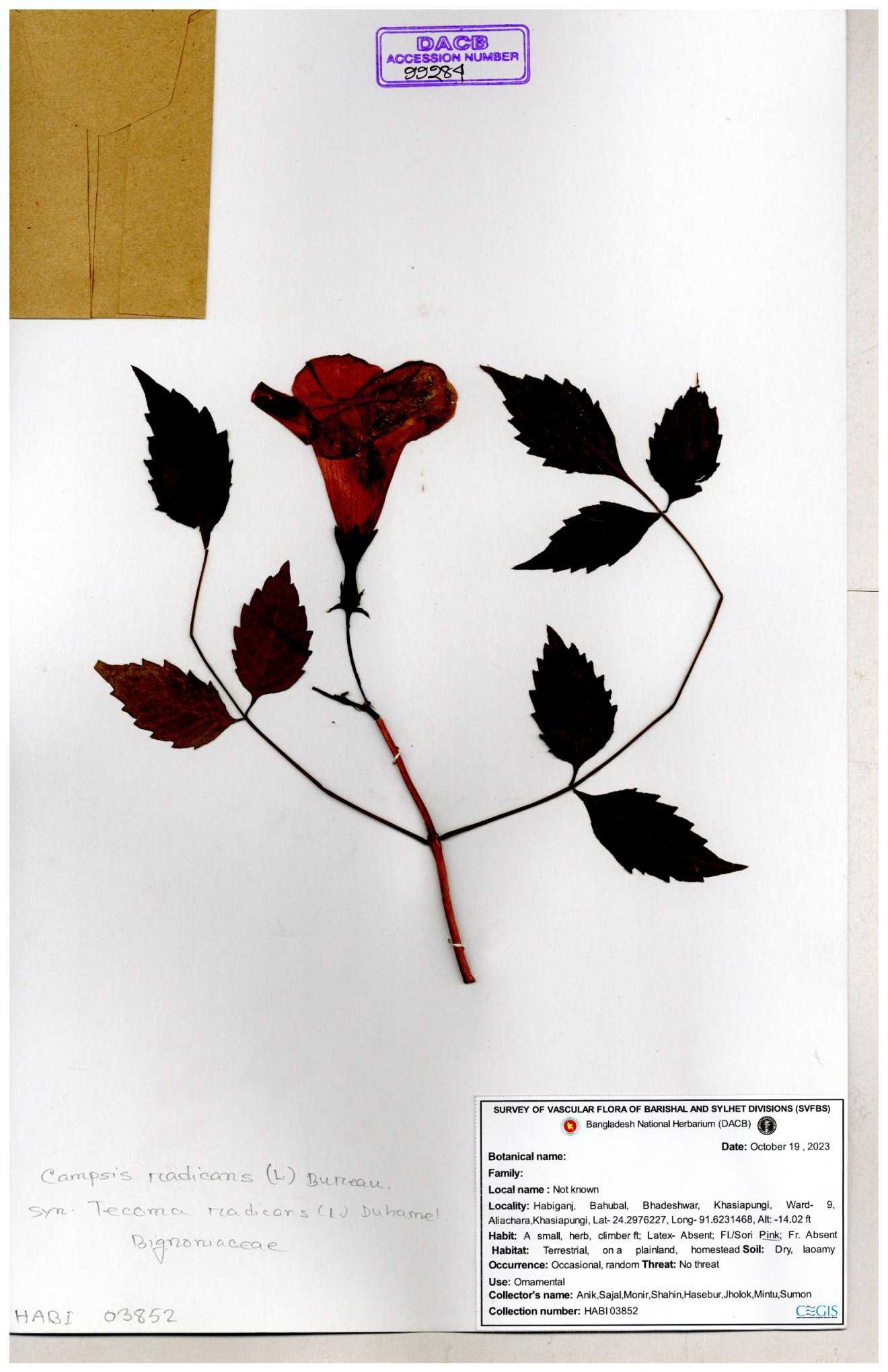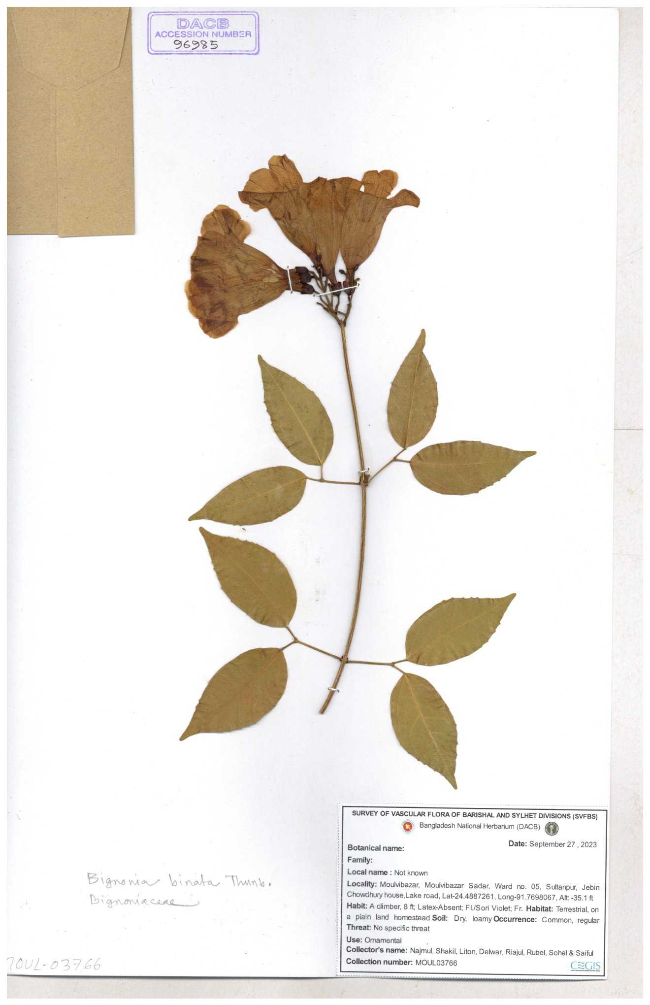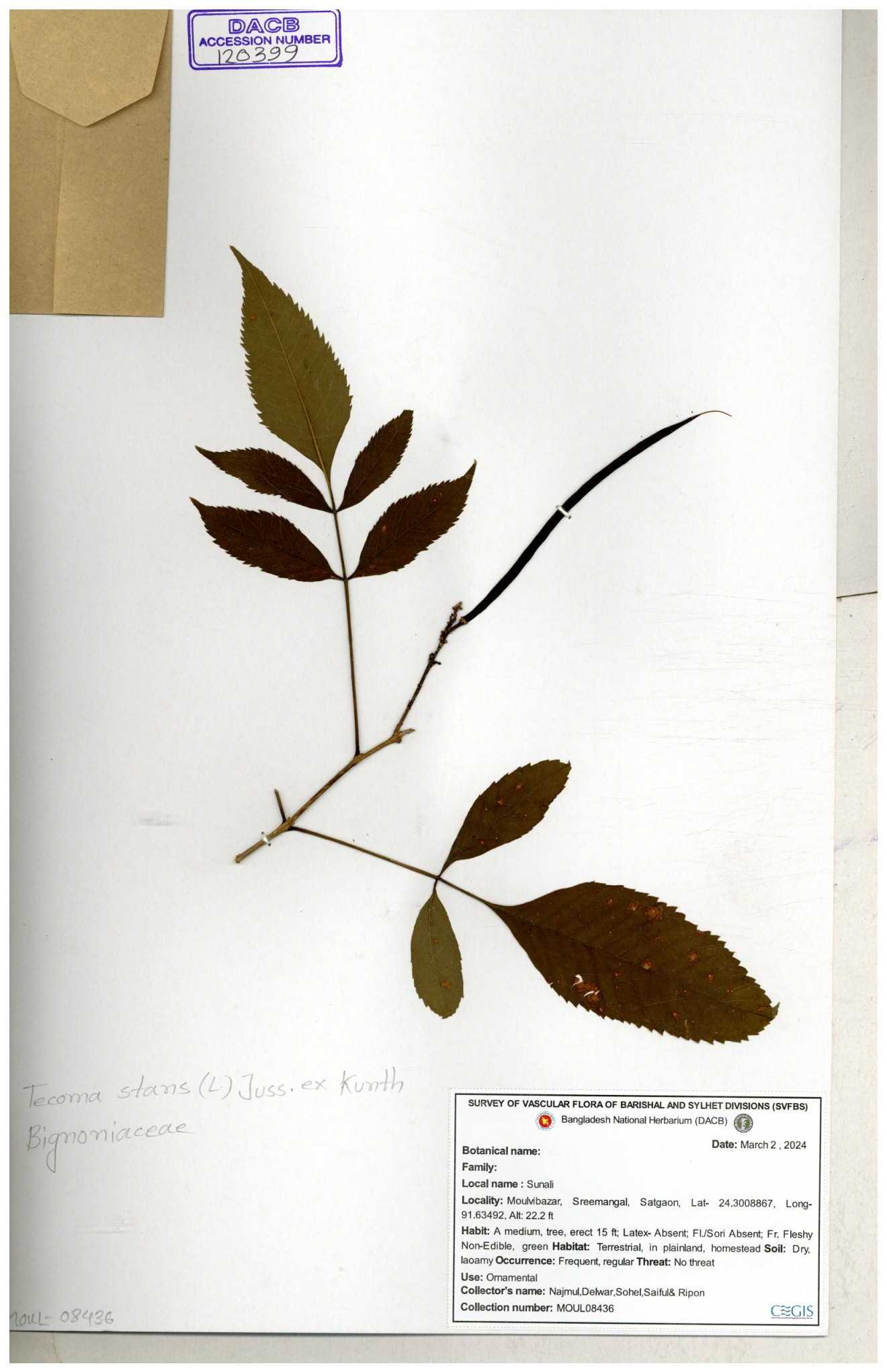 | 65924 | Bignoniaceae | Tecona tans L. | Khandakar Kamrul Islam | KKI-4092 12-03-2020 |
