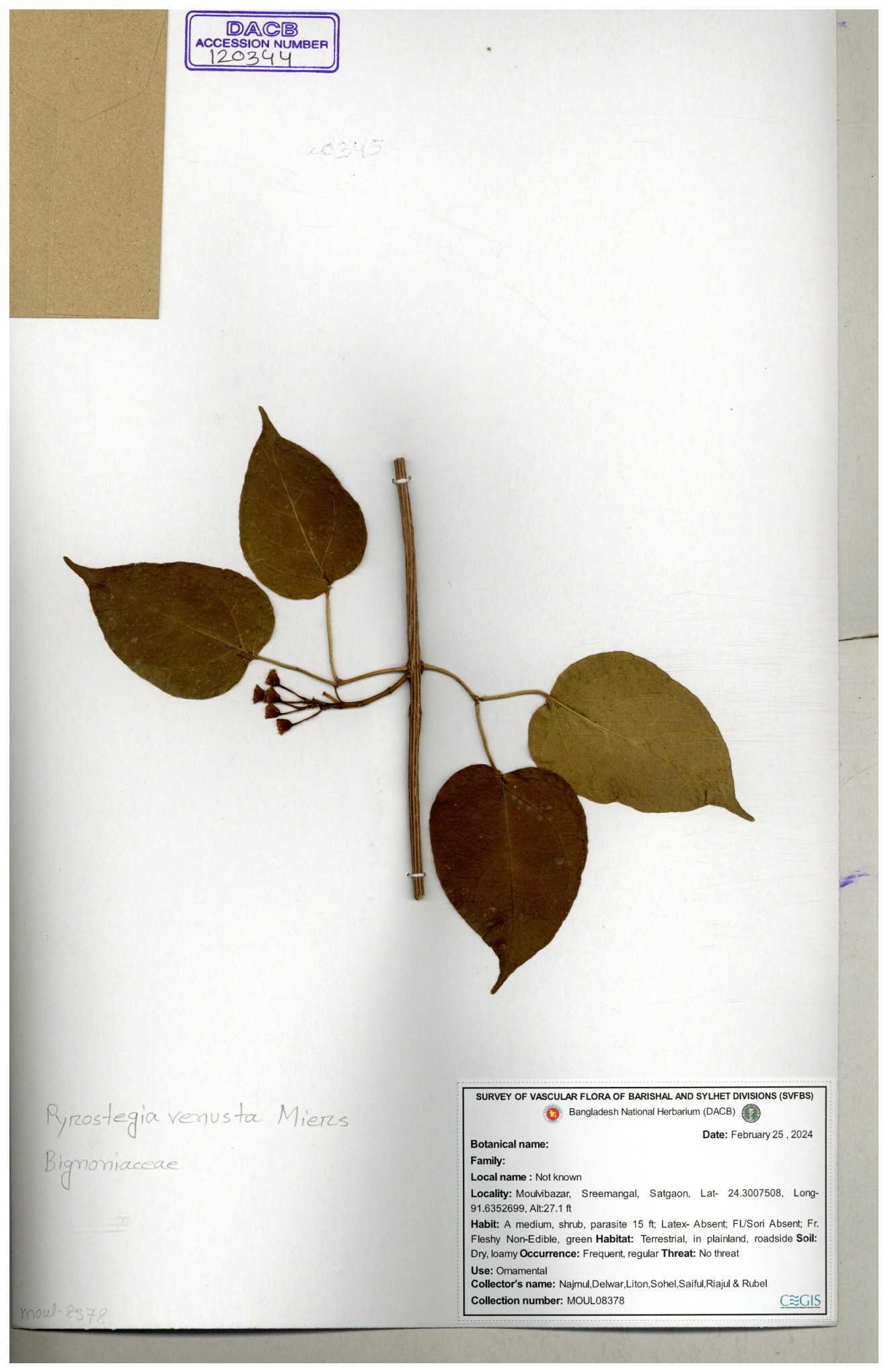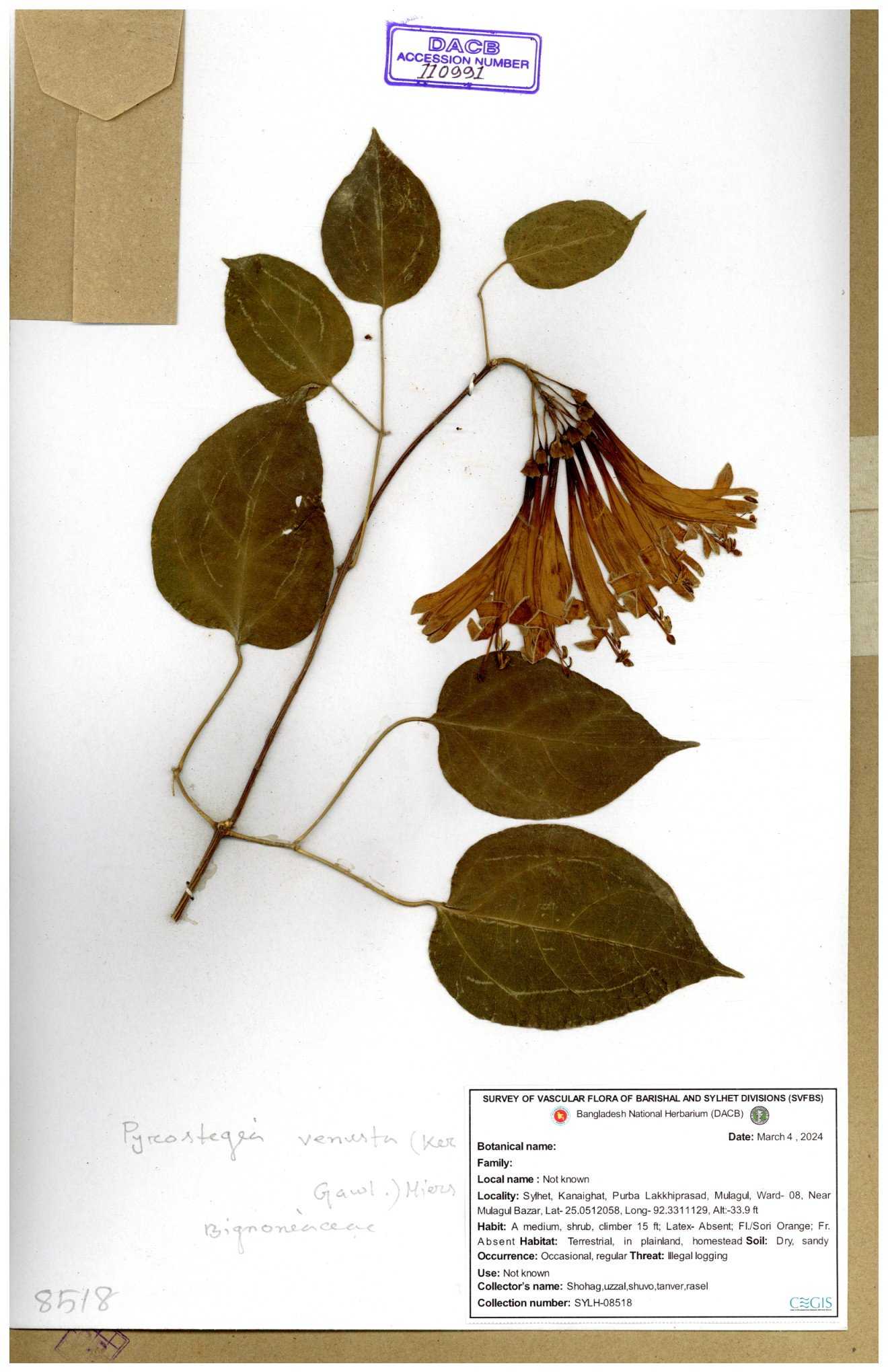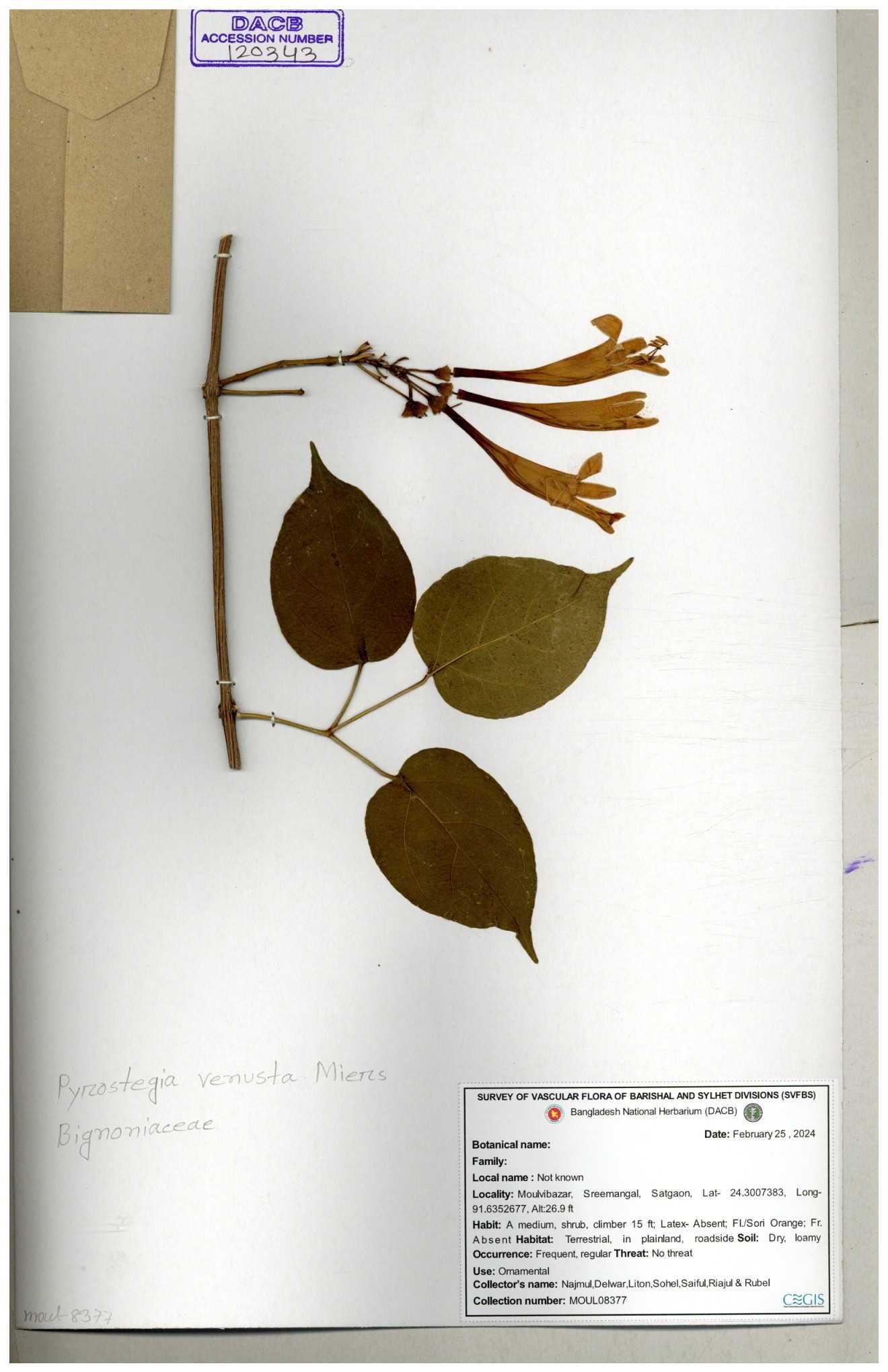 | 120343 | Bignoniaceae | Pyrostegia venusta | 30-11--0001 |