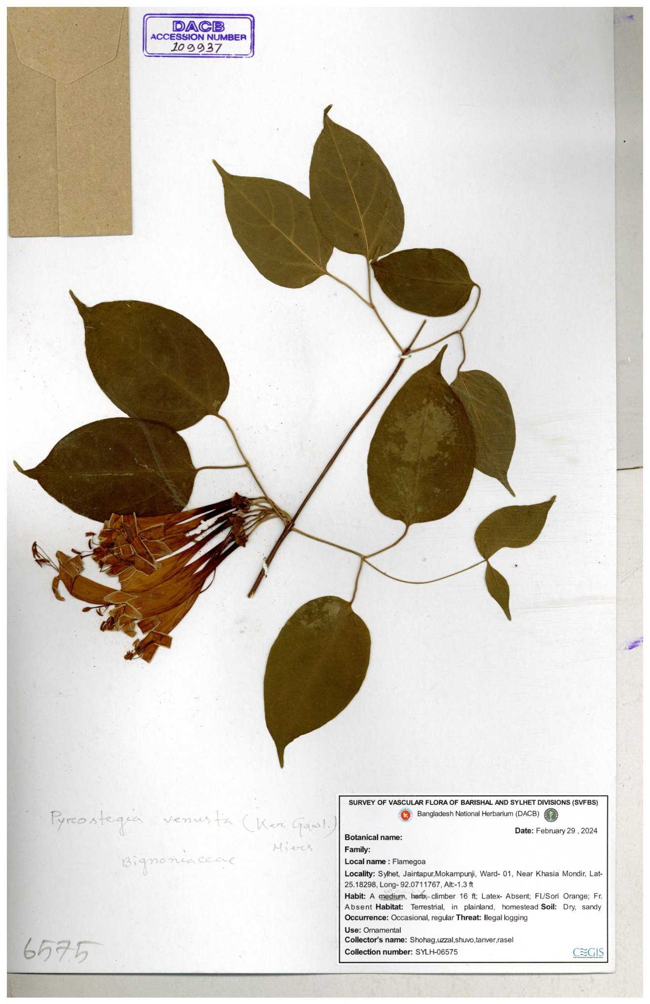 | 109937 | Bignoniaceae | Pyrostegia venusta | 30-11--0001 |