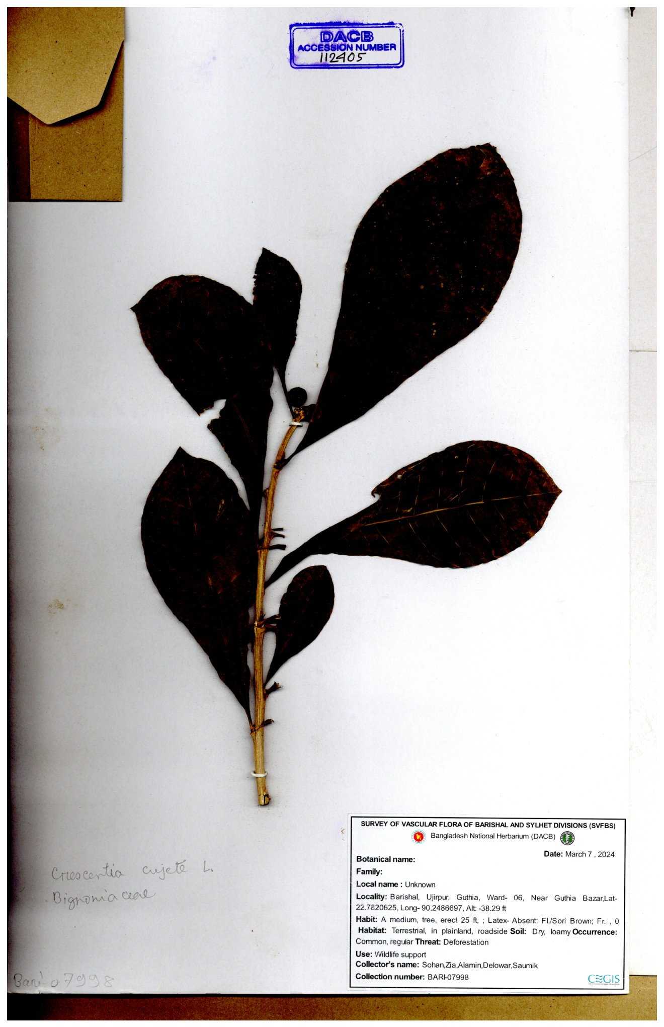 | 21189 | Bignoniaceae | Crescentia alata | 30-11--0001 |