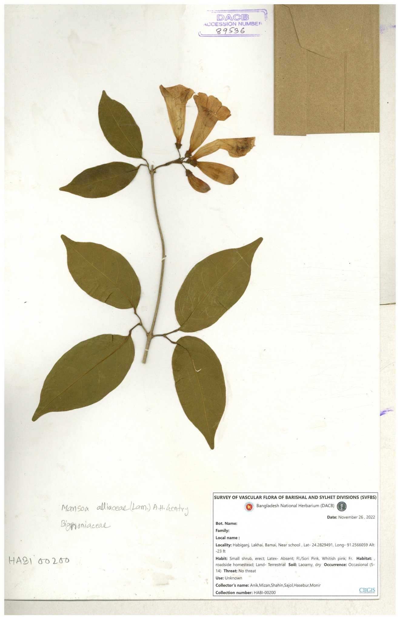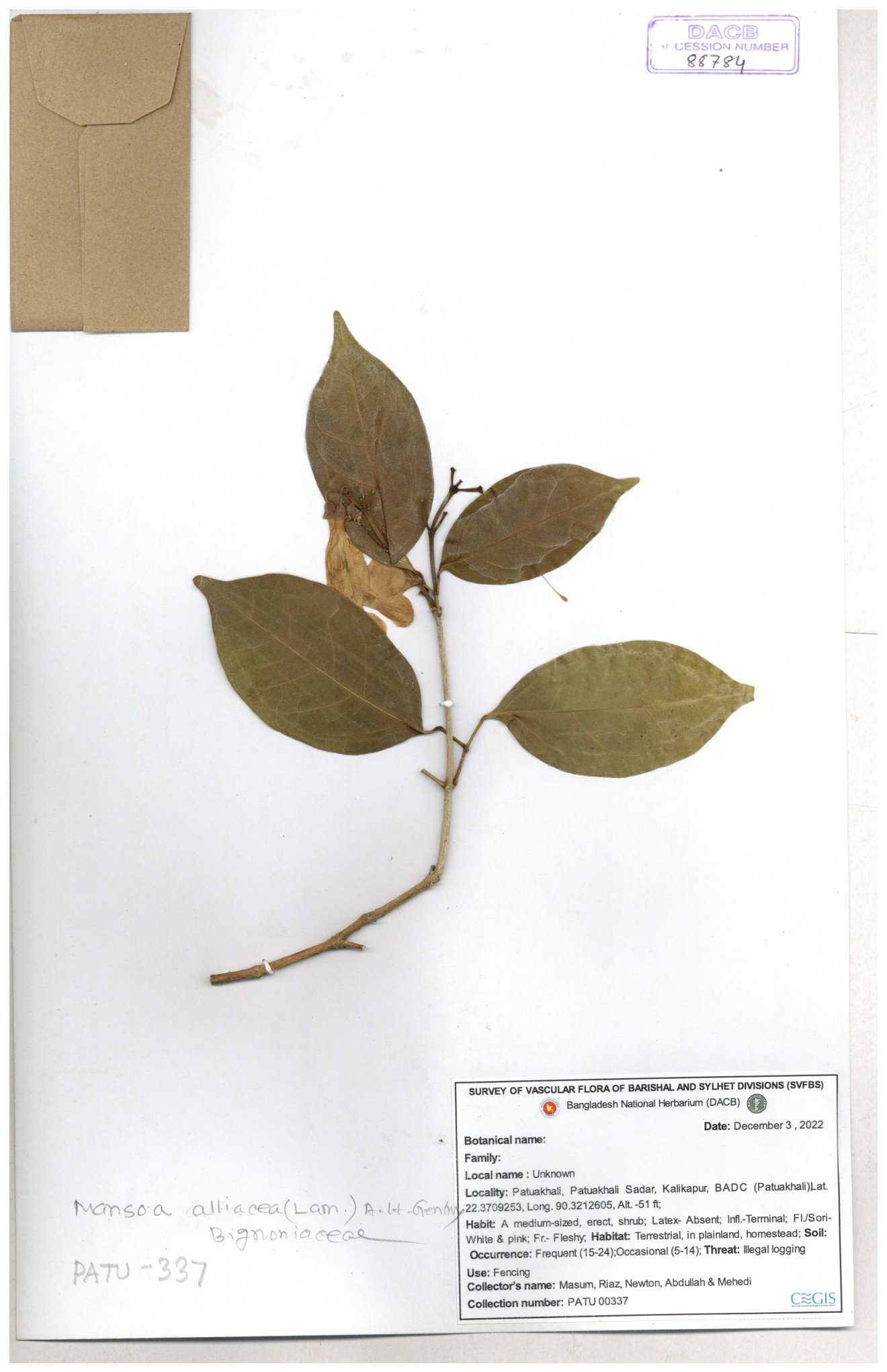 | 88784 | Bignoniaceae | Mansoa alliacea | 30-11--0001 |