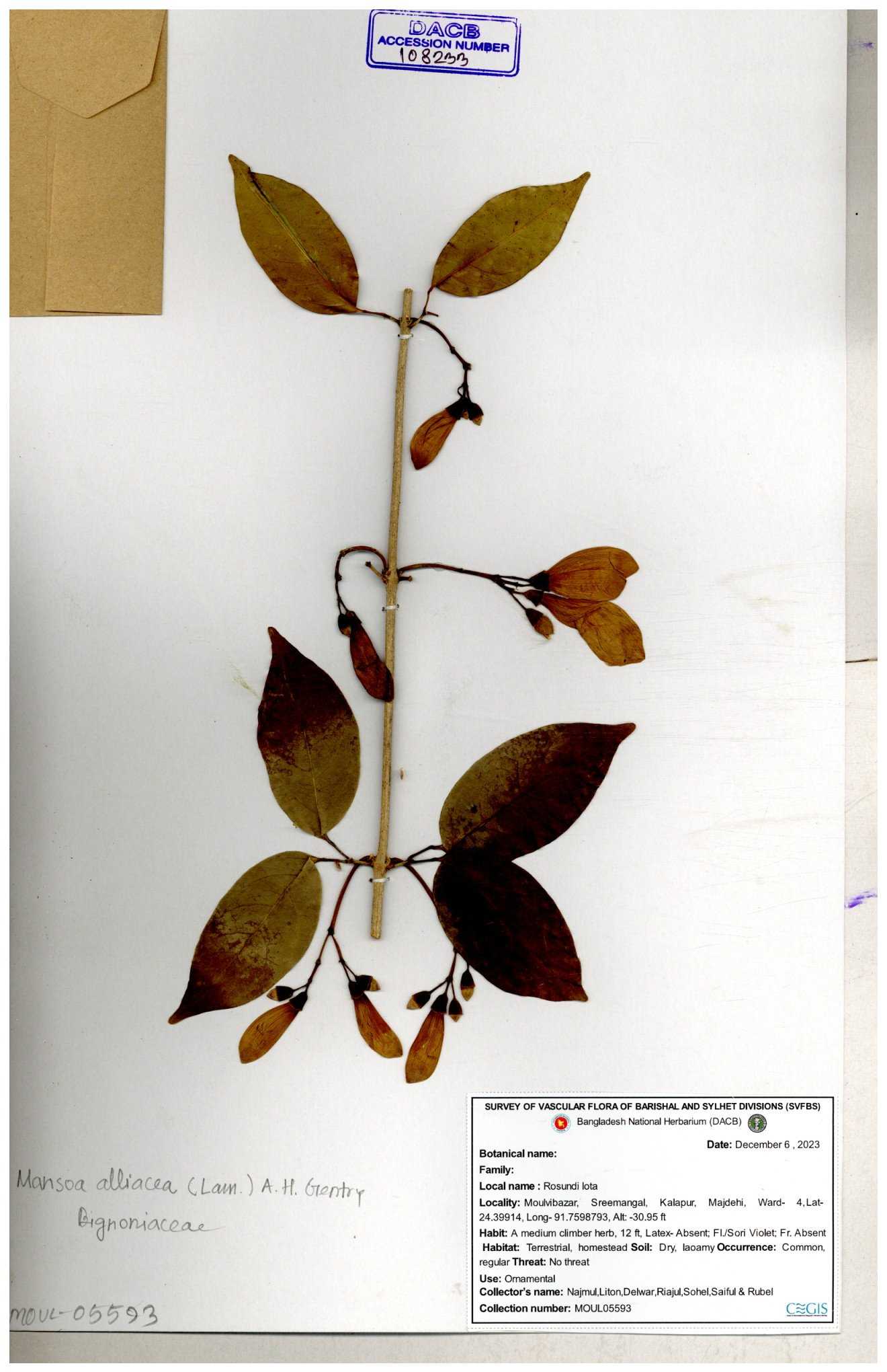 | 108233 | Bignoniaceae | Mansoa alliacea | 30-11--0001 |
