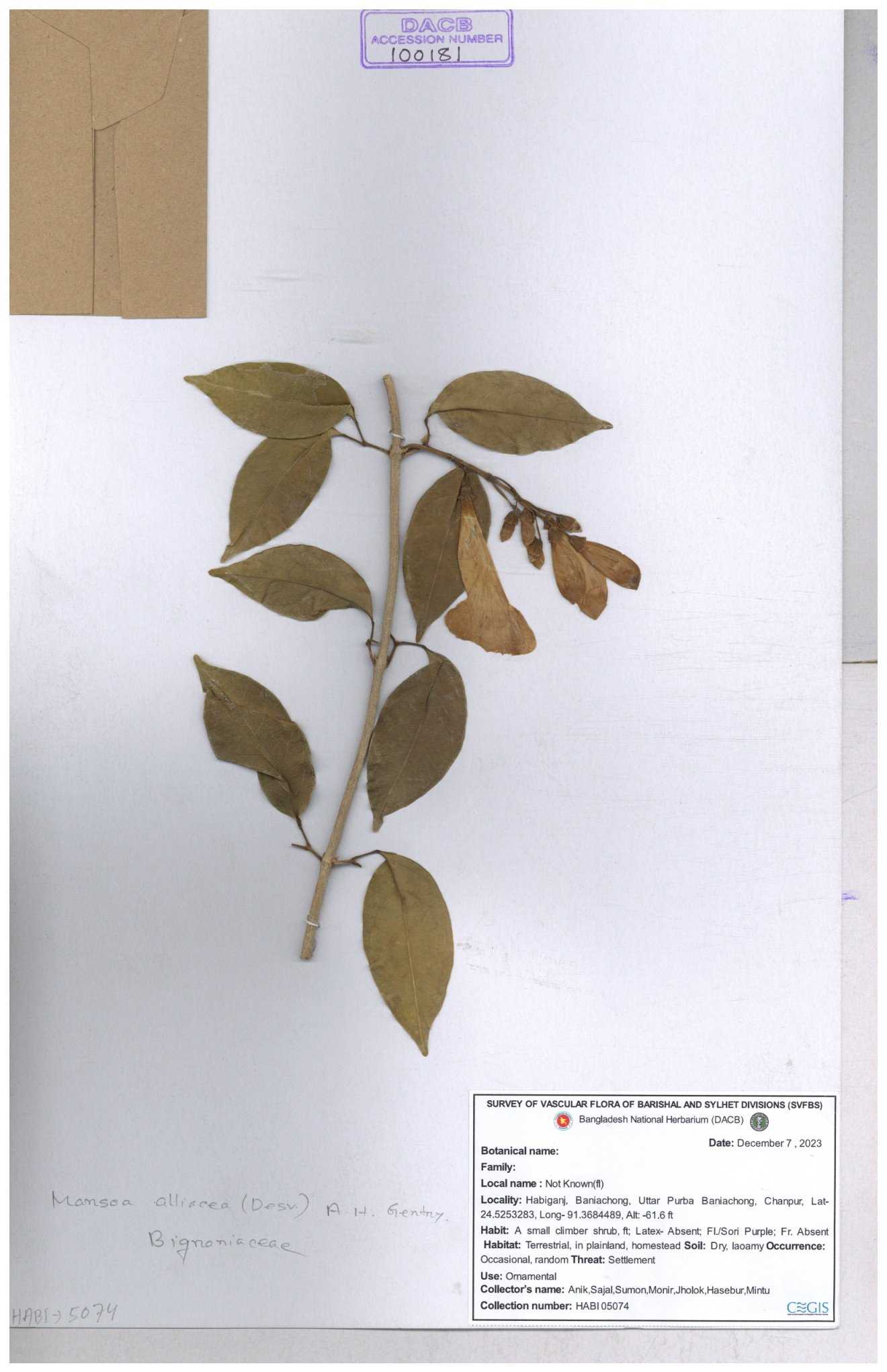 | 39787 | Bignoniaceae | Mansoa alliacea | 30-11--0001 |