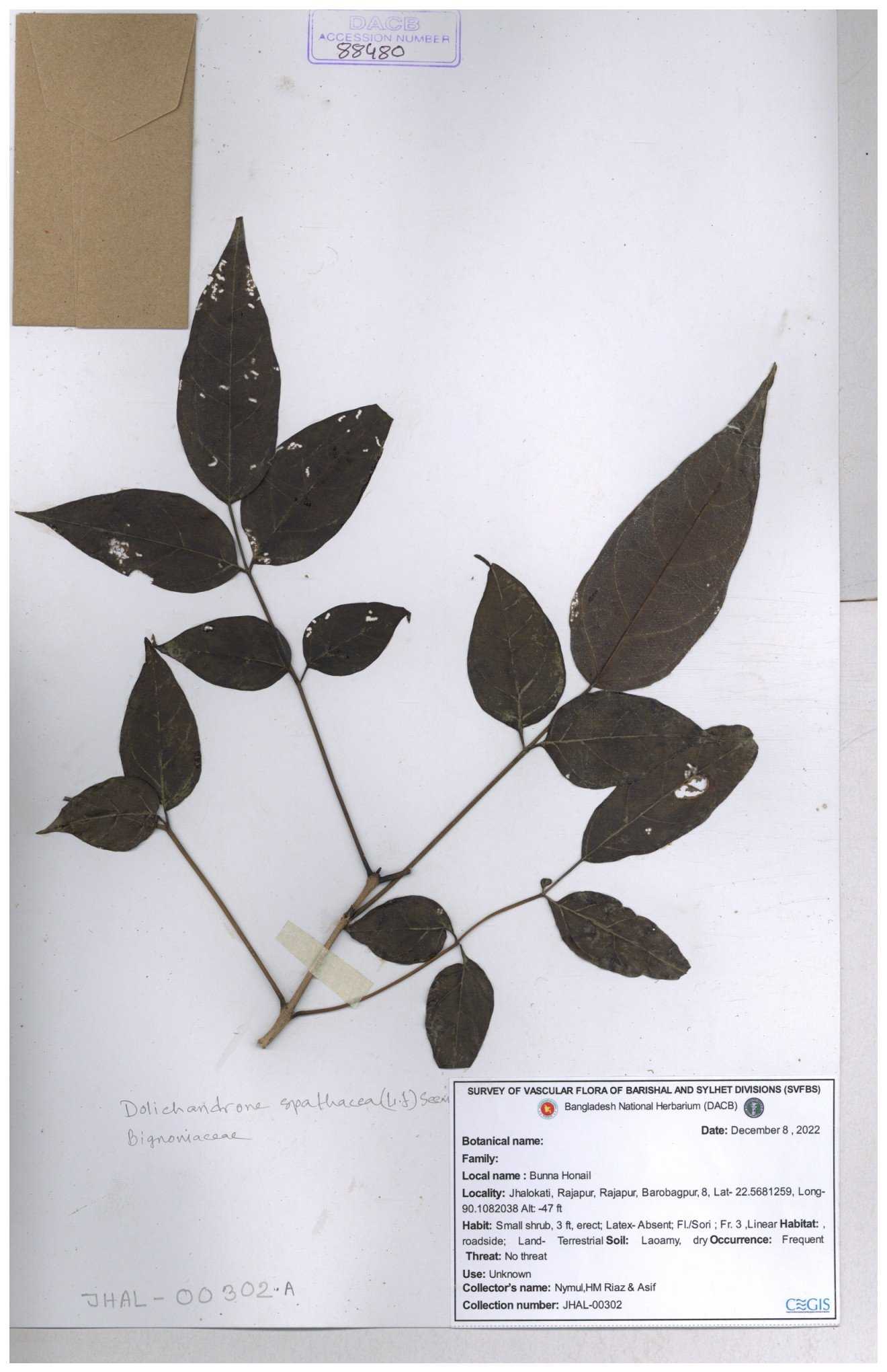 | 80837 | Bignoniaceae | Stereospermum tetragonum DC. | Dharmara | Dr. M. Sultana | DMS-3749 18-06-2021 |
