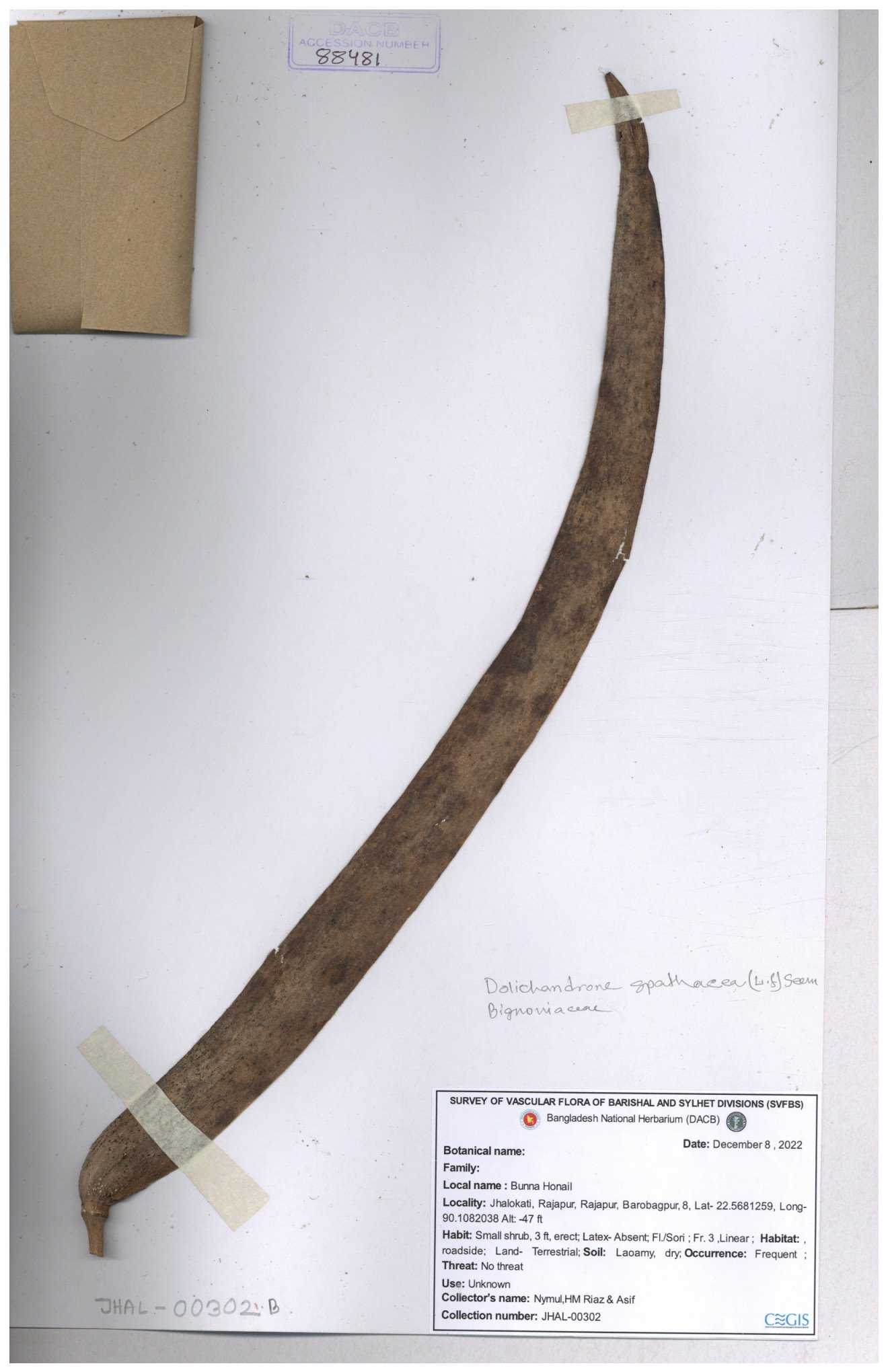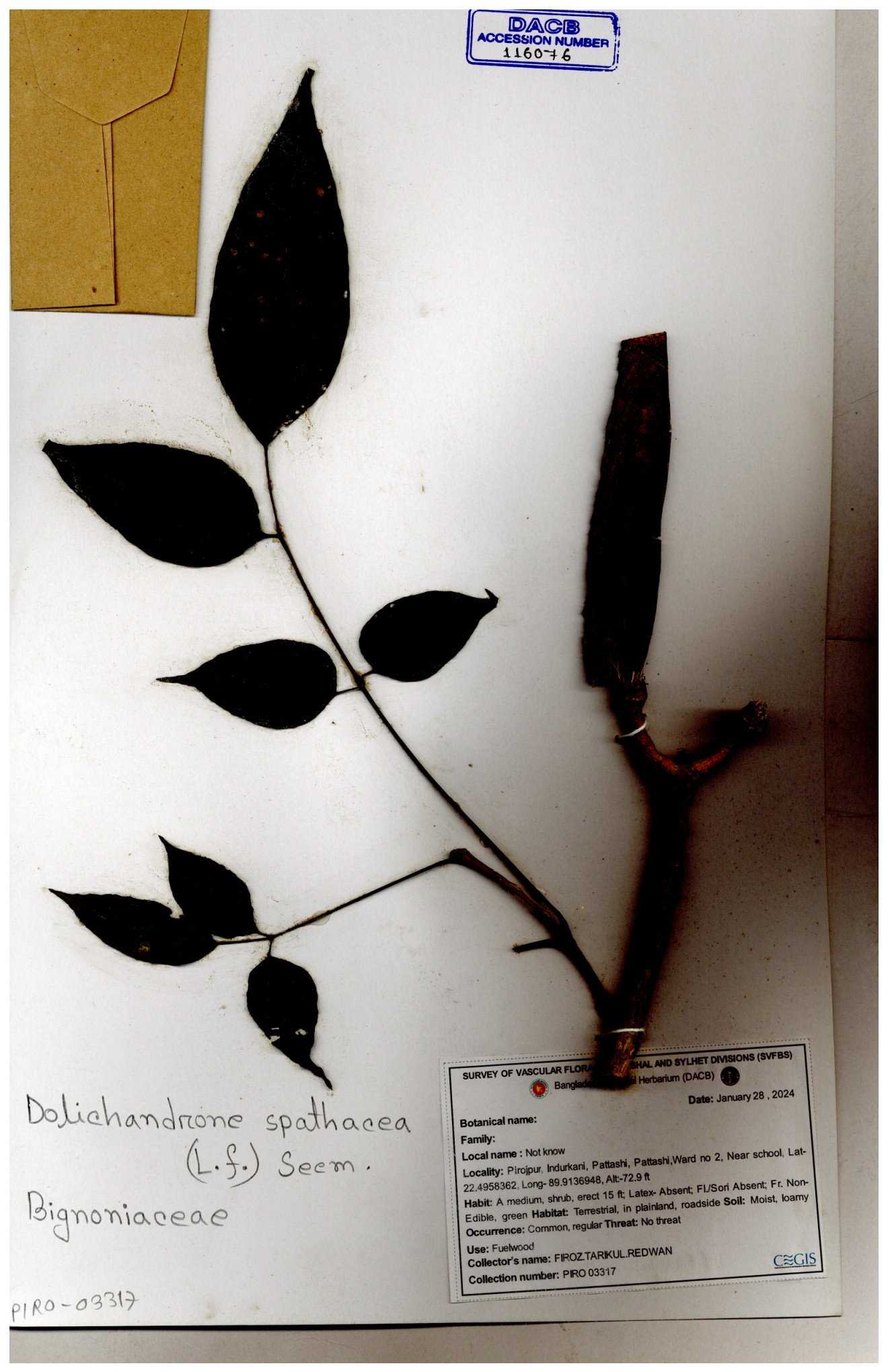 | 107296 | Bignoniaceae | Dolichandrone spathacea | 30-11--0001 |