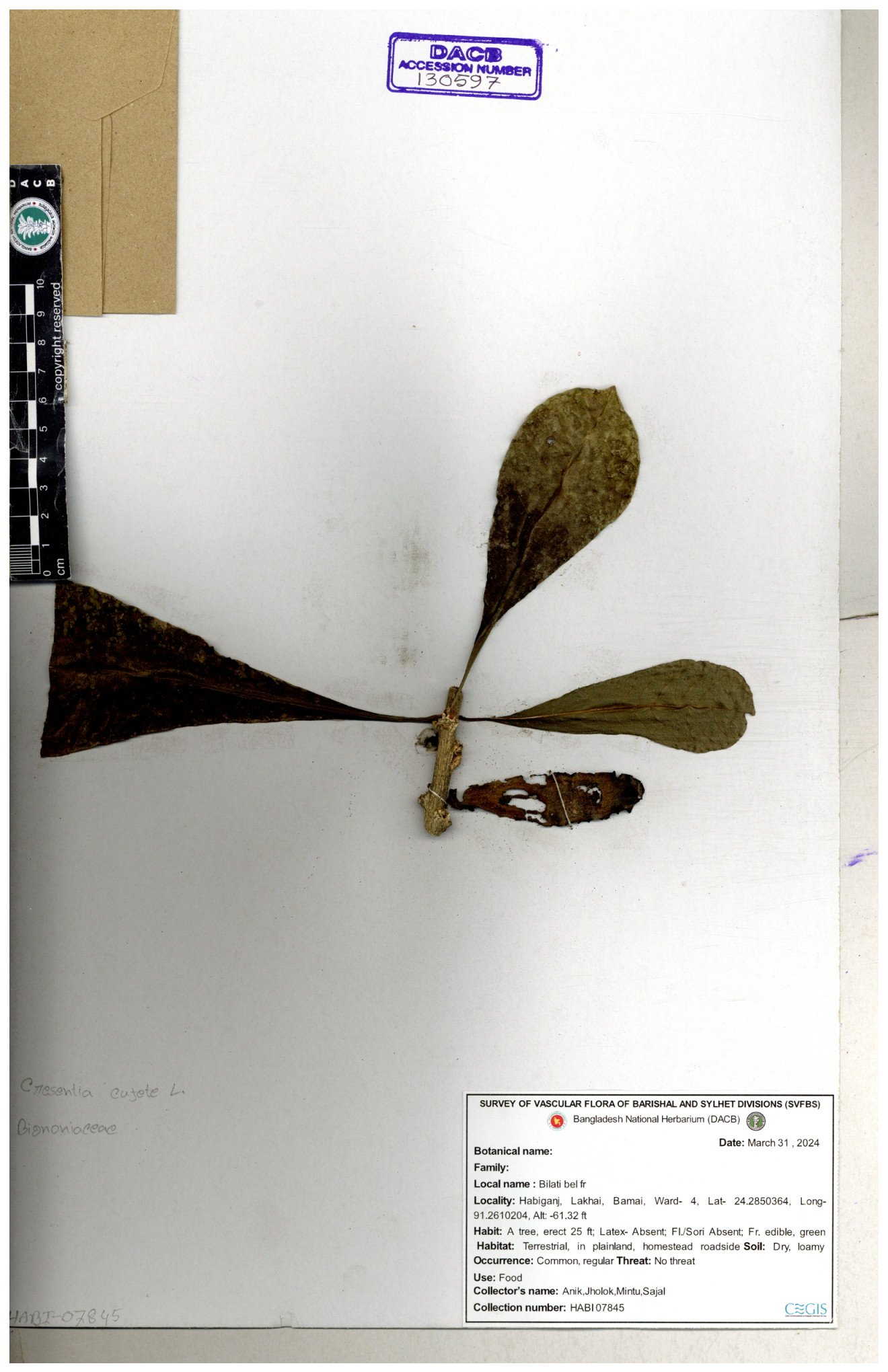 | 130597 | Bignoniaceae | Crescentia cujete | Anik, Jholok, Mintu, Sajal | 30-11--0001 |