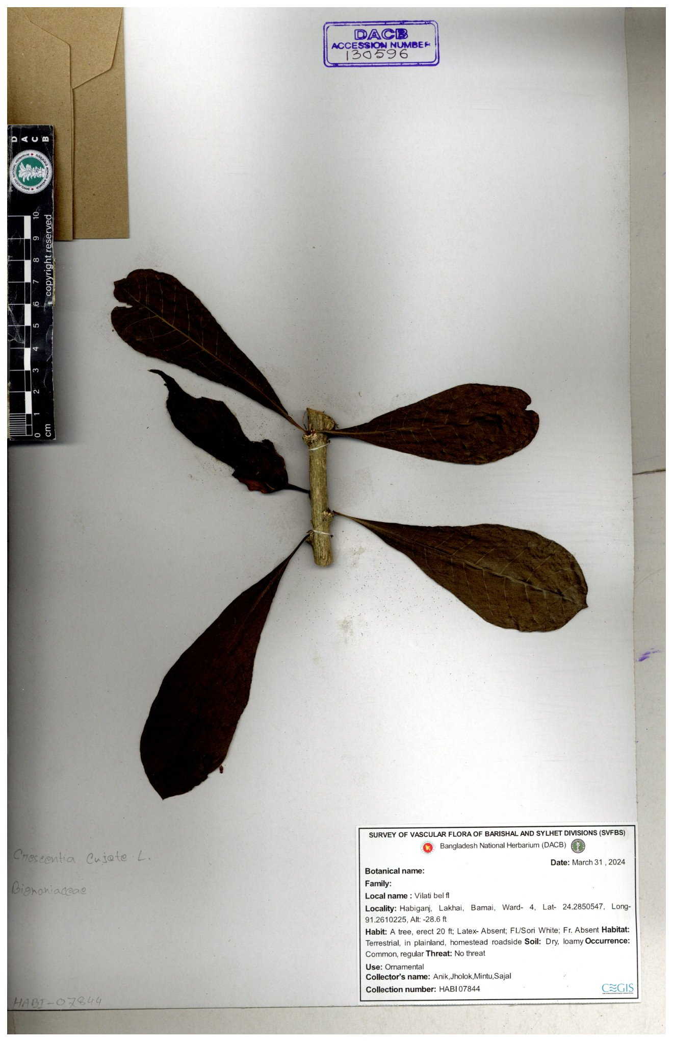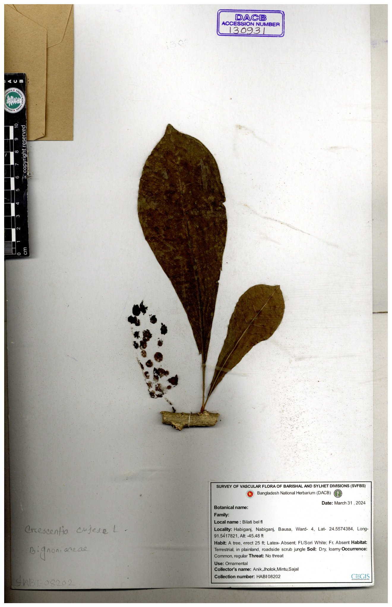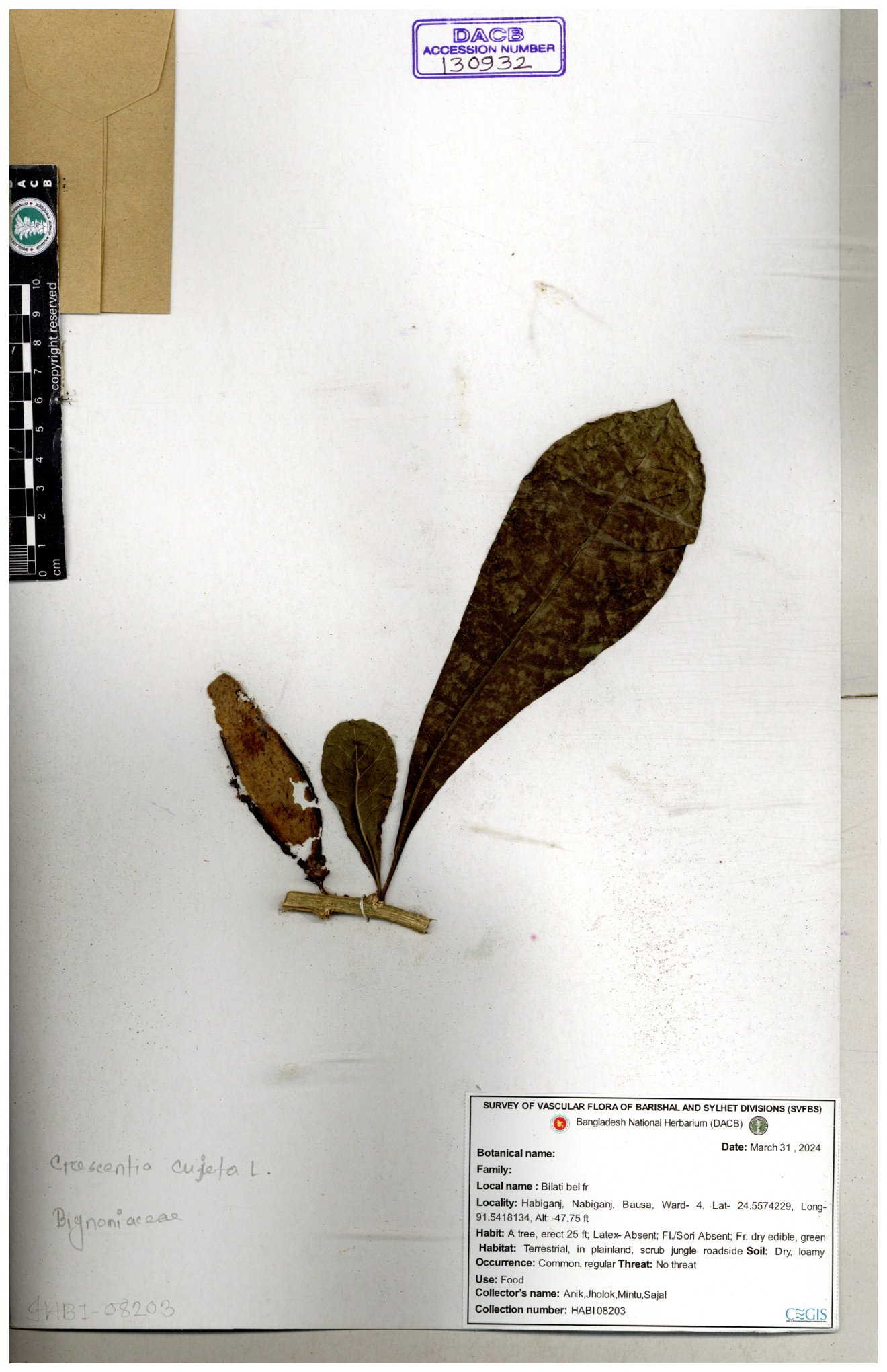 | 130596 | Bignoniaceae | Crescentia cujete | Anik, Jholok, Mintu, Sajal | 30-11--0001 |