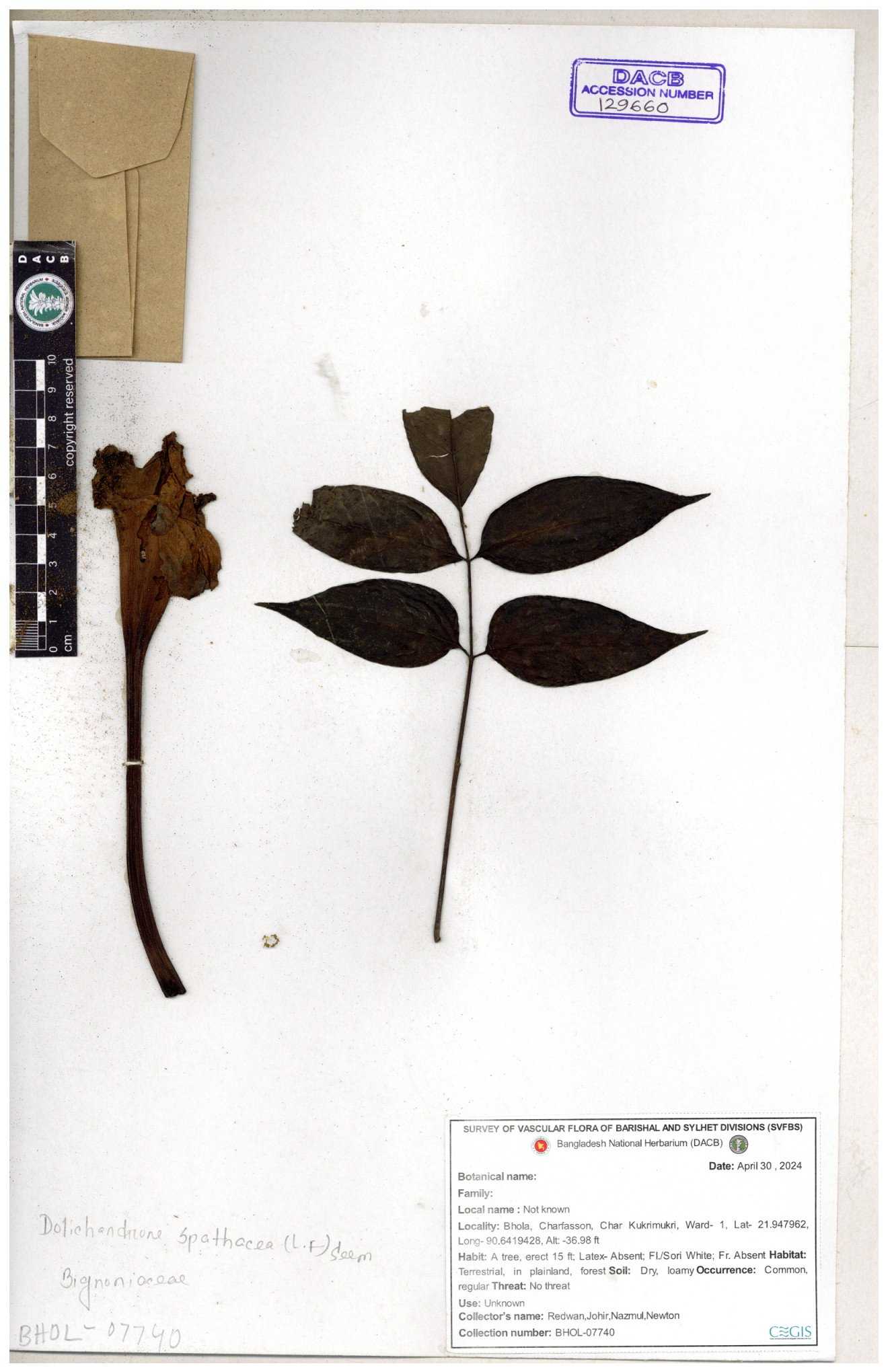 | 129660 | Bignoniaceae | Dolichandrone spathacea | 30-11--0001 |