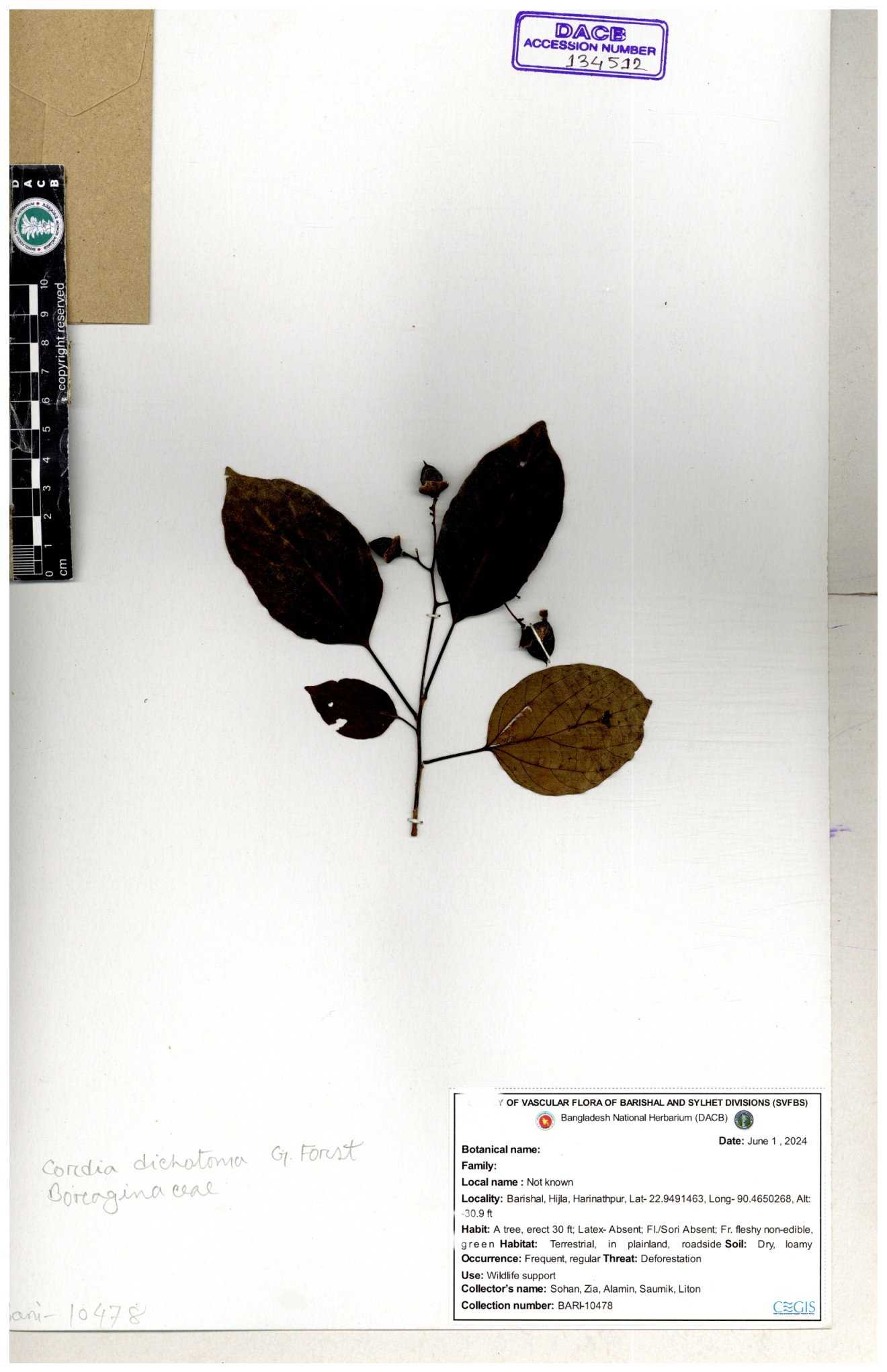 | 34790 | Boraginaceae | Cordia dichotoma | 30-11--0001 |