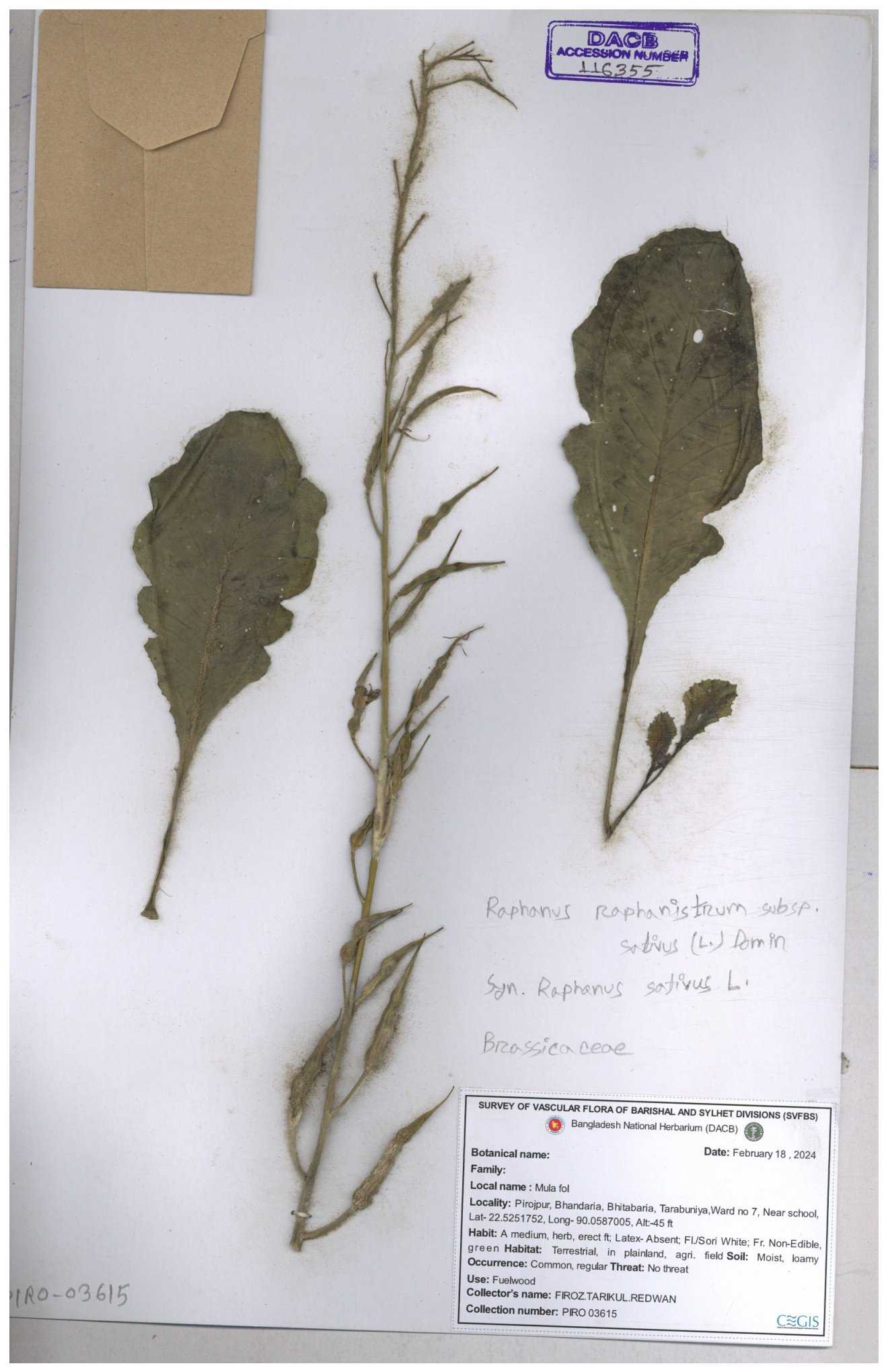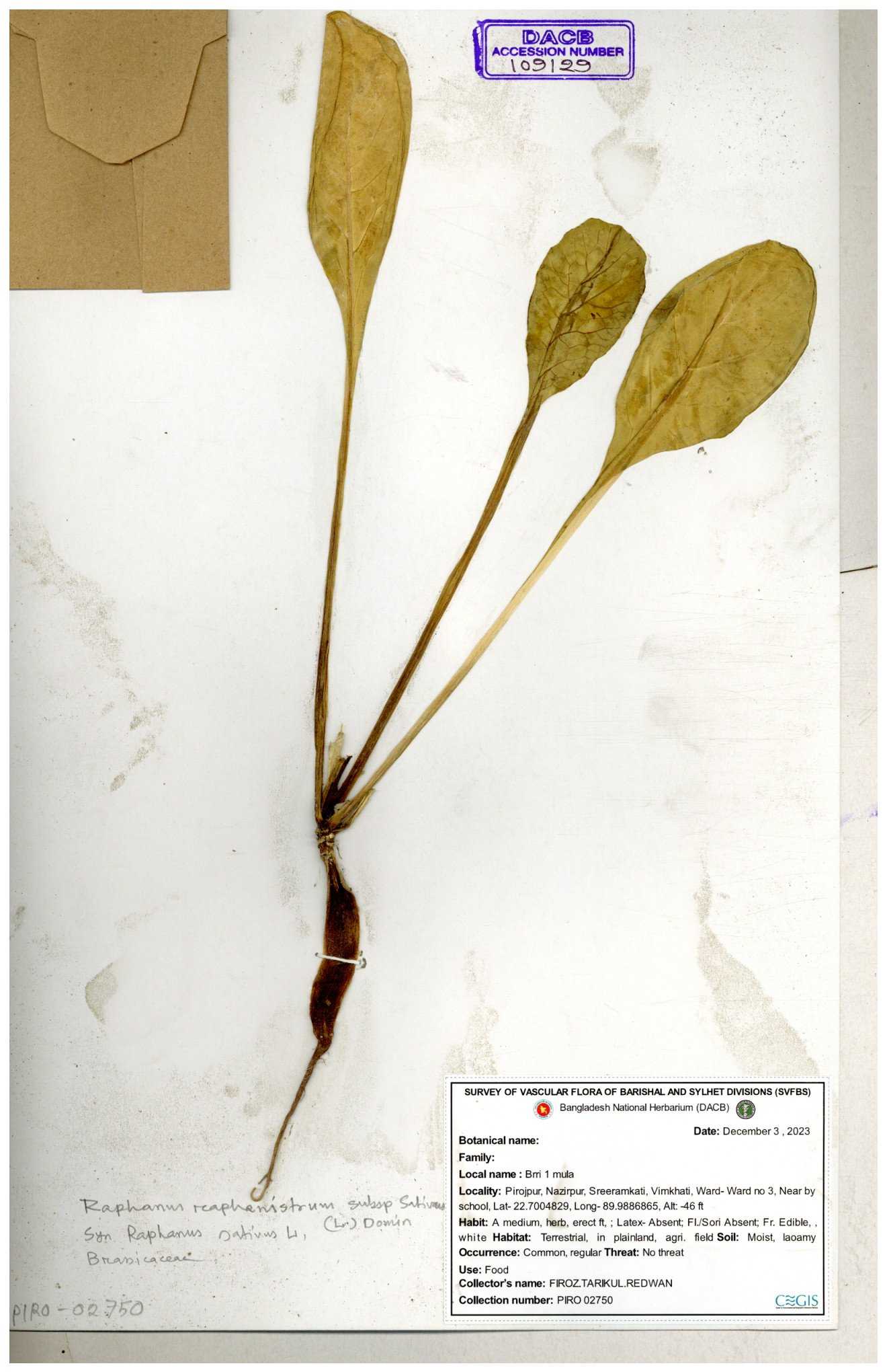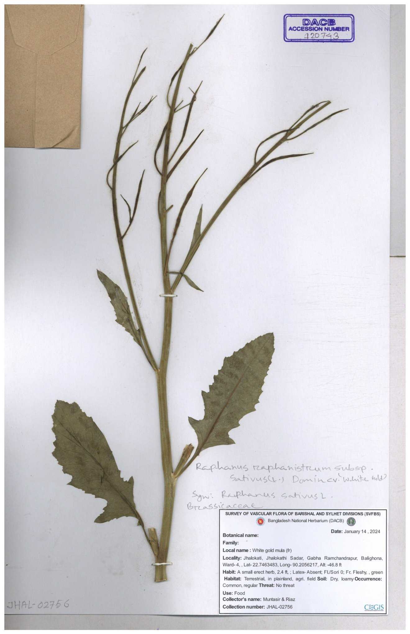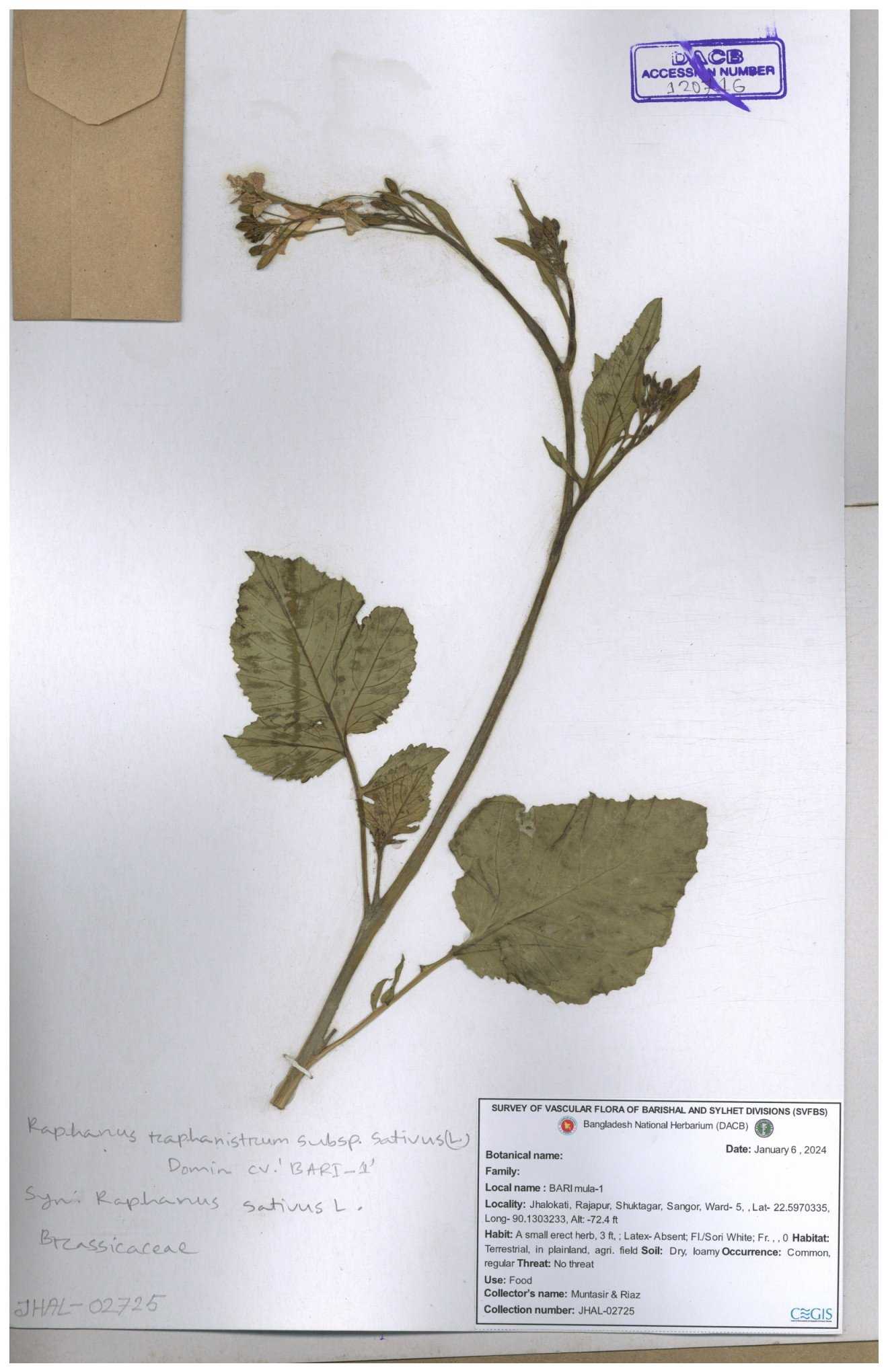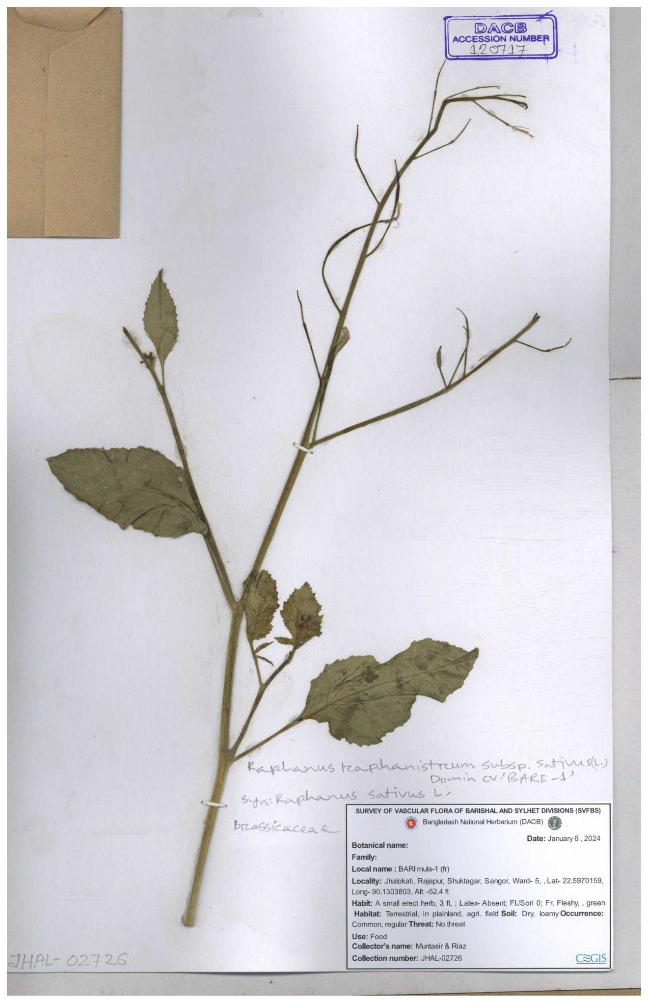 | 67352 | Brassicaceae | Raphanus sativus L. | Mula | I Hossen et al | IH-3419 17-01-2017 |