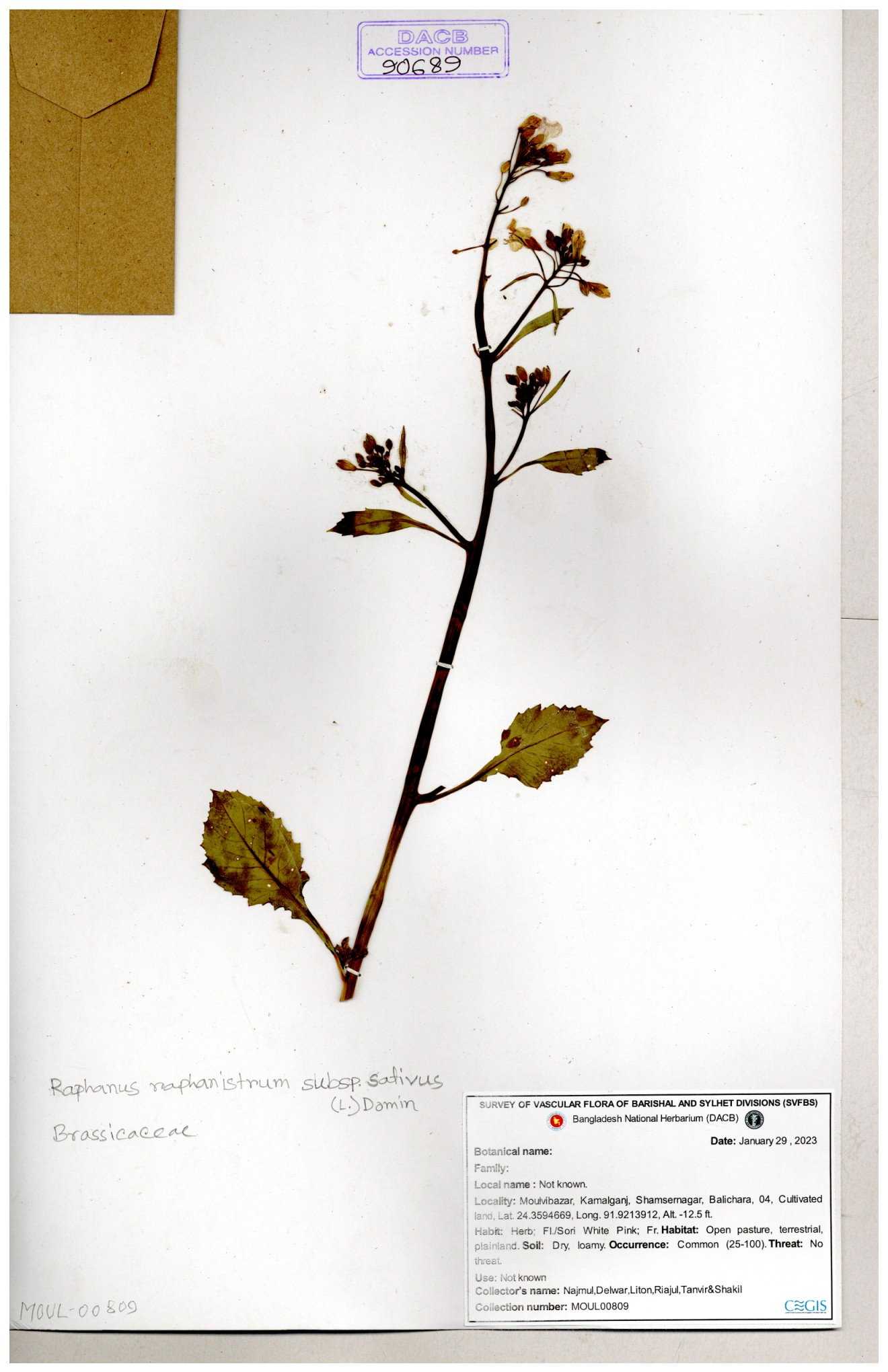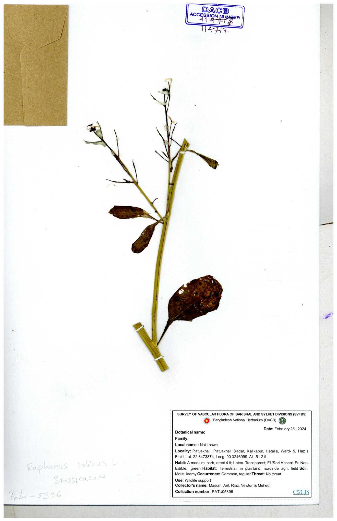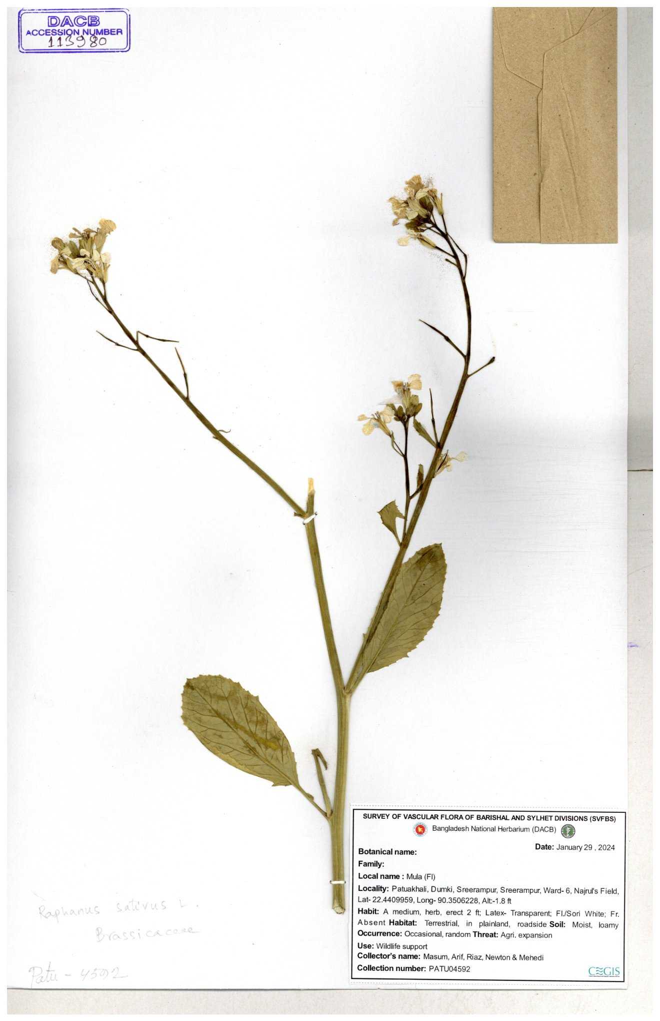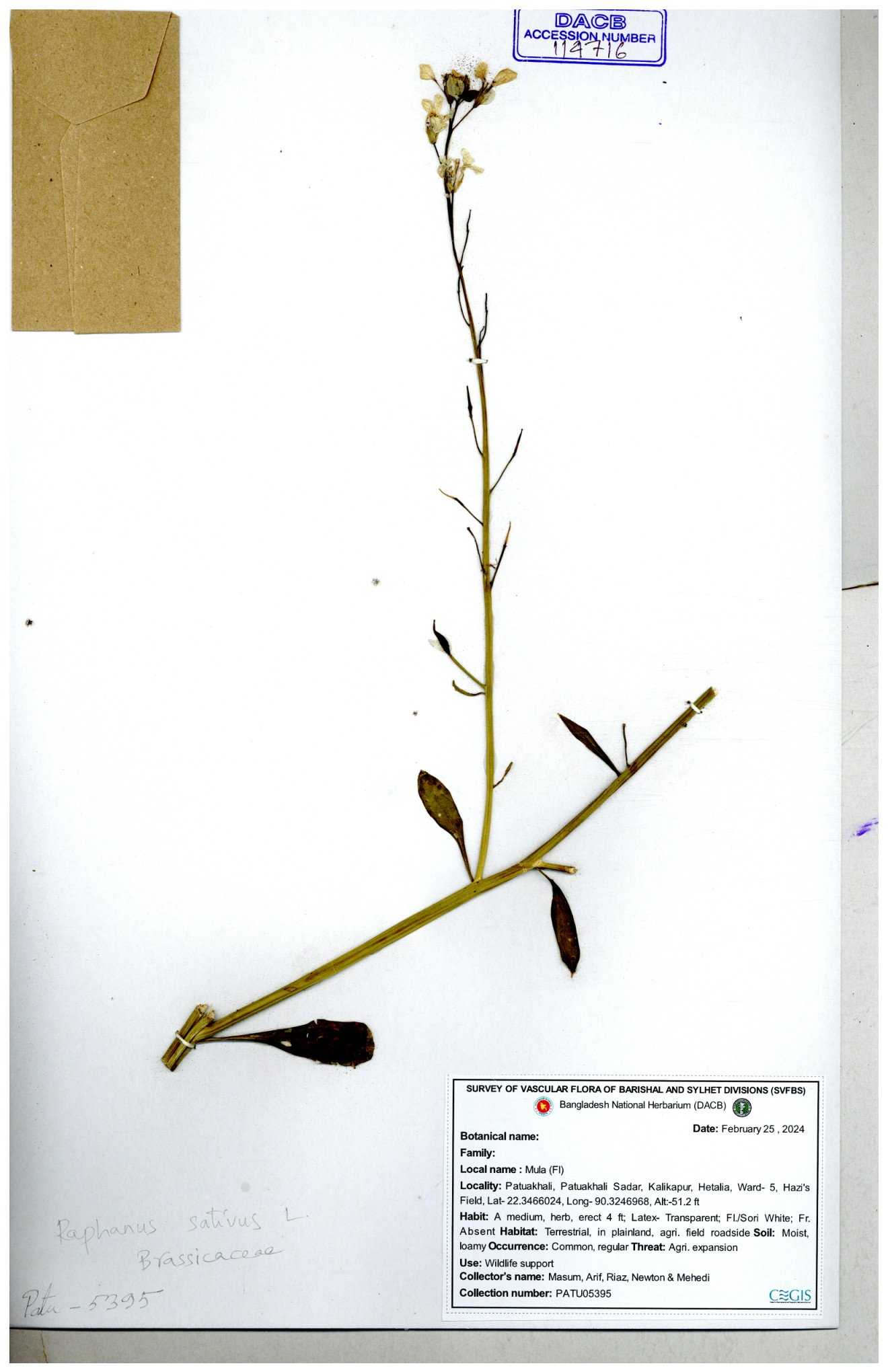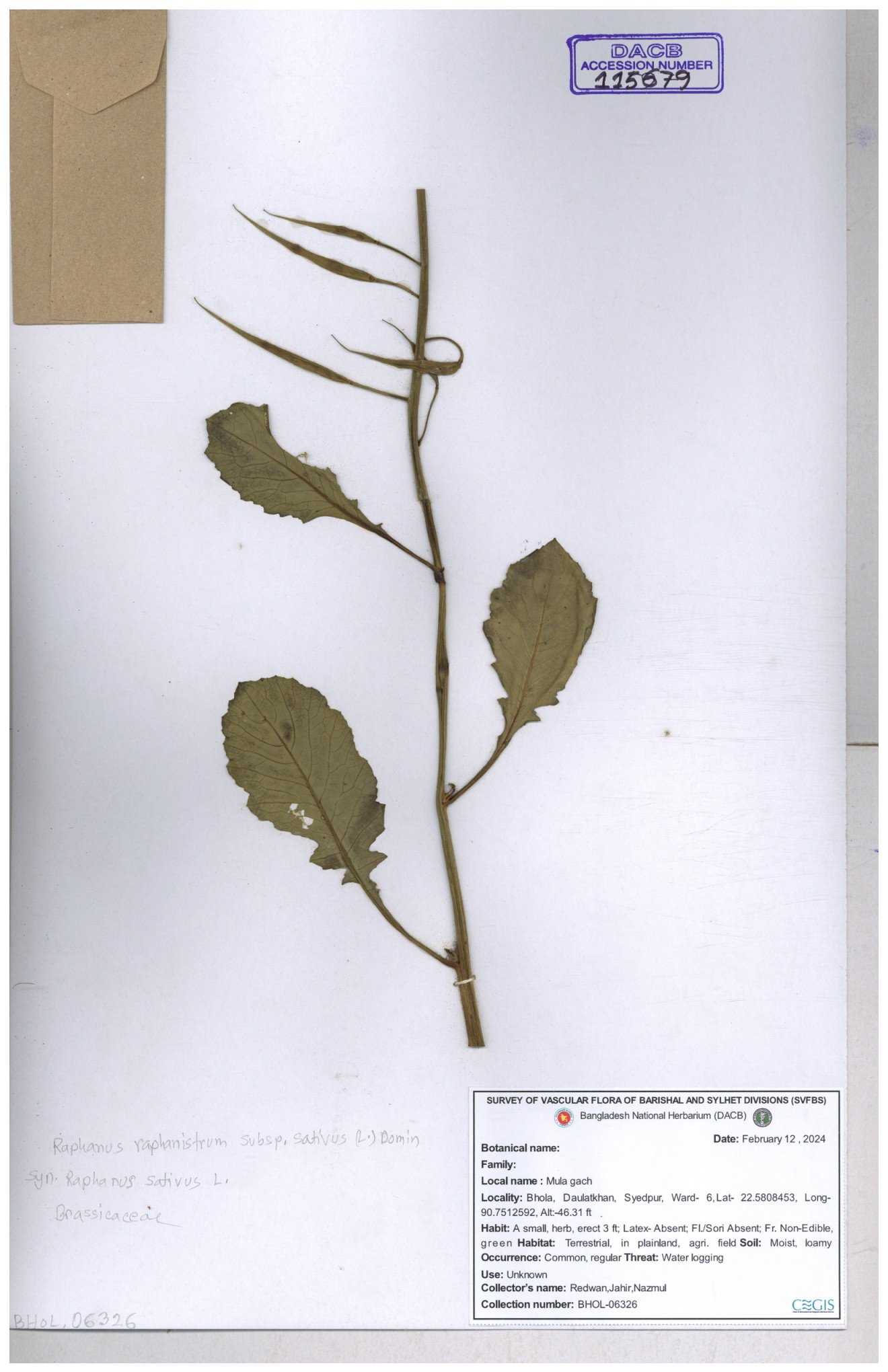 | 67352 | Brassicaceae | Raphanus sativus L. | Mula | I Hossen et al | IH-3419 17-01-2017 |