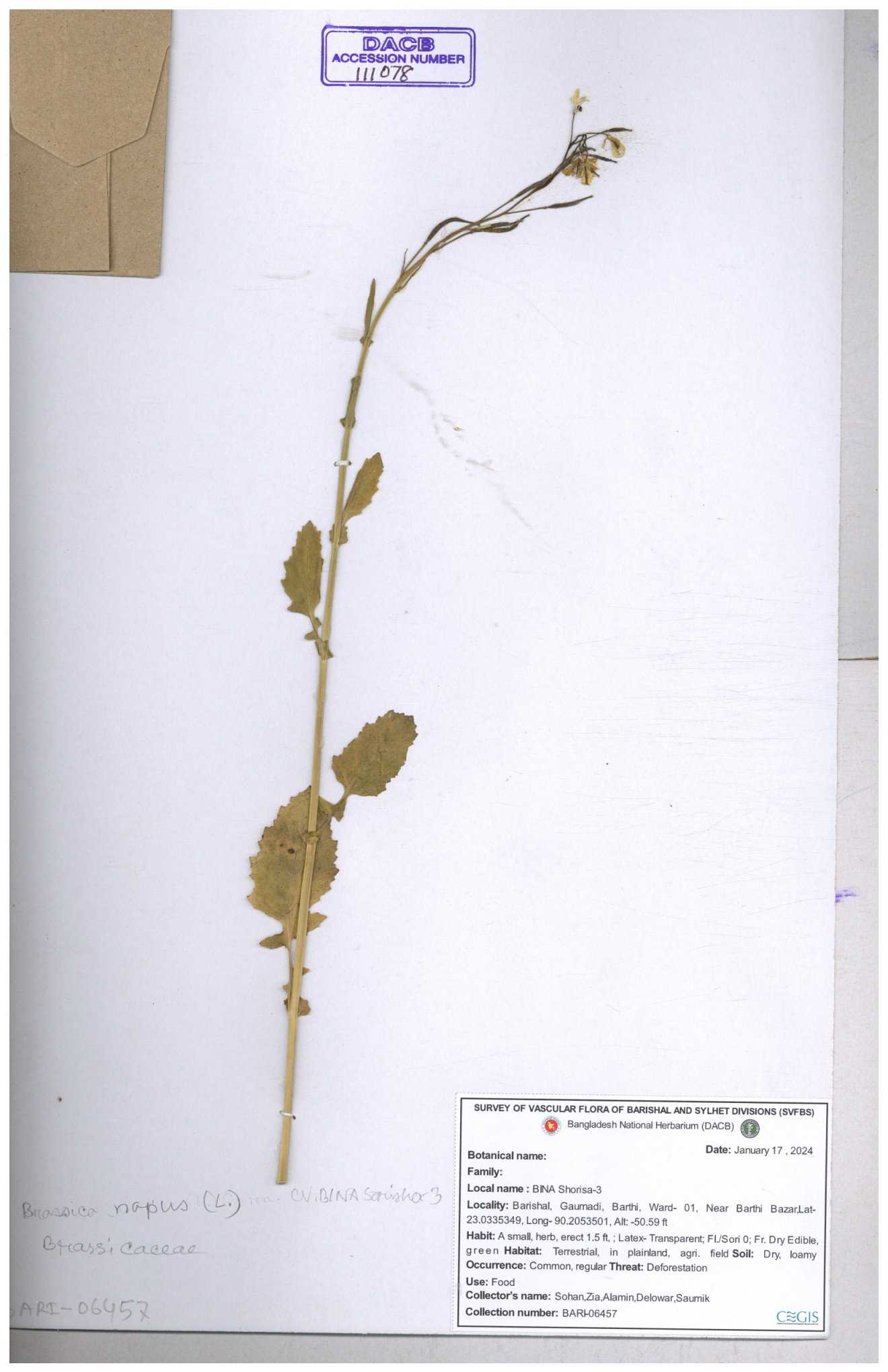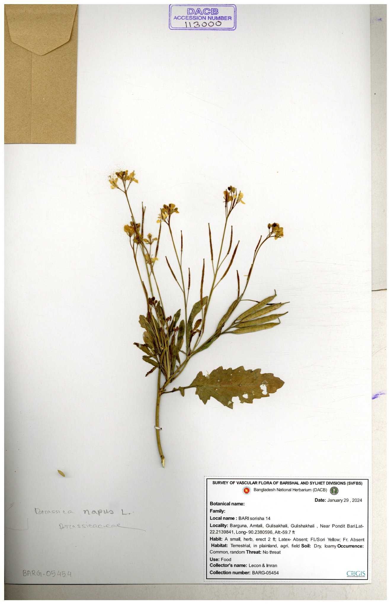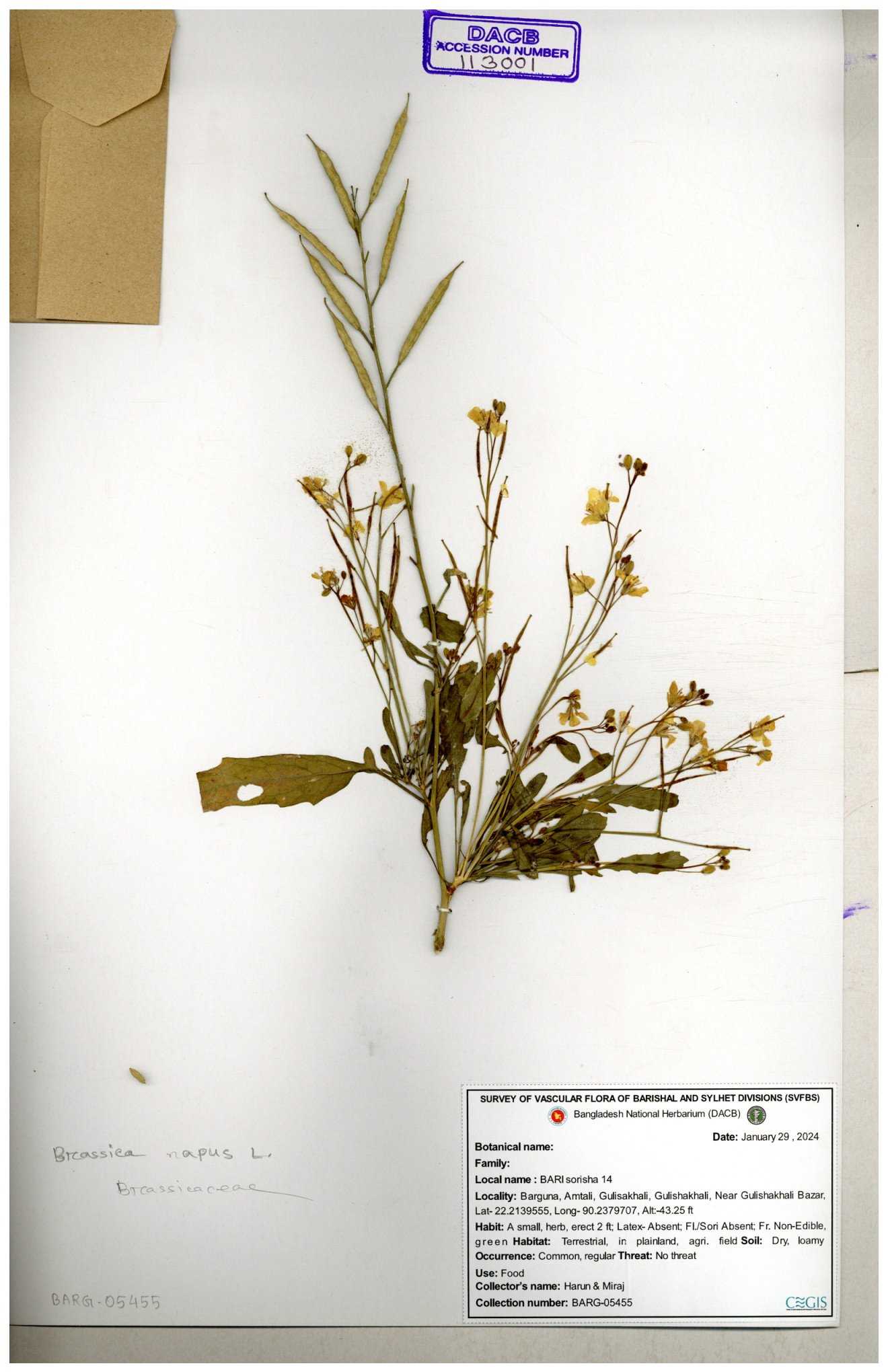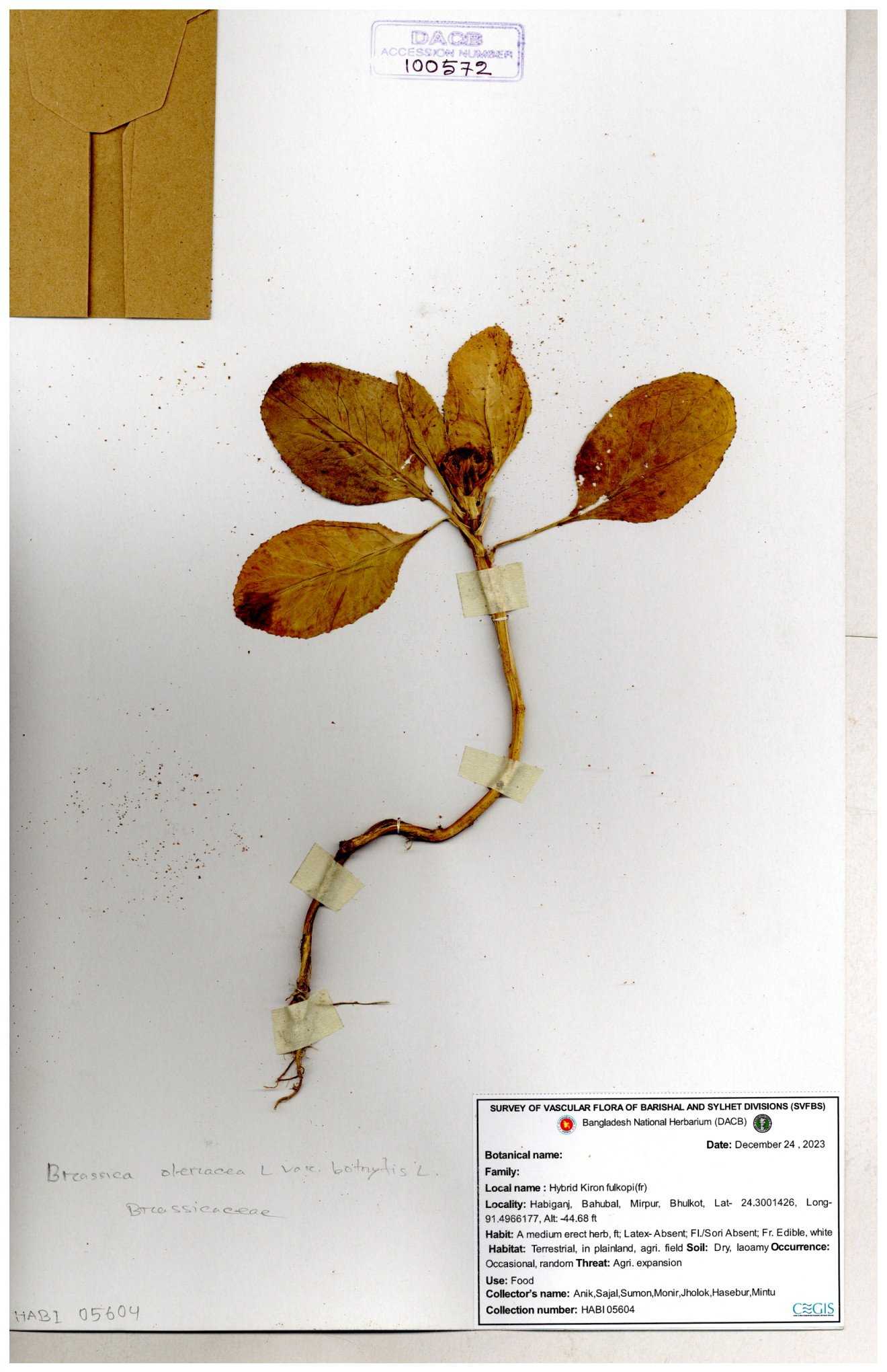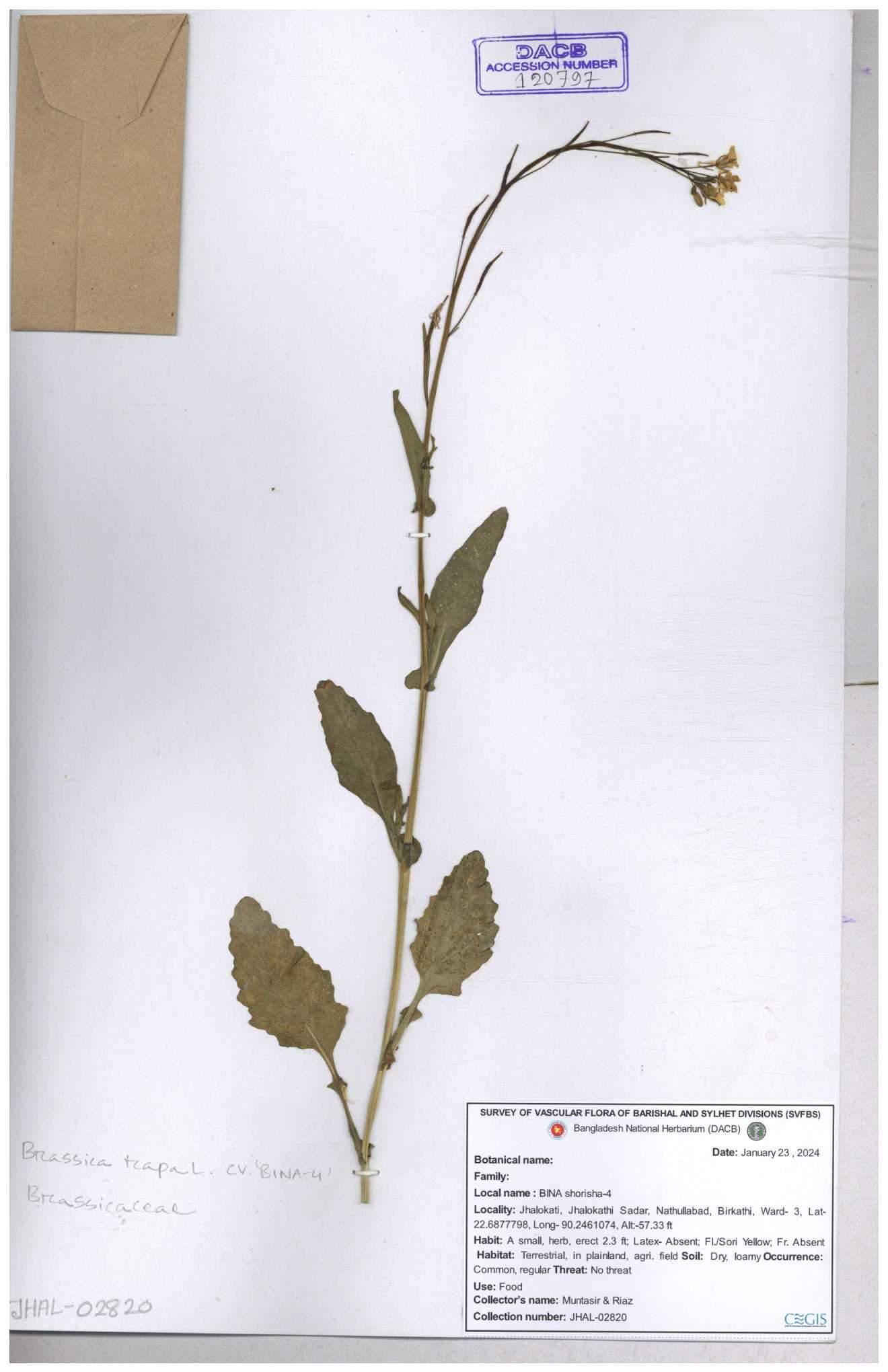 | 8360 | Brassicaceae | Brassica sp. | A.M. Huq et al | H. 8183 04-02-1987 |