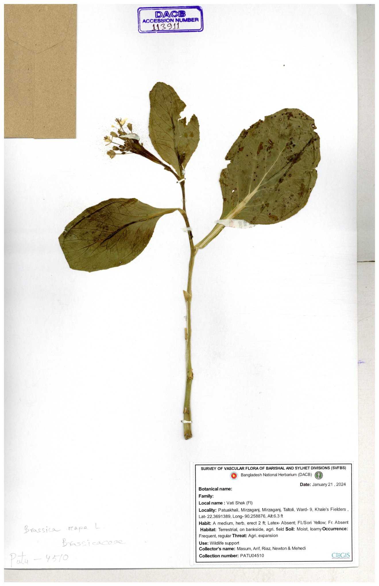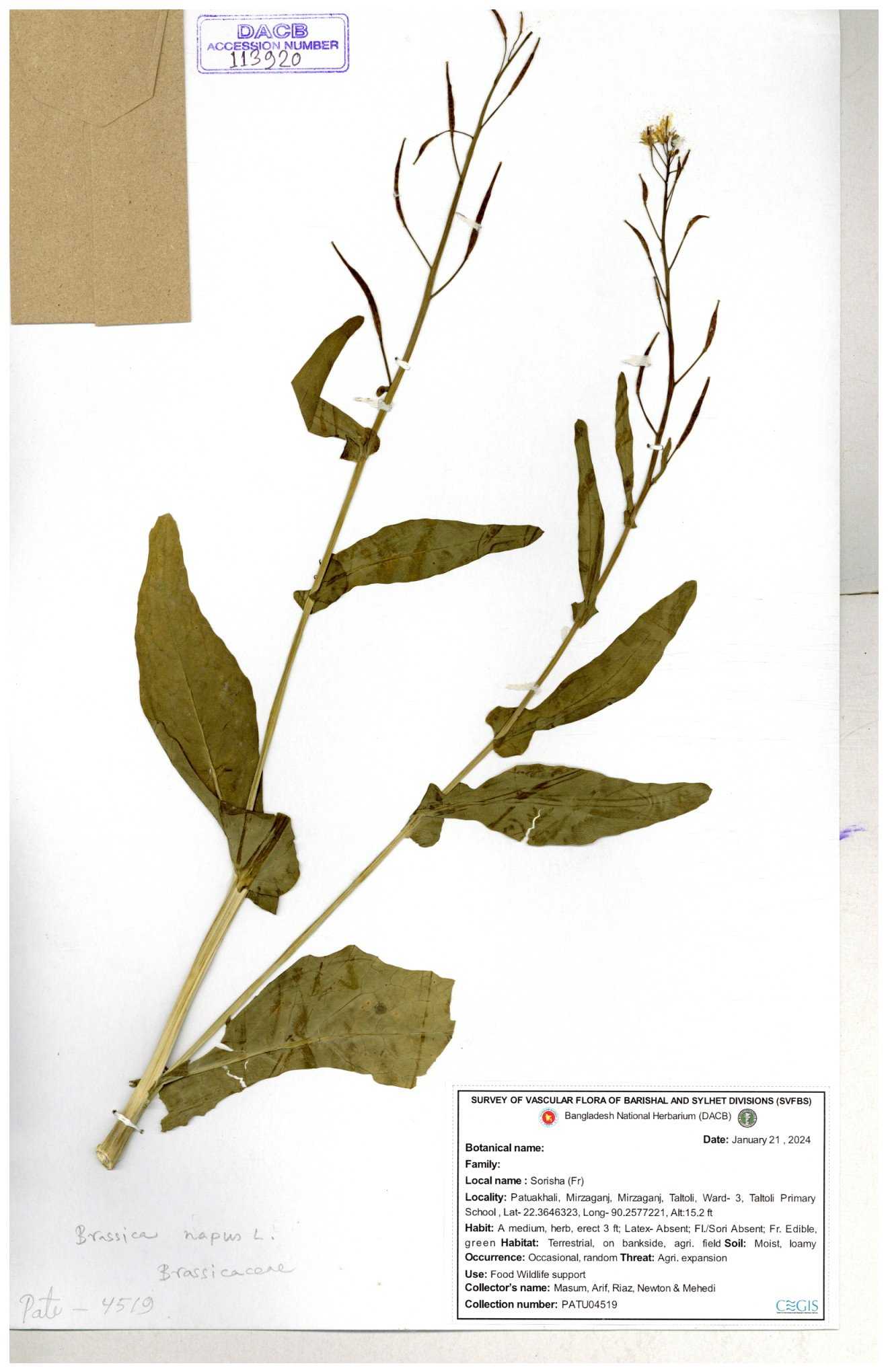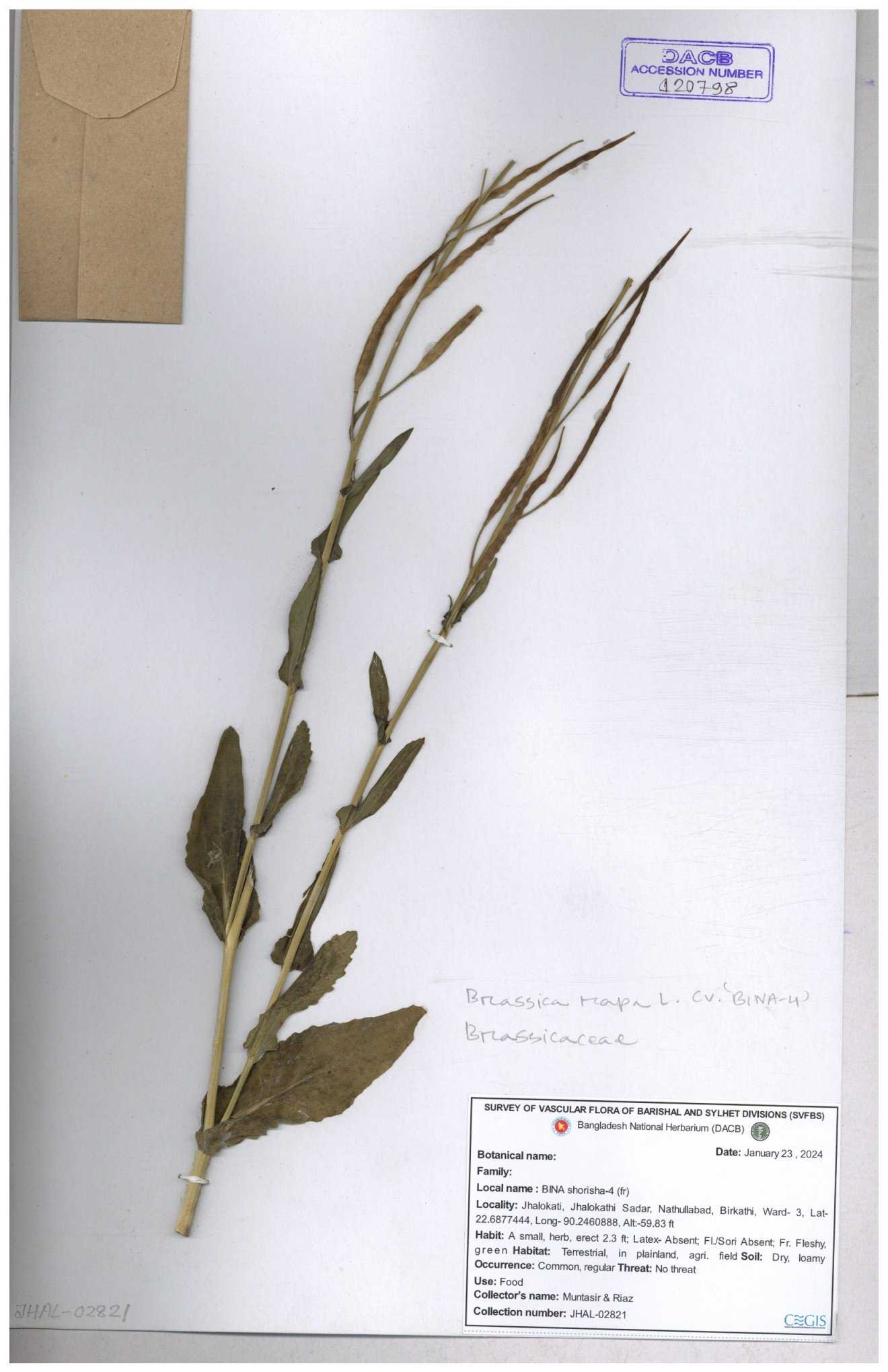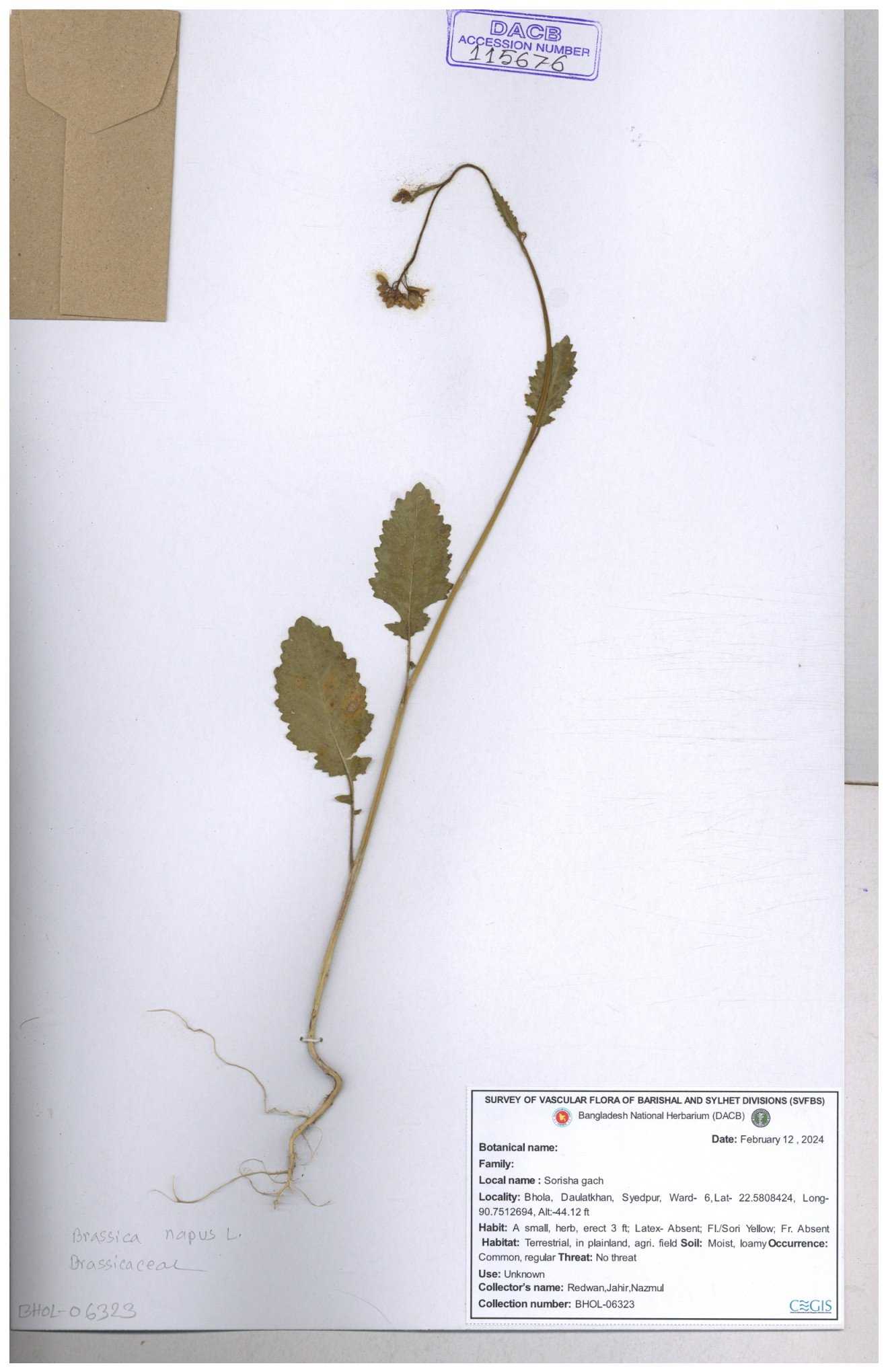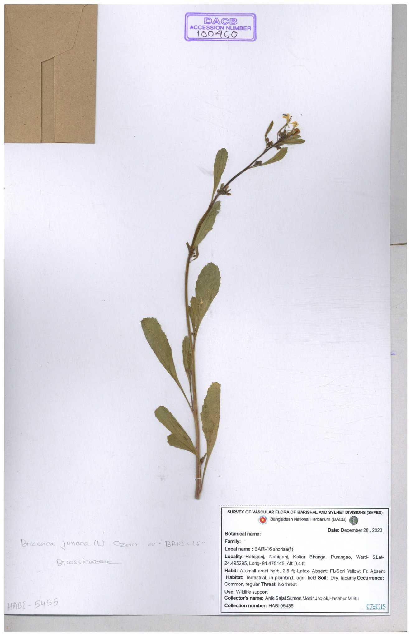 | 8360 | Brassicaceae | Brassica sp. | A.M. Huq et al | H. 8183 04-02-1987 |