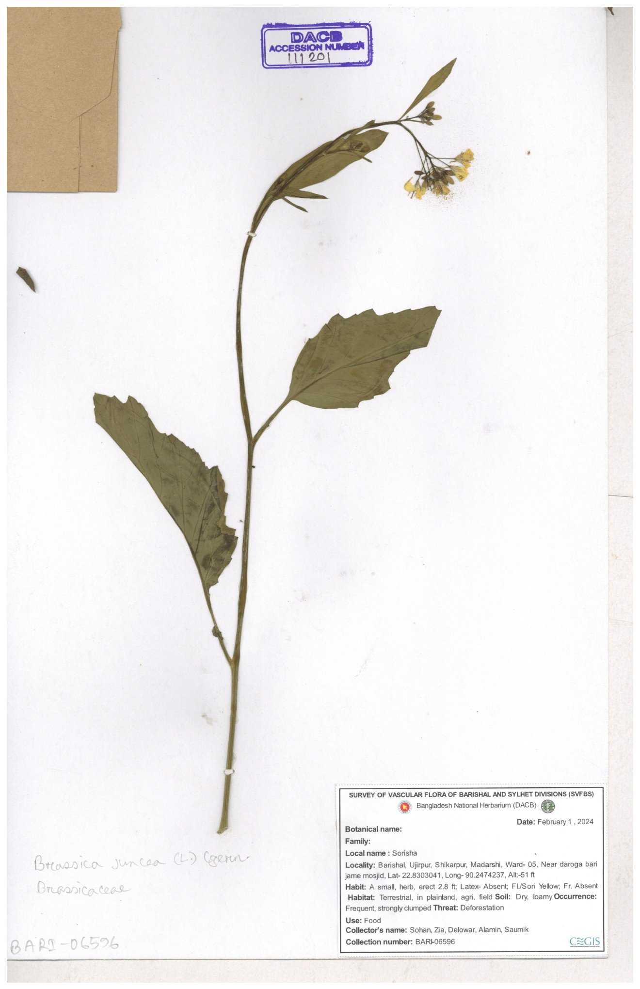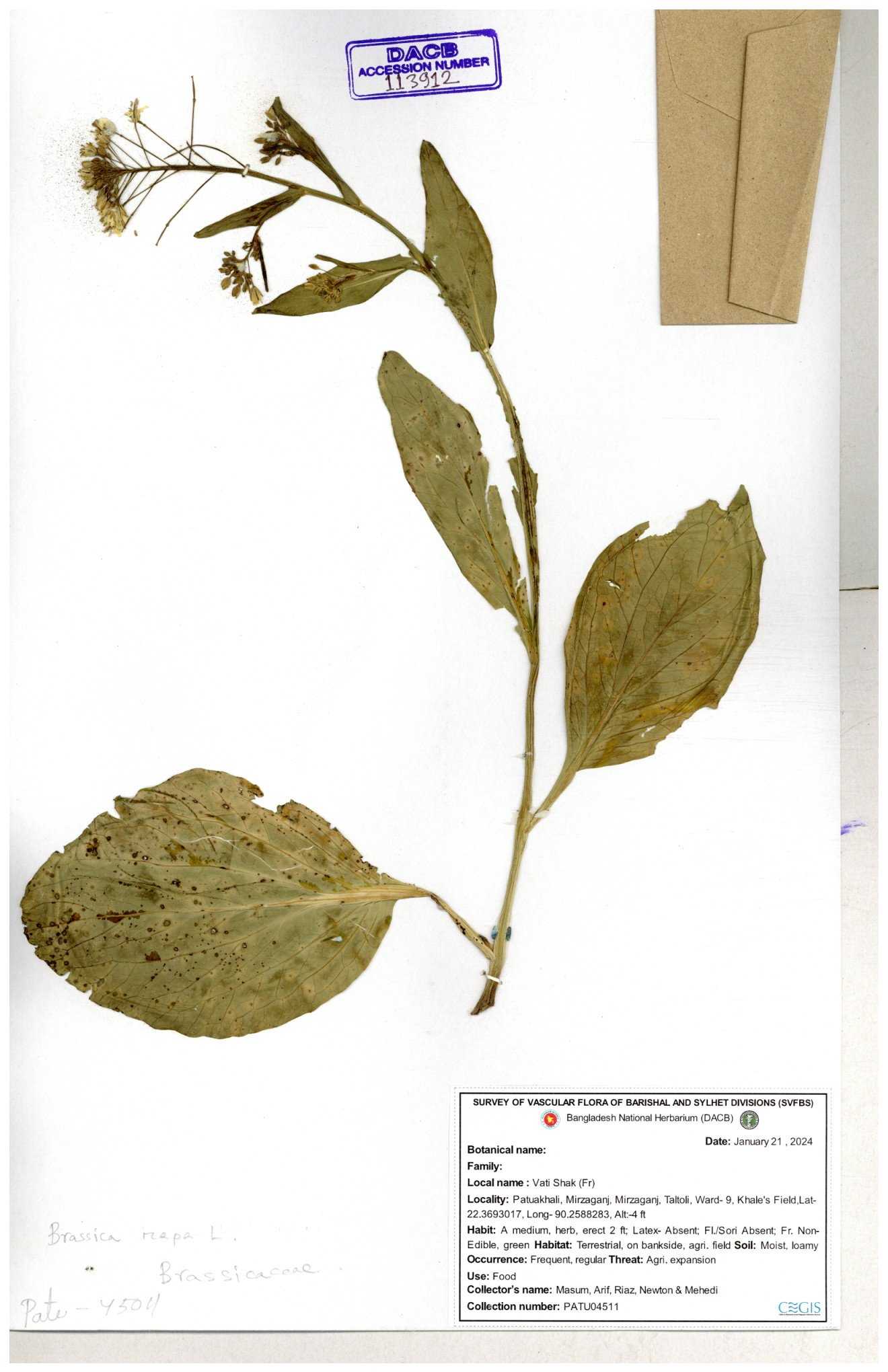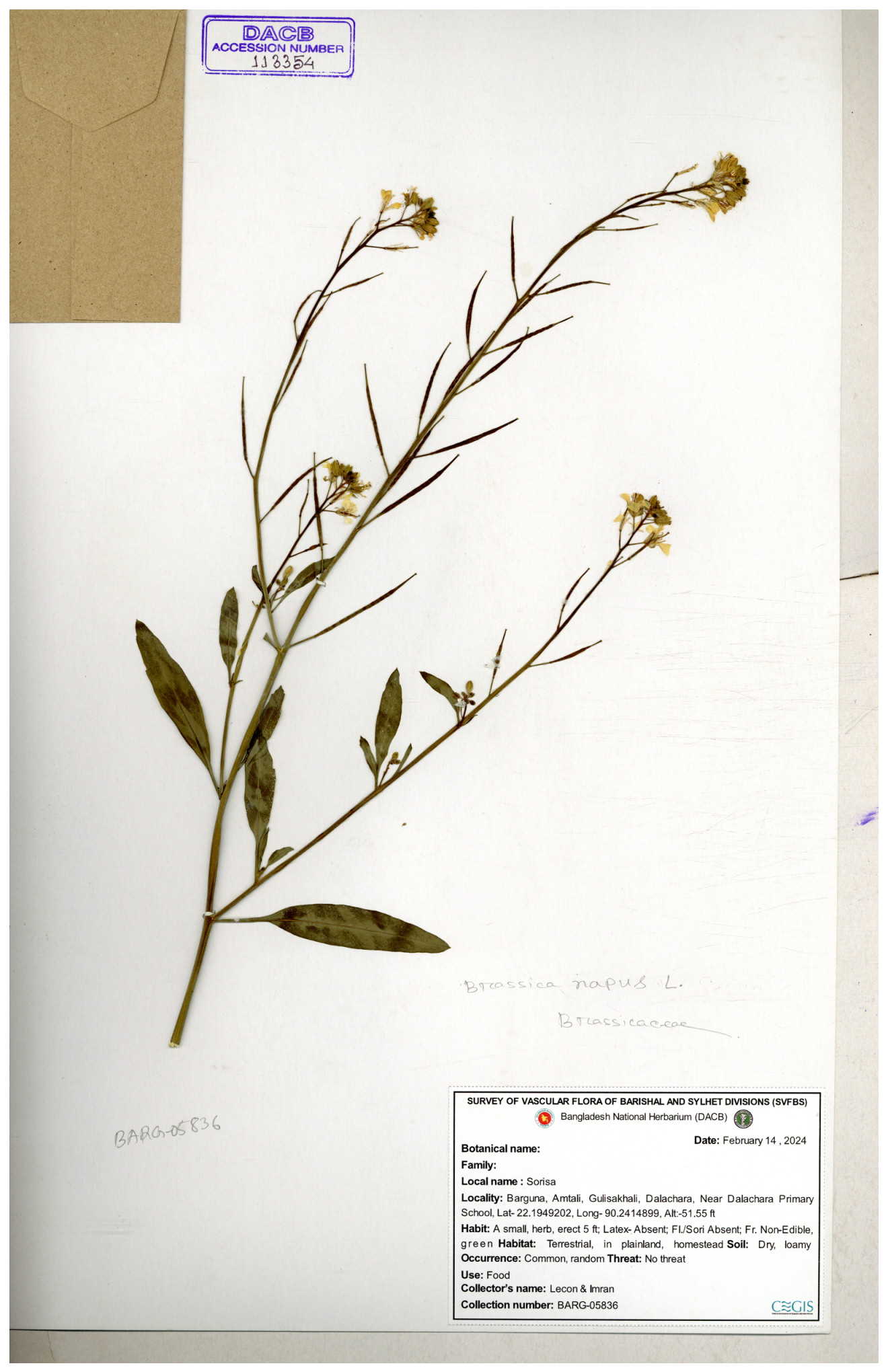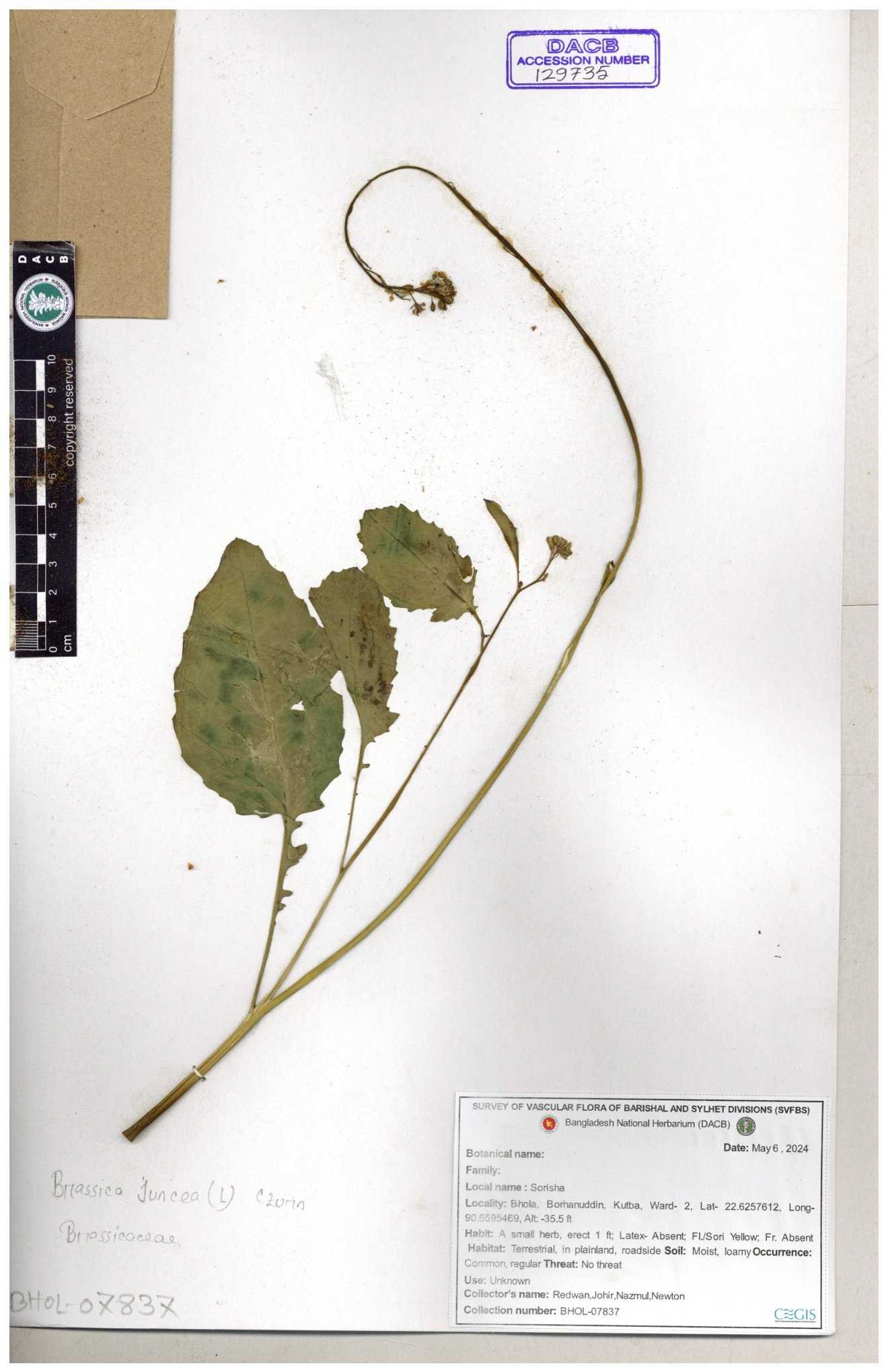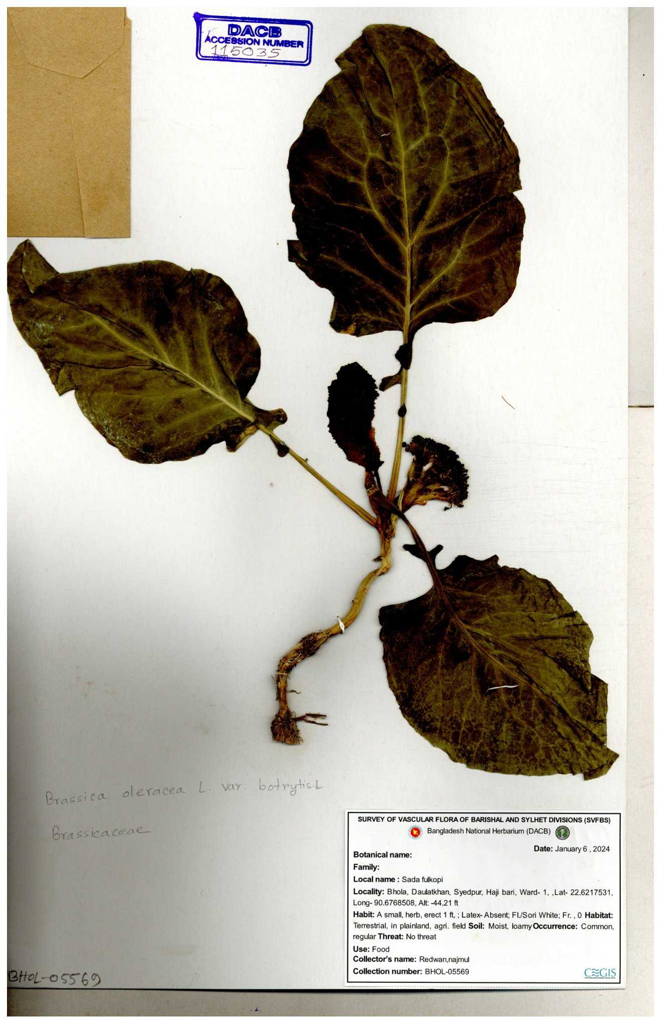 | 8360 | Brassicaceae | Brassica sp. | A.M. Huq et al | H. 8183 04-02-1987 |