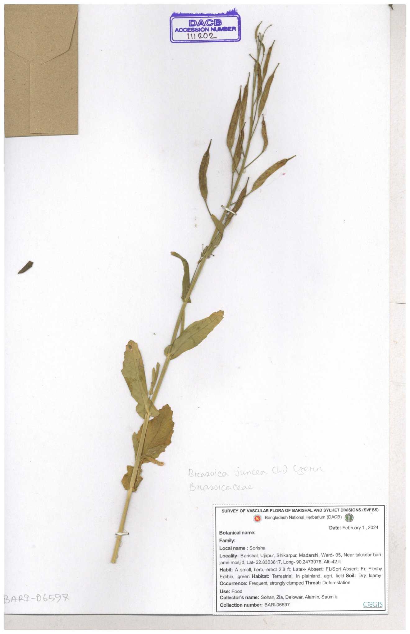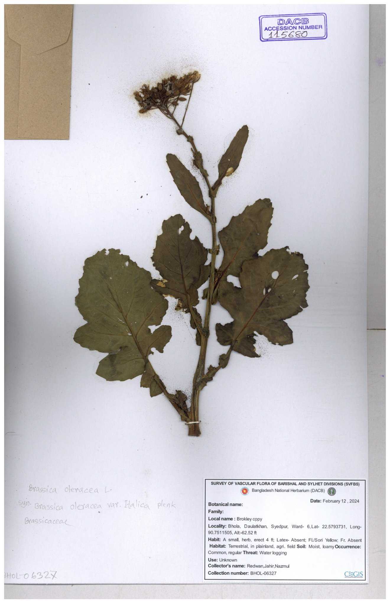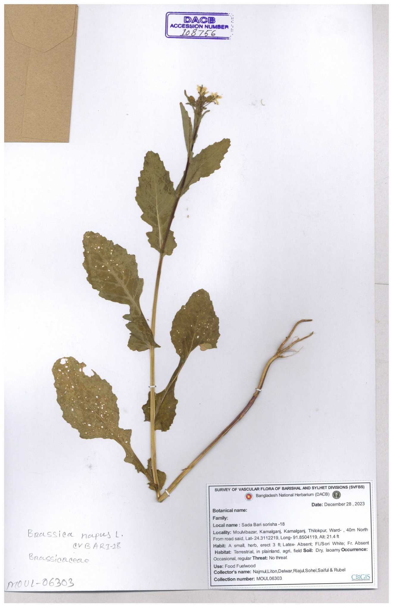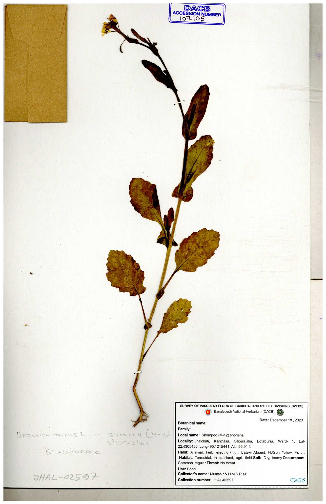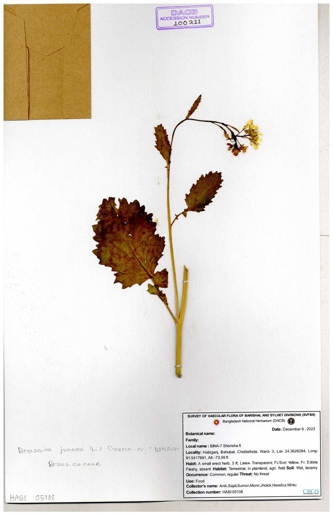 | 8360 | Brassicaceae | Brassica sp. | A.M. Huq et al | H. 8183 04-02-1987 |