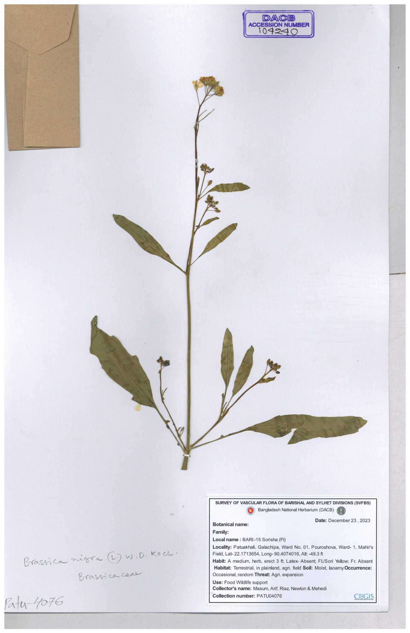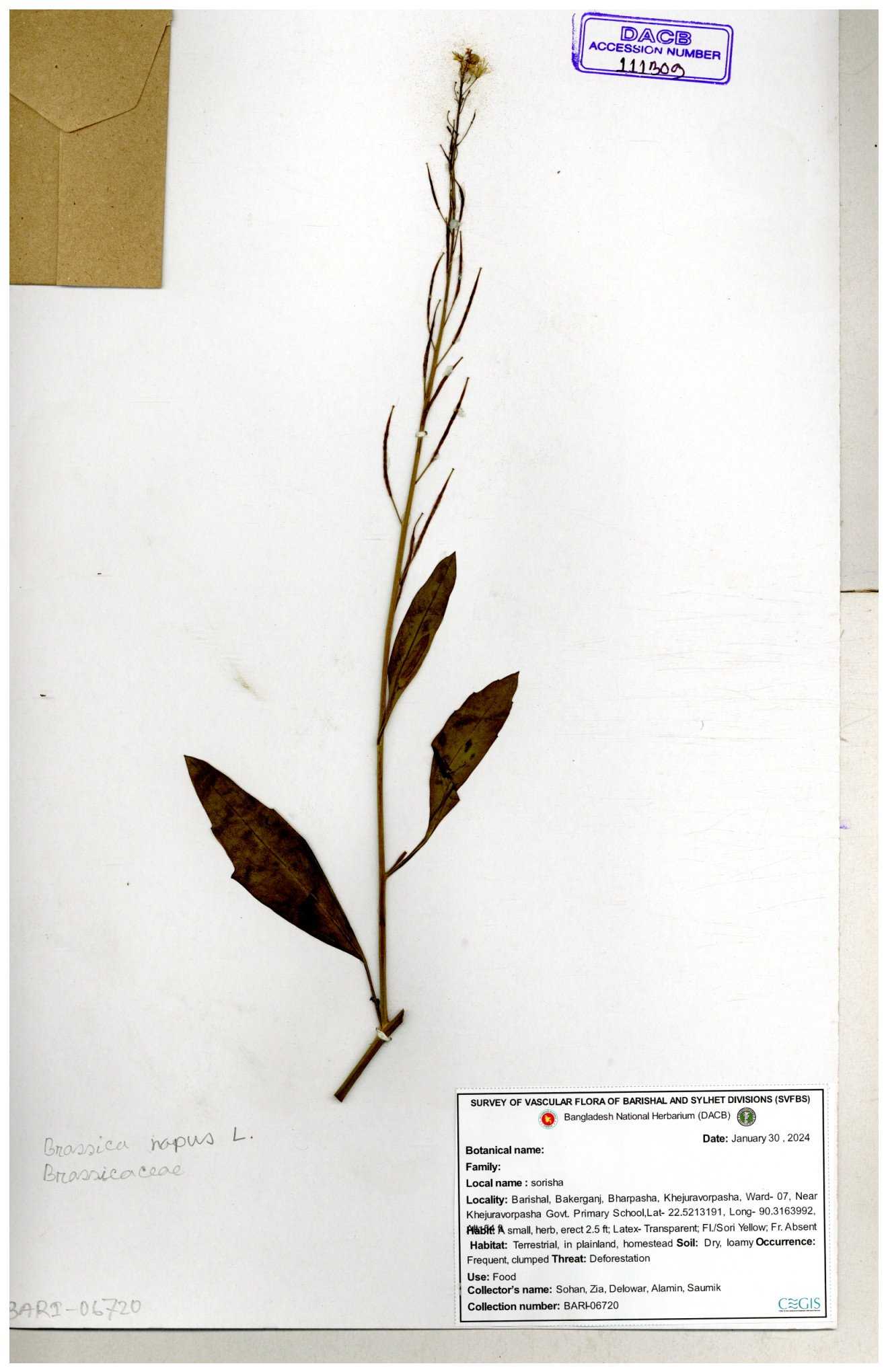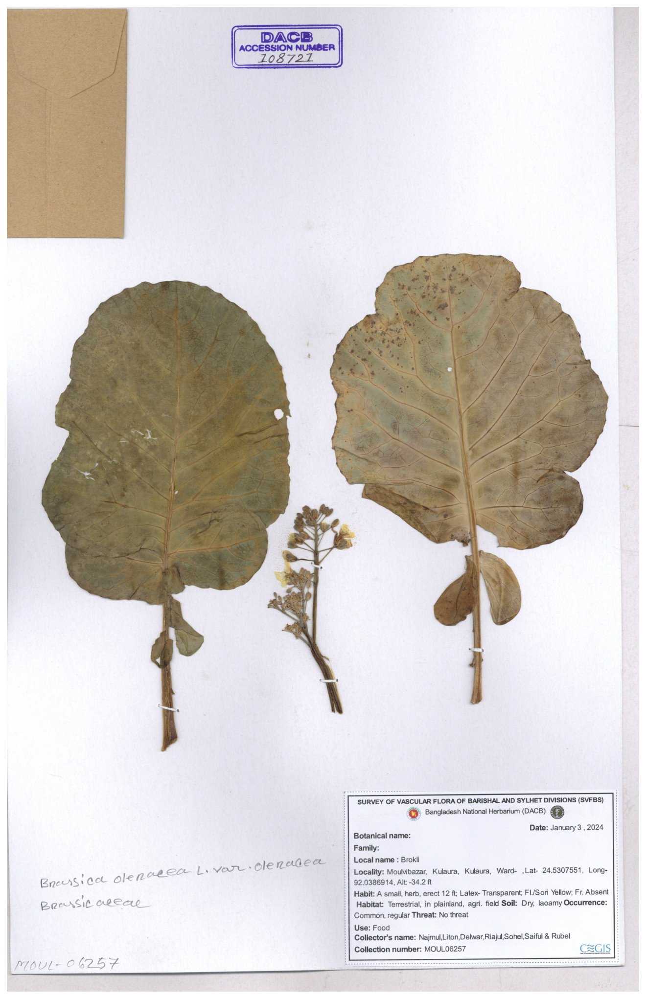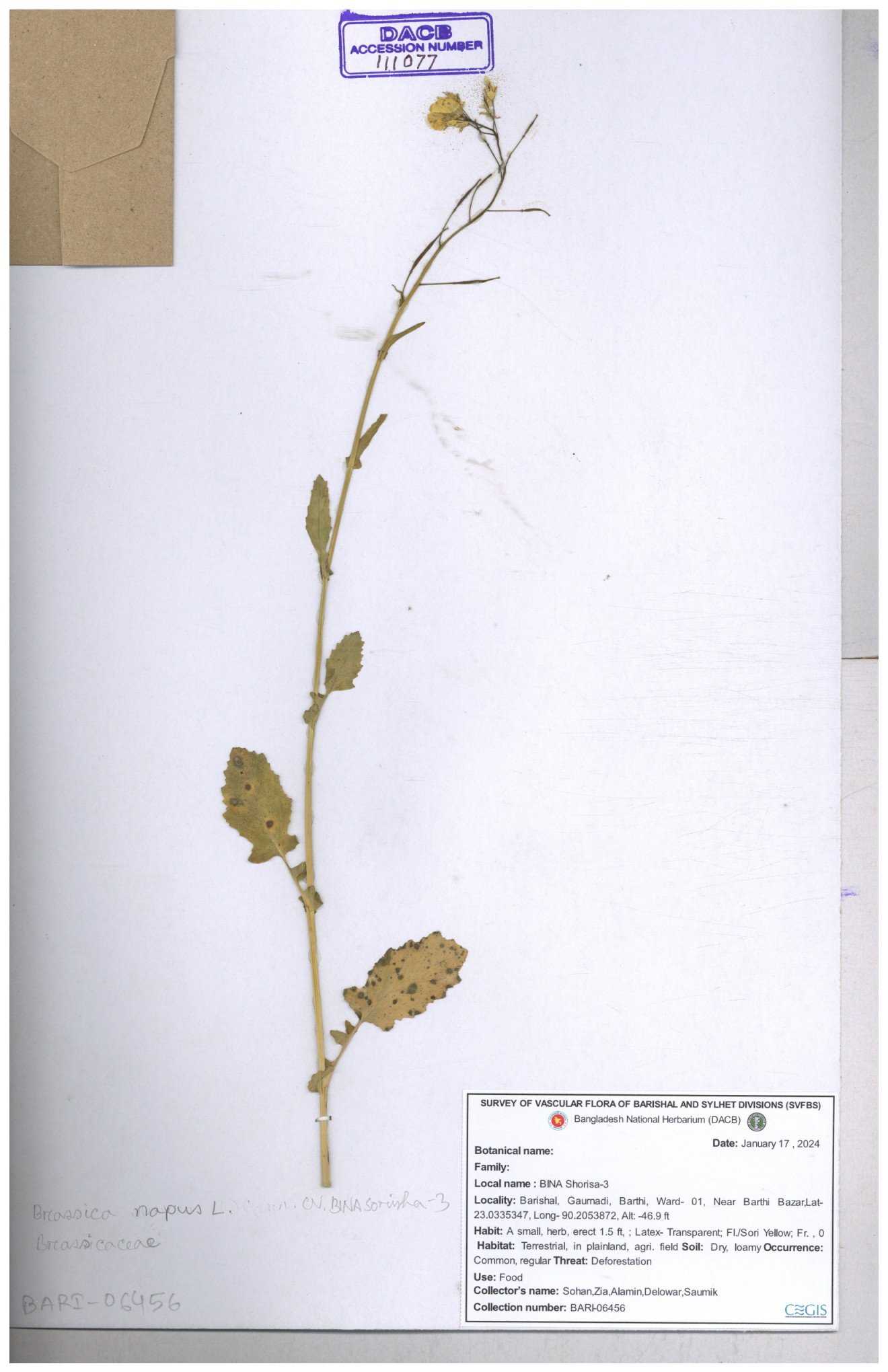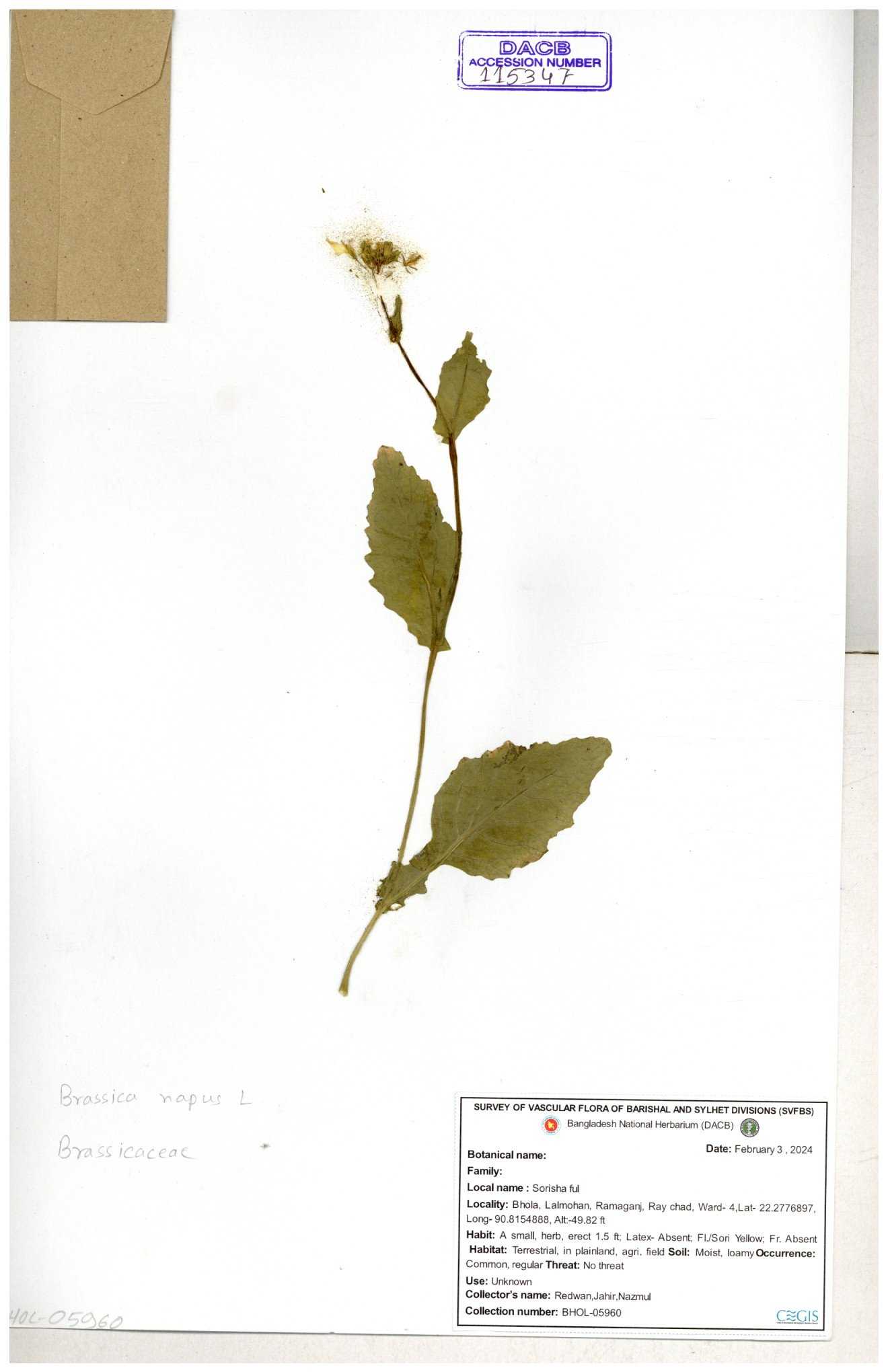 | 8360 | Brassicaceae | Brassica sp. | A.M. Huq et al | H. 8183 04-02-1987 |