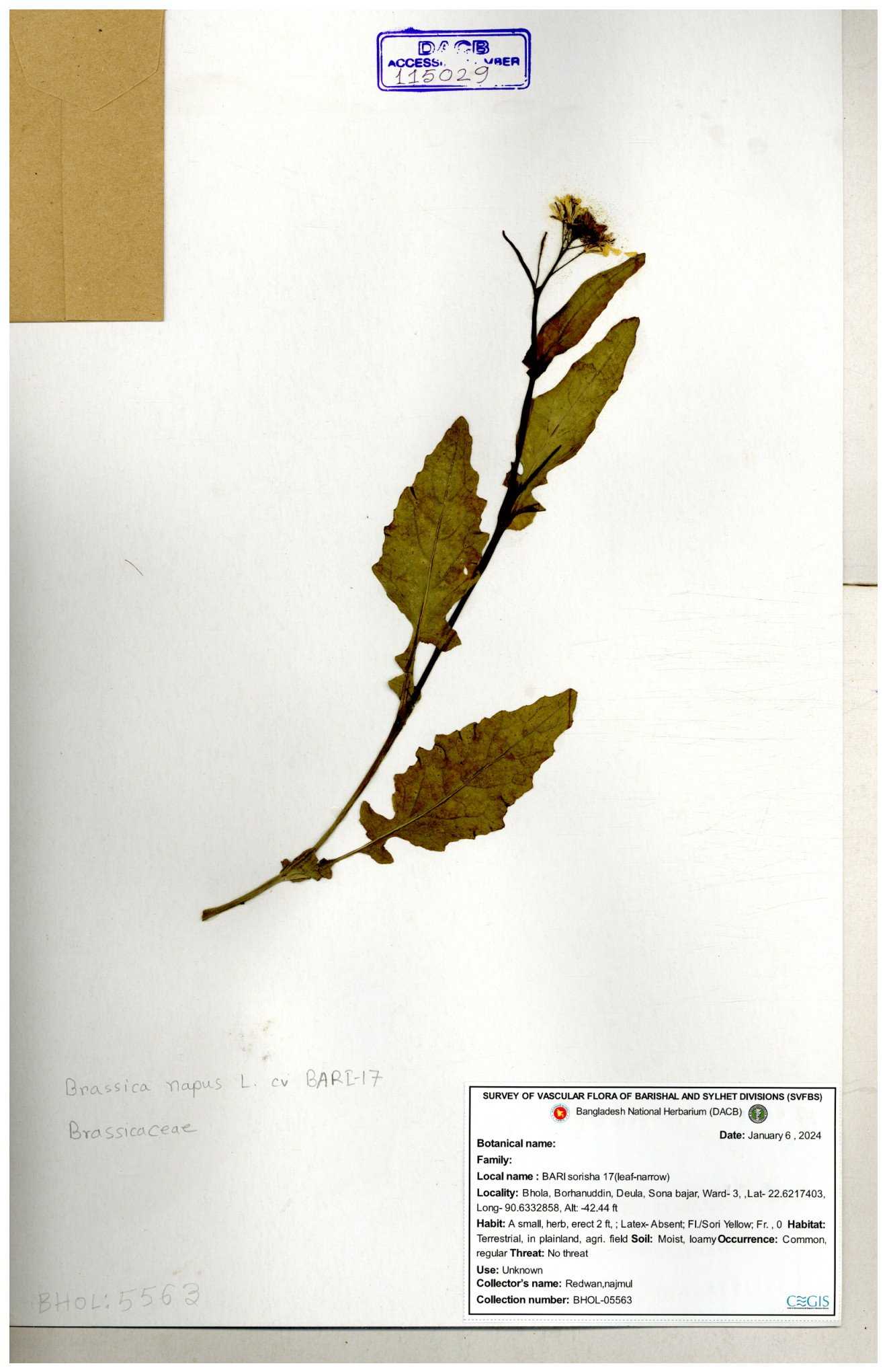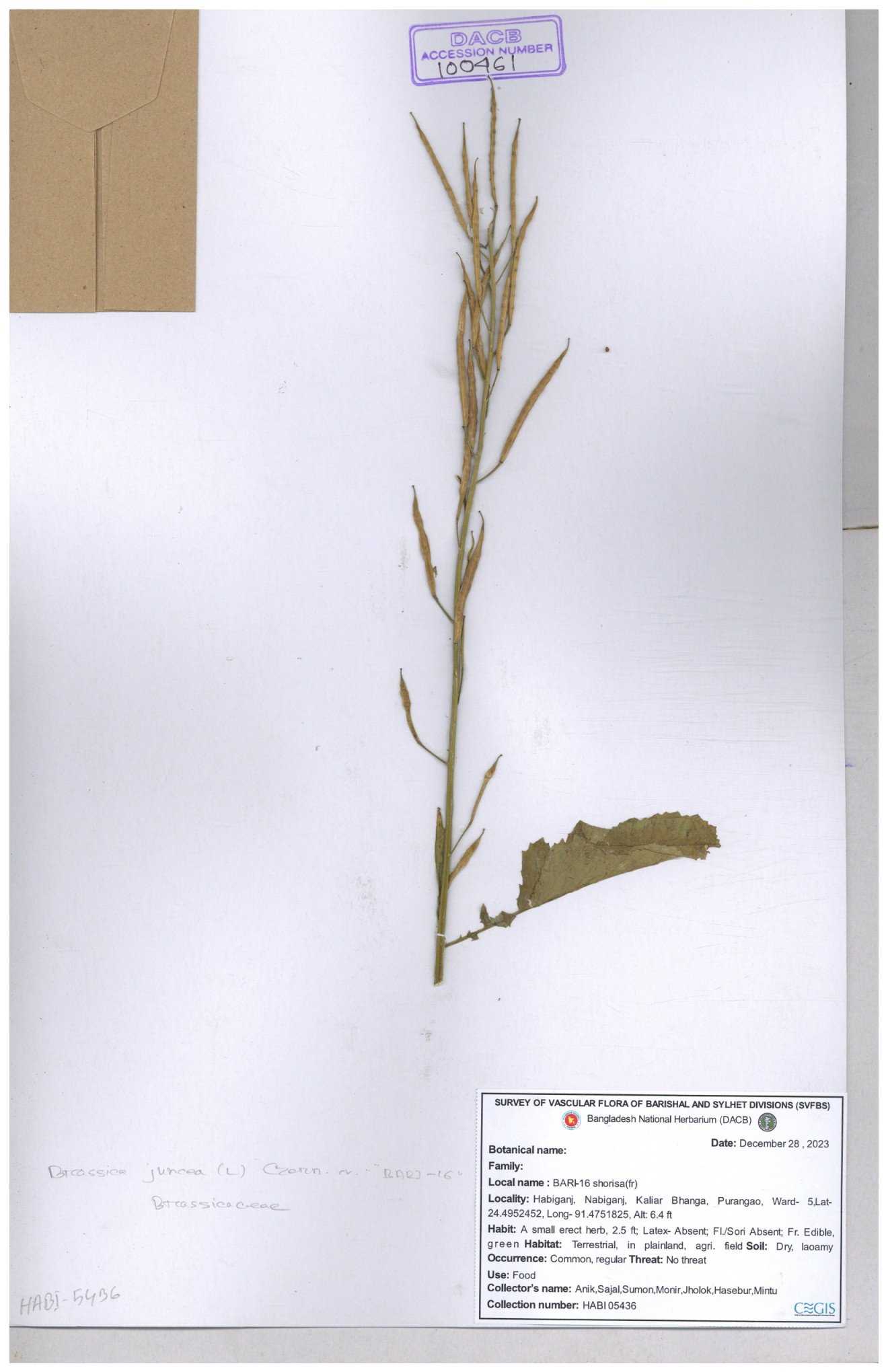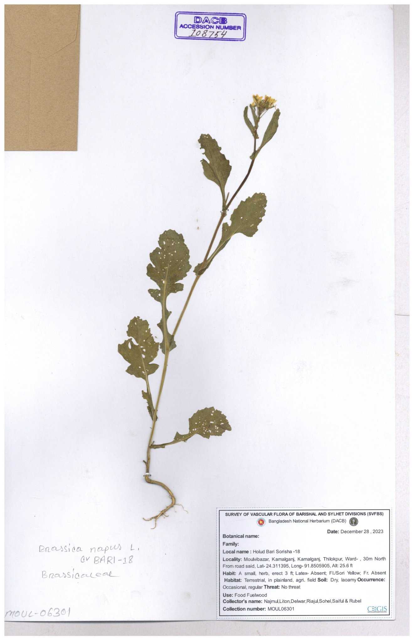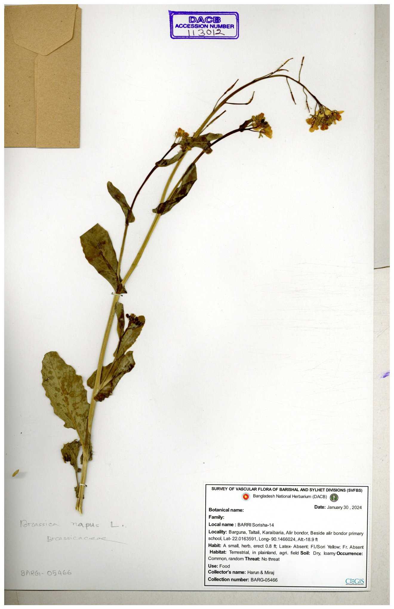 | 8360 | Brassicaceae | Brassica sp. | A.M. Huq et al | H. 8183 04-02-1987 |